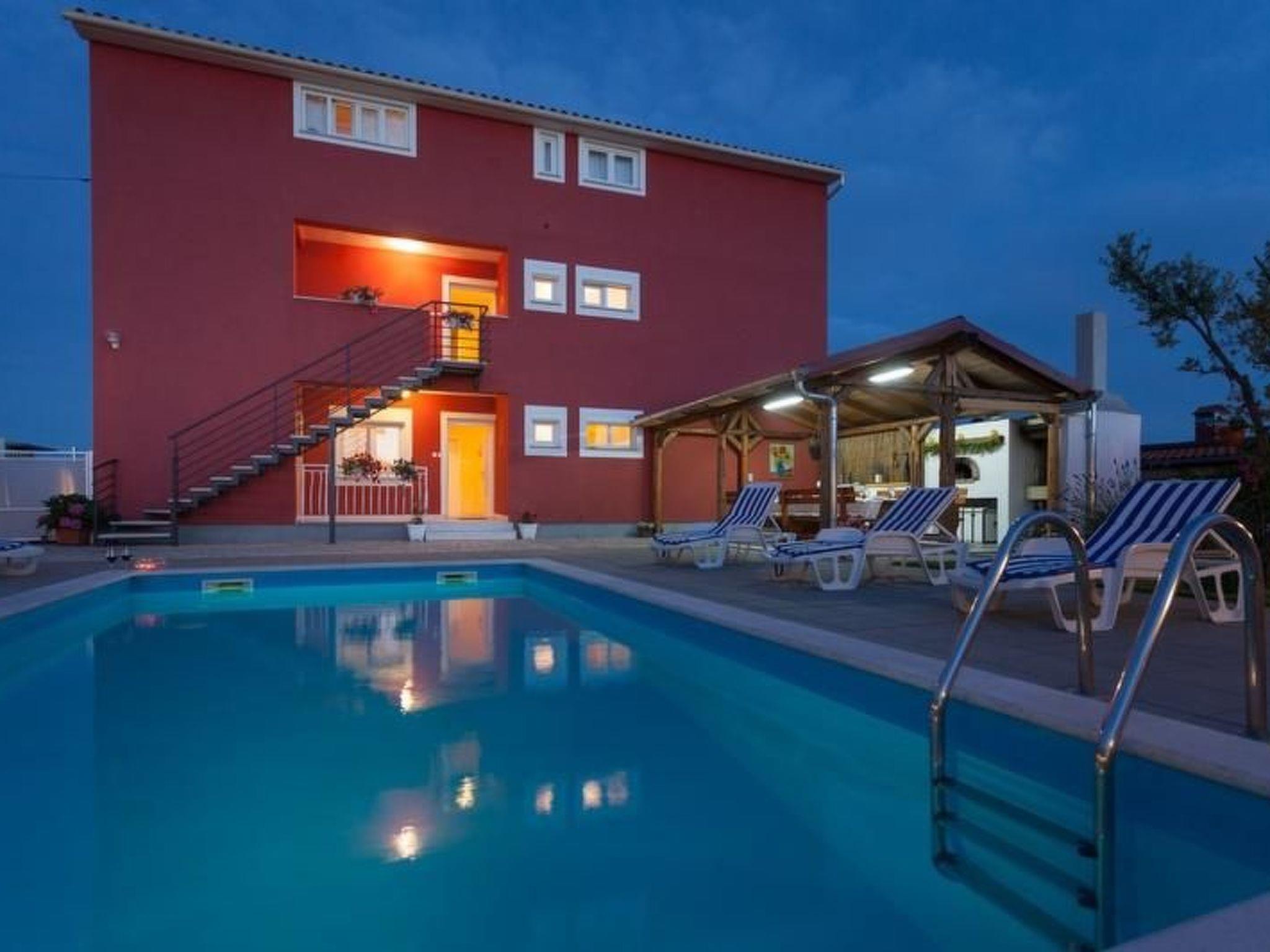 This stylish light flooded holiday villa is located in the Gripole district, just outside Rovinj, and enjoys good road access.Fully enclosed modern and luxuriously furnished holiday villa, absolute privacy, with a private illuminated swimming pool, large terrace with walled wood fired oven and playground