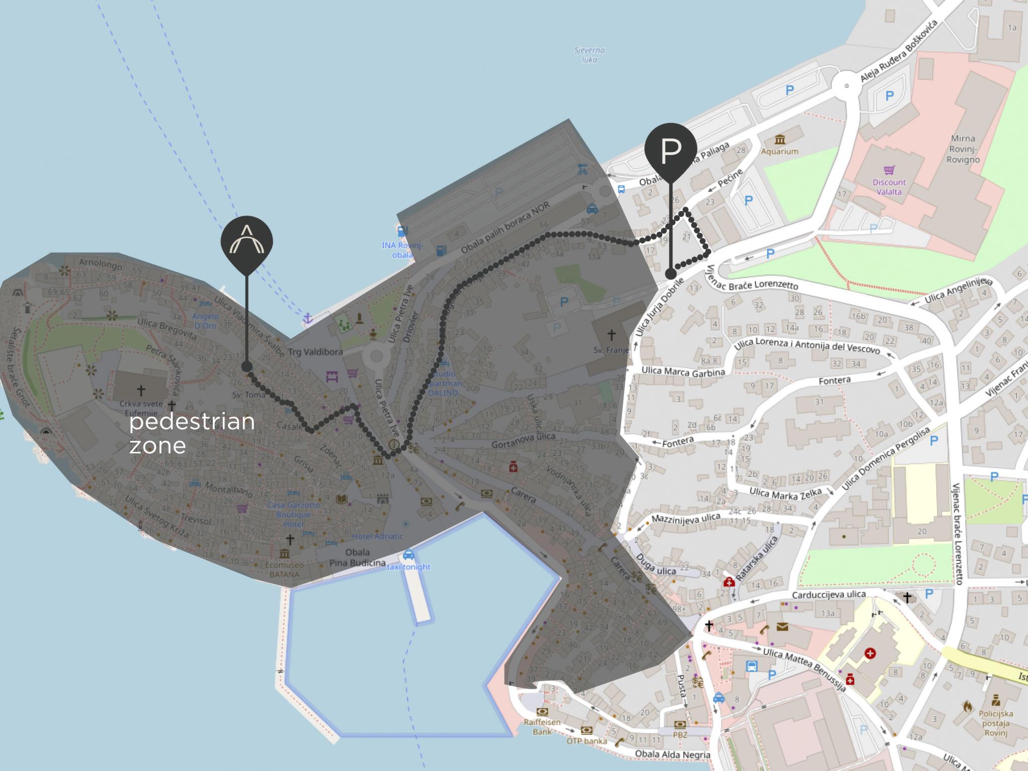 Casa Amando is located in the centre of the car-free old town of Rovinj, i.e. in the pedestrian zone: