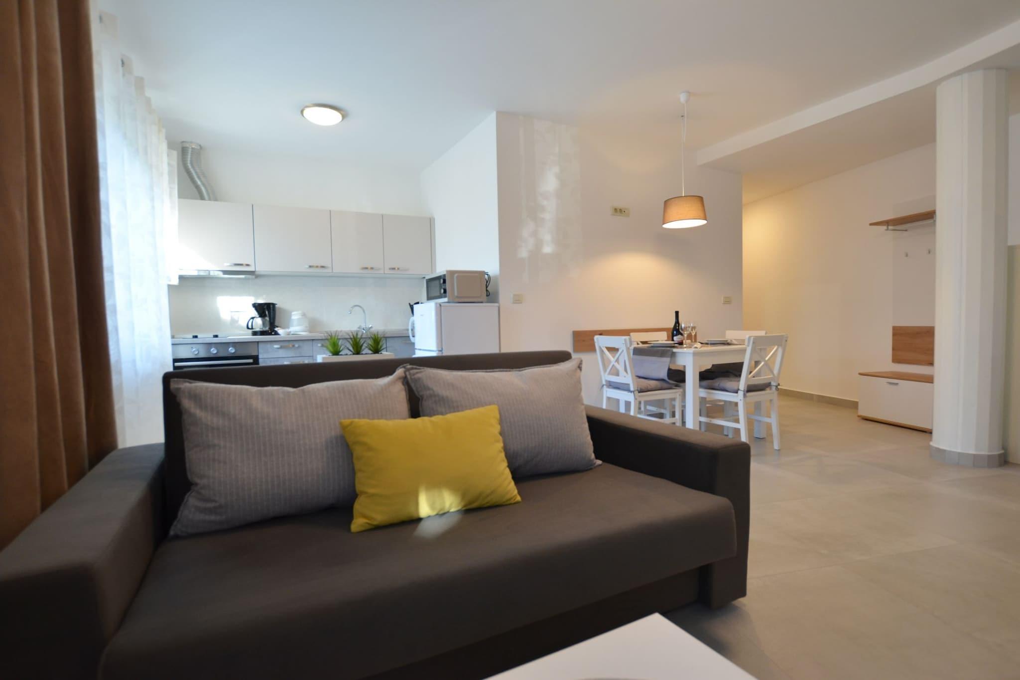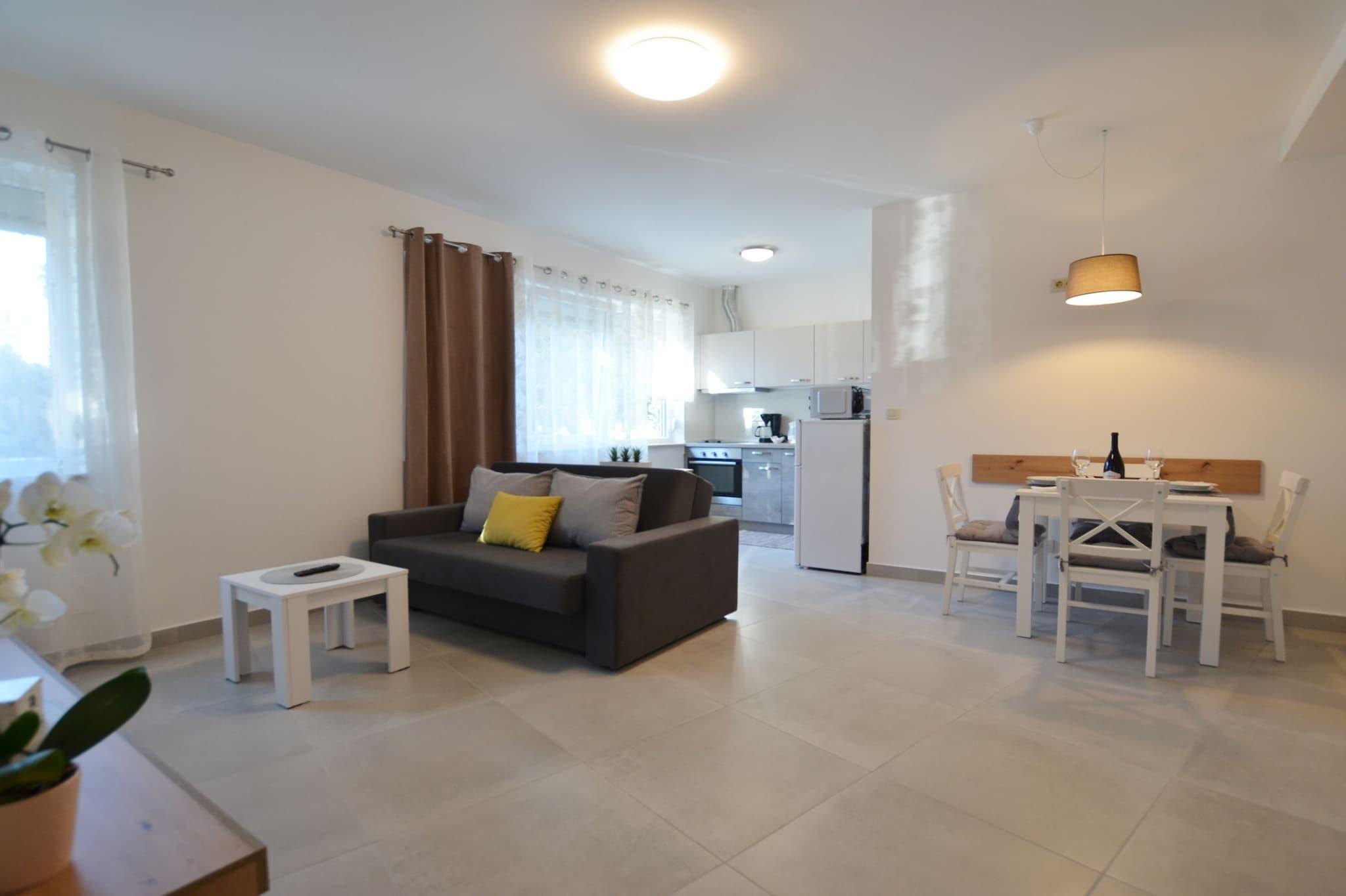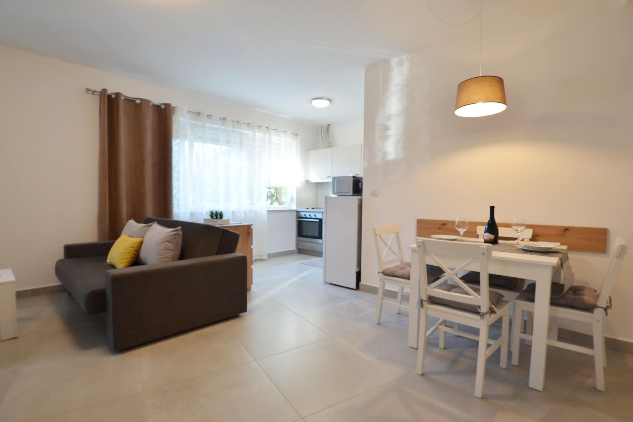 The Stylish and Modern Rovinj Apartment in Rovinj, Istria County, Croatia, is a contemporary accommodation option that offers a blend of comfort and modern design. This Apartment is an excellent choice for travelers seeking a contemporary and comfortable stay in one of Croatia's most beautiful coastal towns. Its modern amenities and prime location make it a great base for exploring the rich culture and stunning scenery of Istria County. Note: Pets are not allowed. Private parking, reservation is not required. Wi-Fi is available throughout the property. This one -bedroom can accommodate up to three guests. It features a TV and is combined with a living room and kitchen. The private bathroom is equipped with a shower and toilet. Thanks to its excellent location, everything you'll need for your vacation is just a short walk away from the property.cafes and restaurants—everything is within a 150.00 m radius. The beach is 1 km away from the property. The airport is 70 km away from the property.