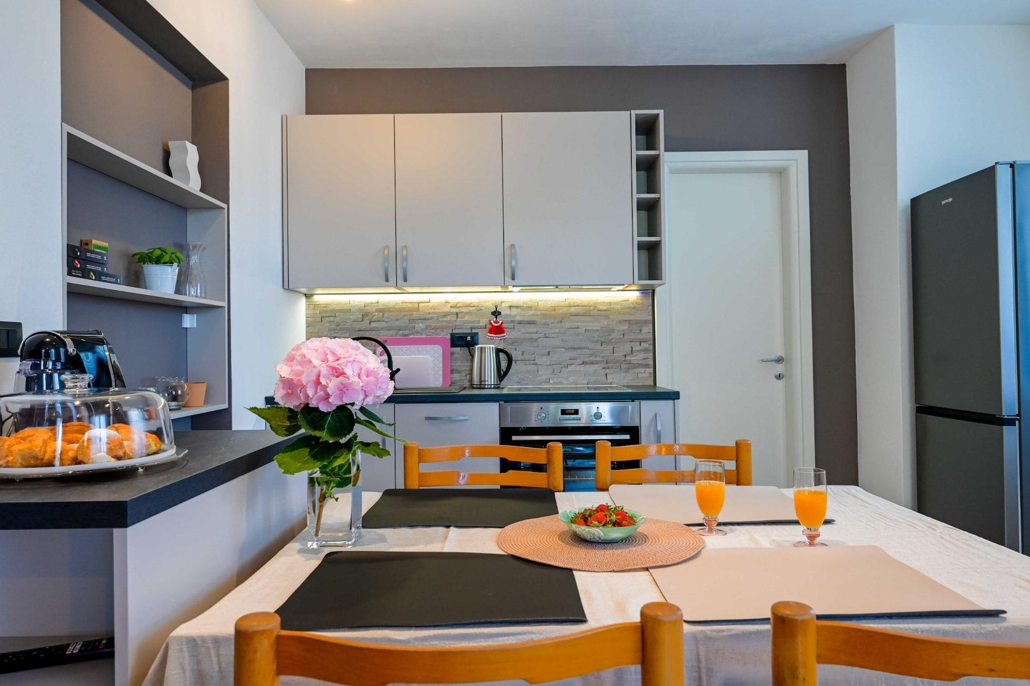 Rovinj, located in the Istria County of Croatia, offers a variety of modern and stylish apartments with terraces that cater to diverse preferences. These accommodations often feature contemporary designs and amenities such as fully equipped kitchens, air conditioning, Wi-Fi, and terraces with views of the sea or Rovinj's charming old town. Note: Pets are not allowed. Private parking is available, reservation is not required. Wi-Fi is available throughout the property. This one -bedroom can accommodate up to two guests. It features a Flat screen TV and is combined with a living room and kitchen. The private bathroom is equipped with a shower and toilet. Thanks to its excellent location, everything you'll need for your vacation is just a short walk away from the property. cafes and restaurants—50.00 m. The beach is 1 km away from the property. The airport is 40 km away from the property.