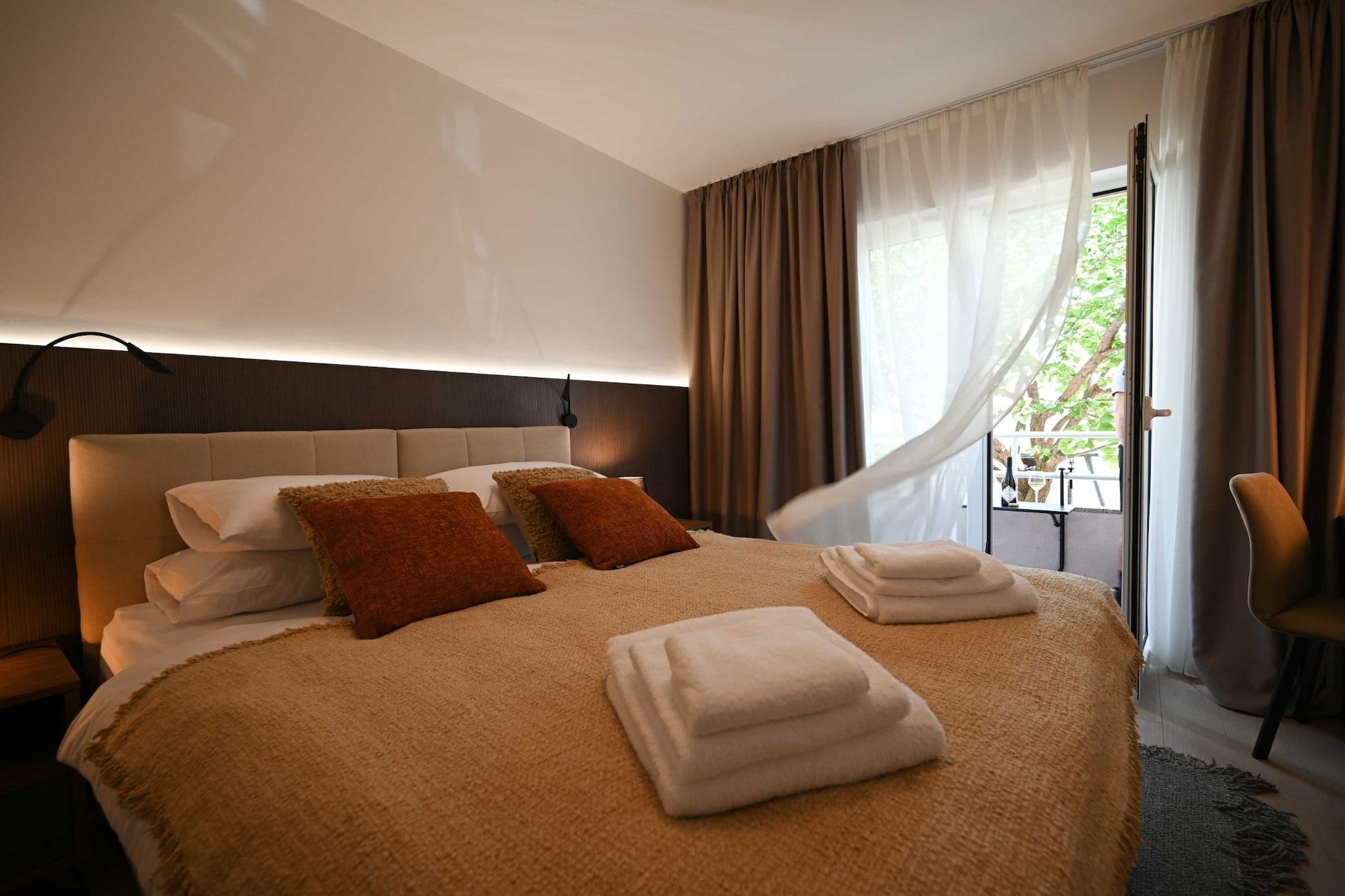 Rovinj, located in the Istria County of Croatia, offers a variety of modern and stylish apartments with terraces that cater to diverse preferences. These accommodations often feature contemporary designs and amenities such as fully equipped kitchens, air conditioning, Wi-Fi, and terraces with views of the sea or Rovinj's charming old town. Note: Pets are not allowed. Private parking is available, reservation is not required. Wi-Fi is available throughout the property. This one -bedroom can accommodate up to two guests. It features a Flat screen TV and is combined with a living room and kitchen. The private bathroom is equipped with a shower and toilet. Thanks to its excellent location, everything you'll need for your vacation is just a short walk away from the property. cafes and restaurants—50.00 m. The beach is 1 km away from the property. The airport is 40 km away from the property.