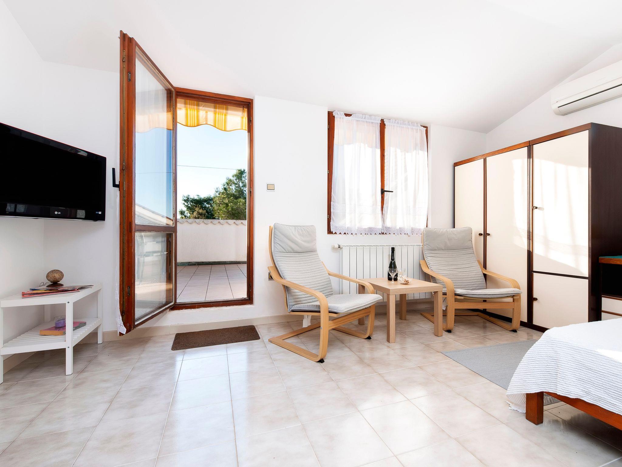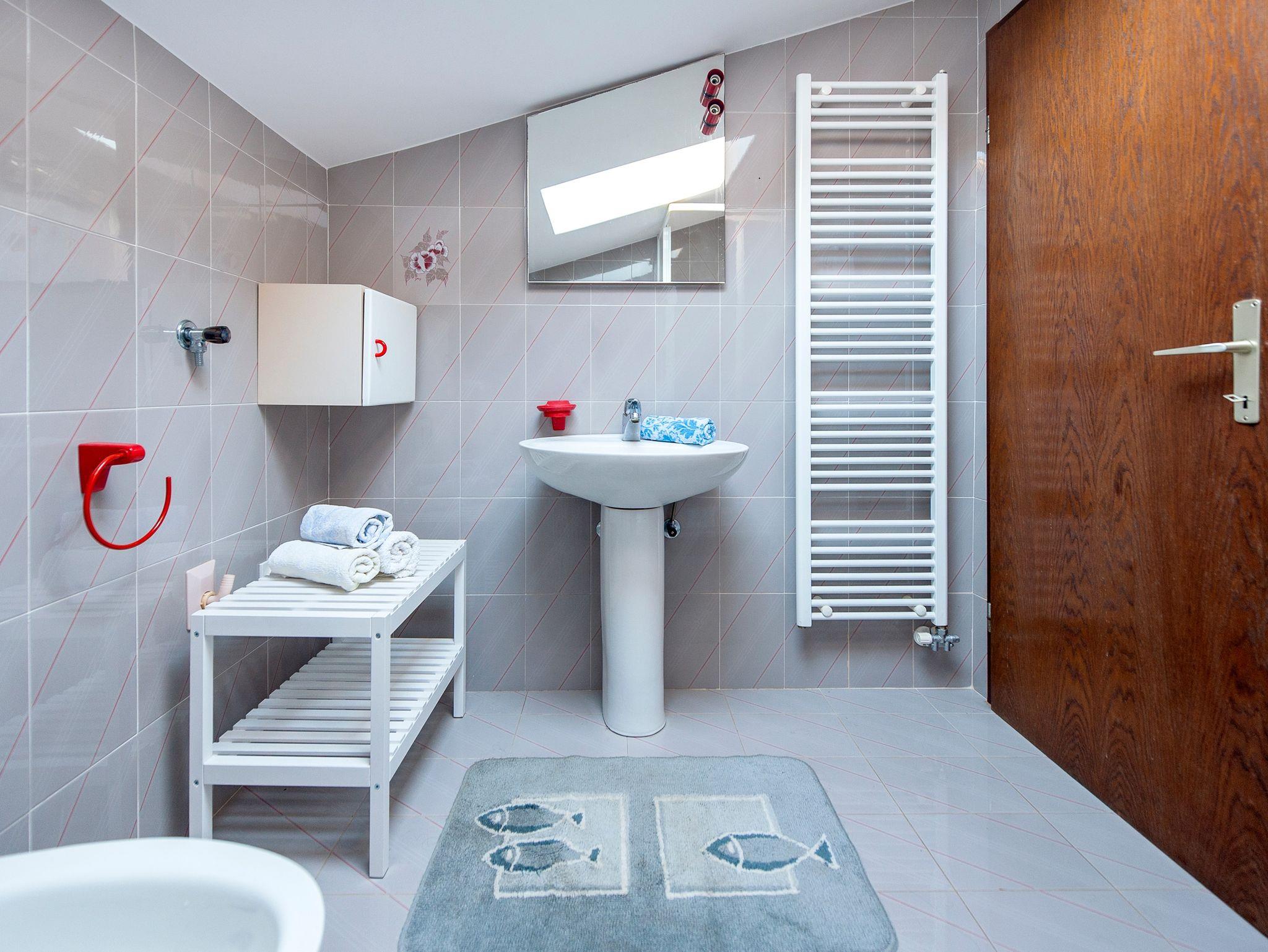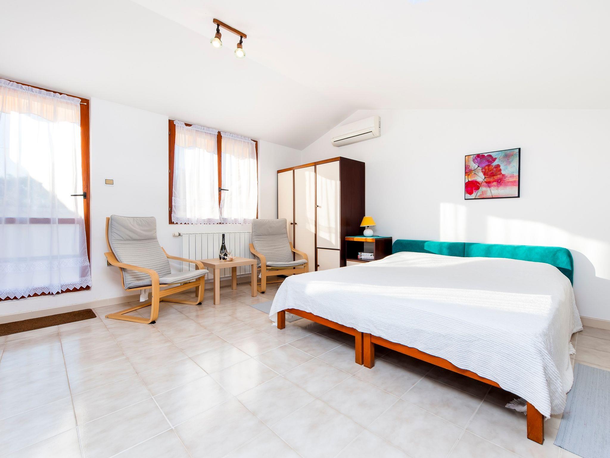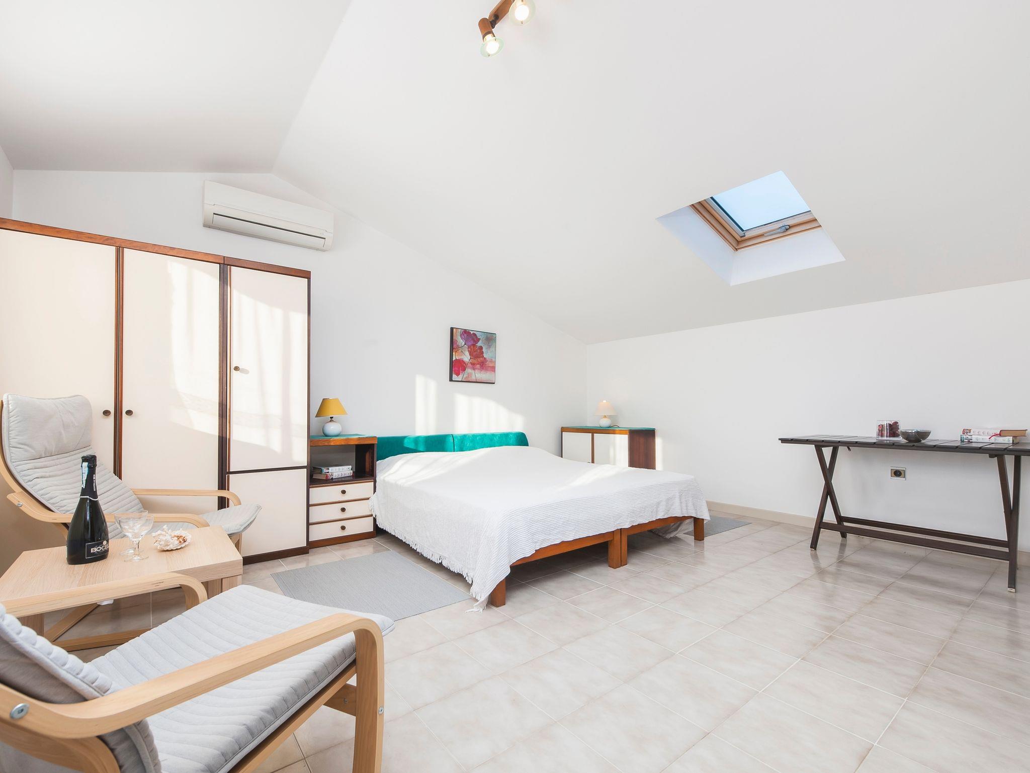 Ferienwohnung bietet Platz für 3 Gäste. Die Betten sind in Schlafzimmern, die es 1 gibt, innerhalb einer Gesamtfläche von 45m2, angeordnet. Die Gäste haben eine eigene Terrasse zur Verfügung, auf der sie in warmen Sommernächten genießen können. Das Apartment bietet Meerblick. Es ist erlaubt, Speisen auf dem Gemeinschafts-Grill vorzubereiten. In der Unterkunftseinheit besteht die Möglichkeit des Mitbringens von Haustieren gegen Aufpreis. IM PREIS INBEGRIFFEN: Kurtaxe, Endreinigung, Klimatisierung, Parkplatz, Internet, Wäschewaschen, Bügeleisen, Bügelbrett, Föhn, tragbarer Grill, Sonnenschirm. VERBINDLICHE ZUSÄTZLICHE KOSTEN: Aufzahlung für Kurzaufenthalte (prozentualer Zuschlag pro Nächtigungsanzahl: 30% - 1, 20% - 2, 10% - 3). UNVERBINDLICHE ZUSÄTZLICHE KOSTEN: Haustiere (5,00 € pro Nacht), Zusatzbett (30,00 € pro Nacht). Die Verfügbarkeit zusätzlicher Dienstleistungen in Ihrem reservierten Termin und die Preise derselben (falls nicht aufgeführt) müssen im Voraus überprüft werden. Zusätzliche Dienstleistungen die in der Zahlungsaufforderung nicht aufgeführt sind werden direkt beim Vermieter bezahlt, angenommen der Gast nutzt auch diese.