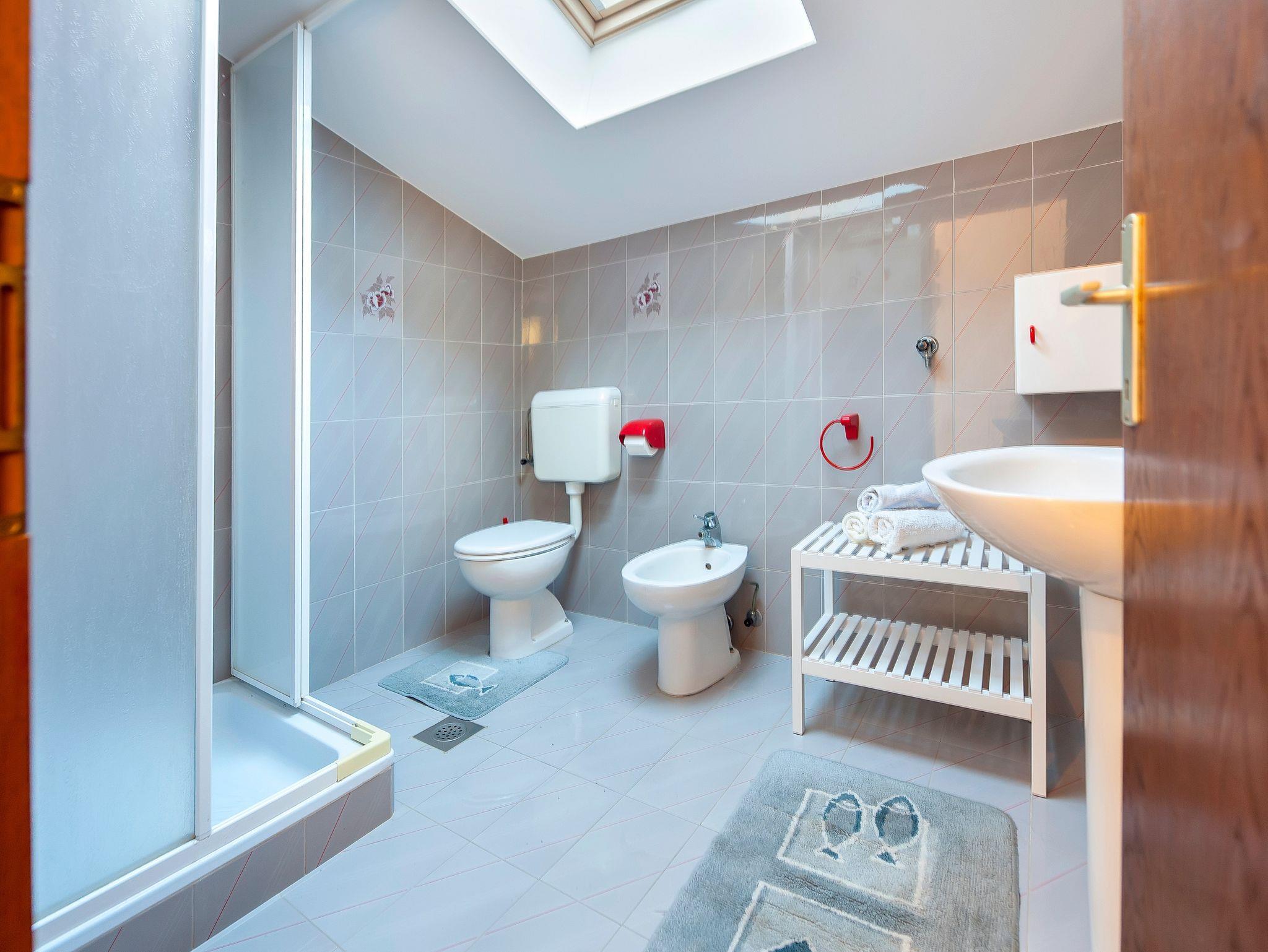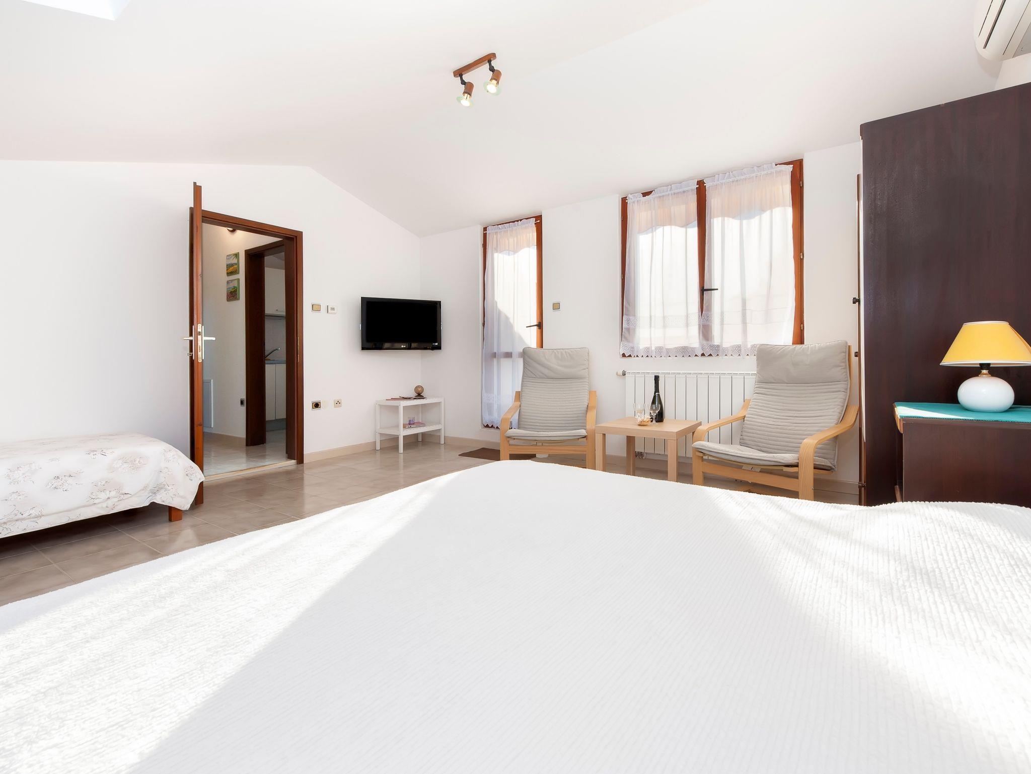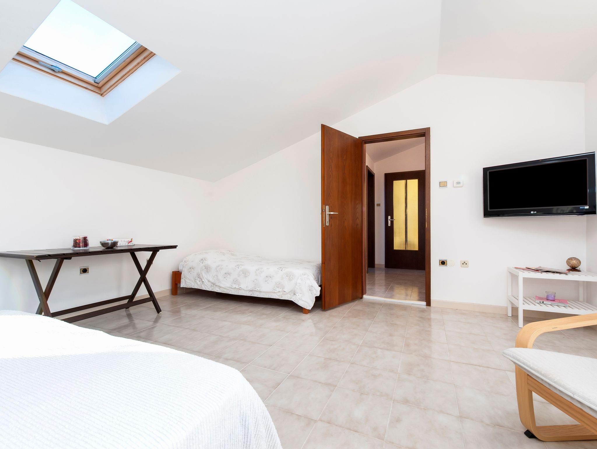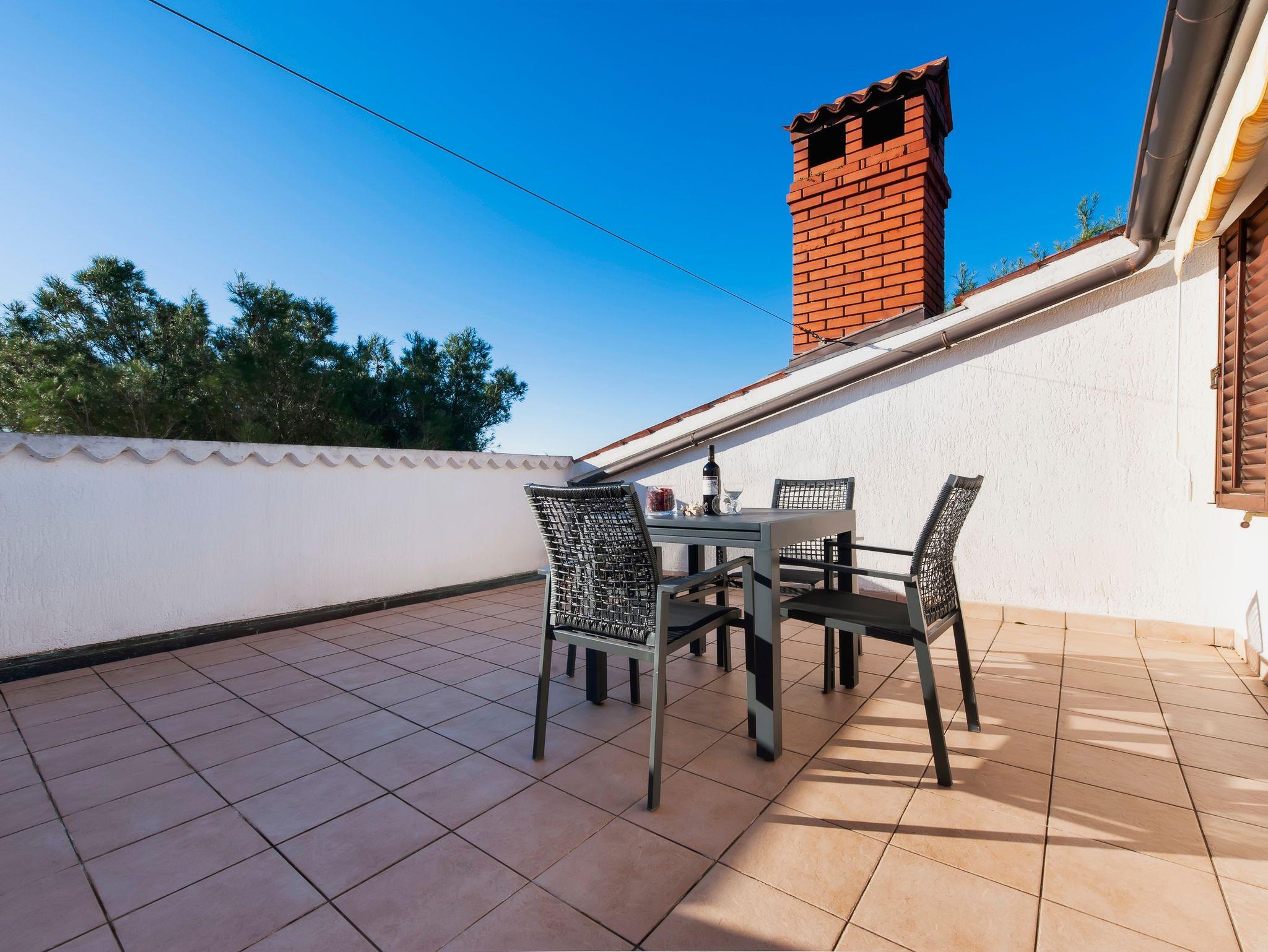 Ferienwohnung bietet Platz für 3 Gäste. Die Betten sind in Schlafzimmern, die es 1 gibt, innerhalb einer Gesamtfläche von 45m2, angeordnet. Die Gäste haben eine eigene Terrasse zur Verfügung, auf der sie in warmen Sommernächten genießen können. Das Apartment bietet Meerblick. Es ist erlaubt, Speisen auf dem Gemeinschafts-Grill vorzubereiten. In der Unterkunftseinheit besteht die Möglichkeit des Mitbringens von Haustieren gegen Aufpreis. IM PREIS INBEGRIFFEN: Kurtaxe, Endreinigung, Klimatisierung, Parkplatz, Internet, Wäschewaschen, Bügeleisen, Bügelbrett, Föhn, tragbarer Grill, Sonnenschirm. VERBINDLICHE ZUSÄTZLICHE KOSTEN: Aufzahlung für Kurzaufenthalte (prozentualer Zuschlag pro Nächtigungsanzahl: 30% - 1, 20% - 2, 10% - 3). UNVERBINDLICHE ZUSÄTZLICHE KOSTEN: Haustiere (5,00 € pro Nacht), Zusatzbett (30,00 € pro Nacht). Die Verfügbarkeit zusätzlicher Dienstleistungen in Ihrem reservierten Termin und die Preise derselben (falls nicht aufgeführt) müssen im Voraus überprüft werden. Zusätzliche Dienstleistungen die in der Zahlungsaufforderung nicht aufgeführt sind werden direkt beim Vermieter bezahlt, angenommen der Gast nutzt auch diese.