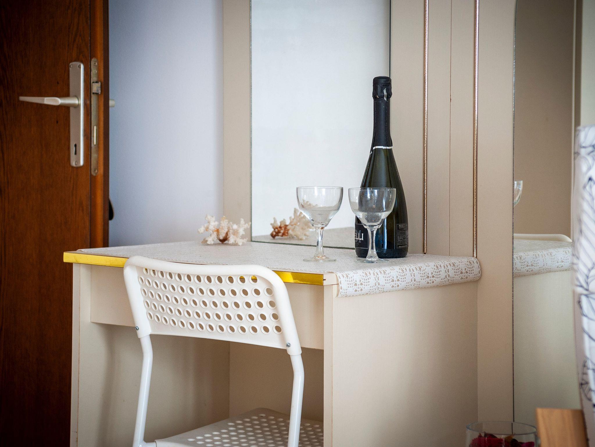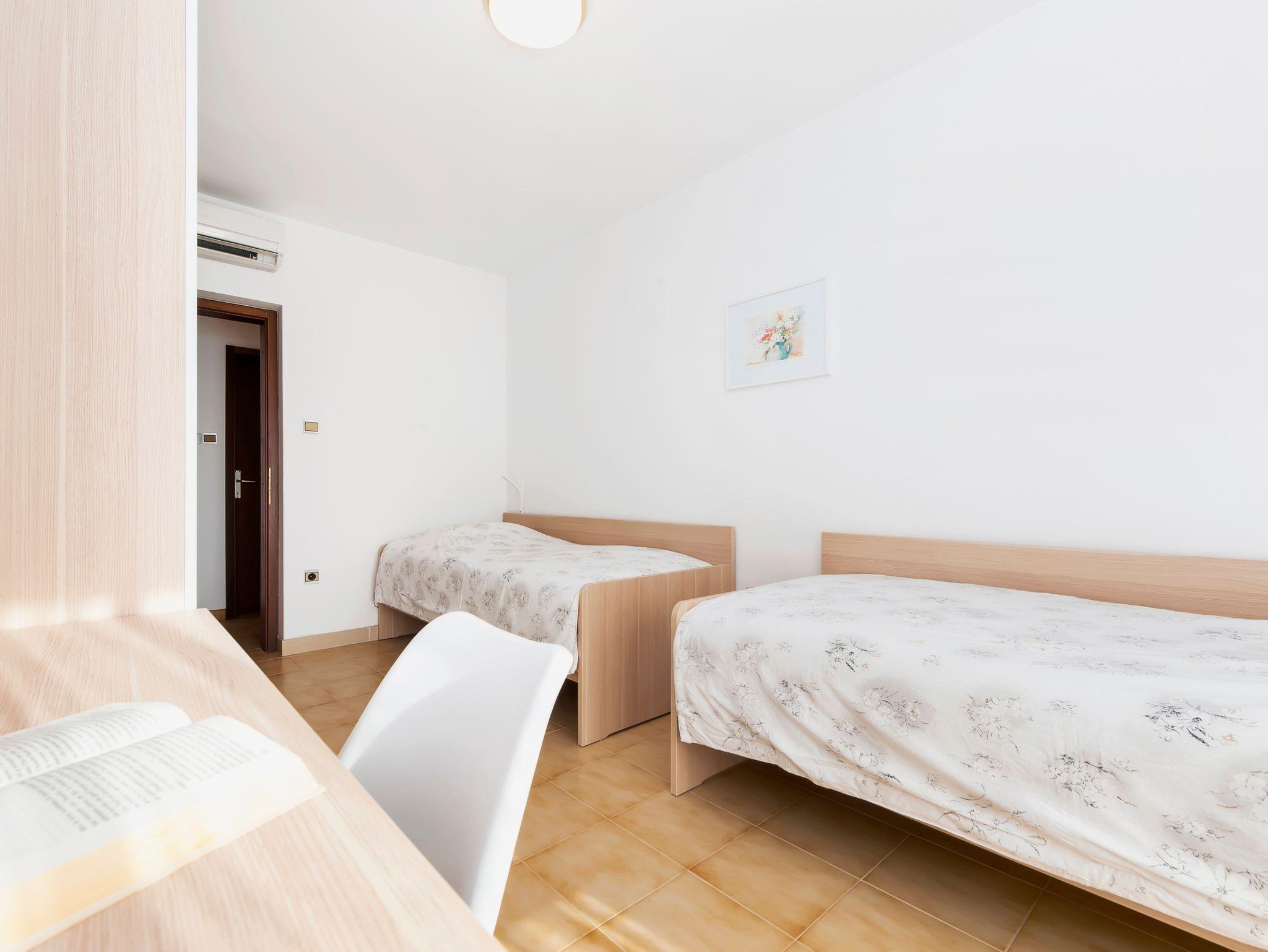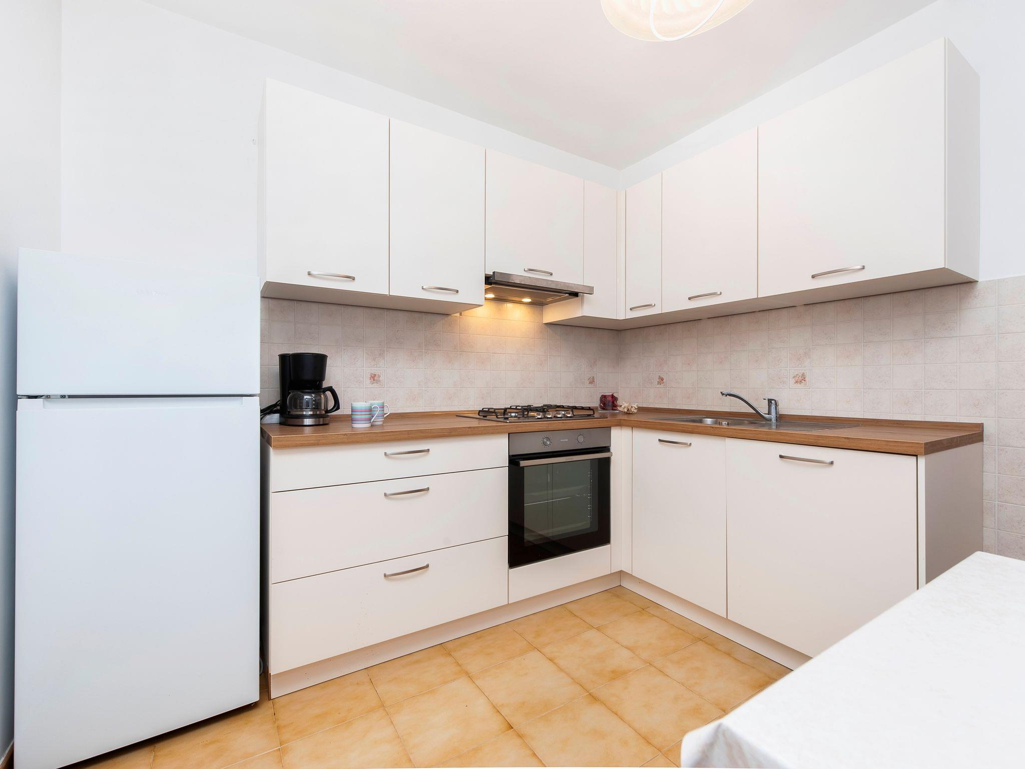 Ferienwohnung bietet Platz für 4 Gäste. Die Betten sind in Schlafzimmern, die es 2 gibt, innerhalb einer Gesamtfläche von 54m2, angeordnet. Die Gäste haben einen eigenen Balkon zur Verfügung, auf der sie in warmen Sommernächten genießen können. Das Apartment bietet Meerblick. Es ist erlaubt, Speisen auf dem Gemeinschafts-Grill vorzubereiten. In der Unterkunftseinheit besteht die Möglichkeit des Mitbringens von Haustieren gegen Aufpreis. IM PREIS INBEGRIFFEN: Kurtaxe, Endreinigung, Klimatisierung, Parkplatz, Internet, Wäschewaschen, Bügeleisen, Bügelbrett, Föhn, tragbarer Grill, Sonnenschirm. VERBINDLICHE ZUSÄTZLICHE KOSTEN: Aufzahlung für Kurzaufenthalte (prozentualer Zuschlag pro Nächtigungsanzahl: 30% - 1, 20% - 2, 10% - 3). UNVERBINDLICHE ZUSÄTZLICHE KOSTEN: Haustiere (5,00 € pro Nacht), Zusatzbett (30,00 € pro Nacht). Die Verfügbarkeit zusätzlicher Dienstleistungen in Ihrem reservierten Termin und die Preise derselben (falls nicht aufgeführt) müssen im Voraus überprüft werden. Zusätzliche Dienstleistungen die in der Zahlungsaufforderung nicht aufgeführt sind werden direkt beim Vermieter bezahlt, angenommen der Gast nutzt auch diese.