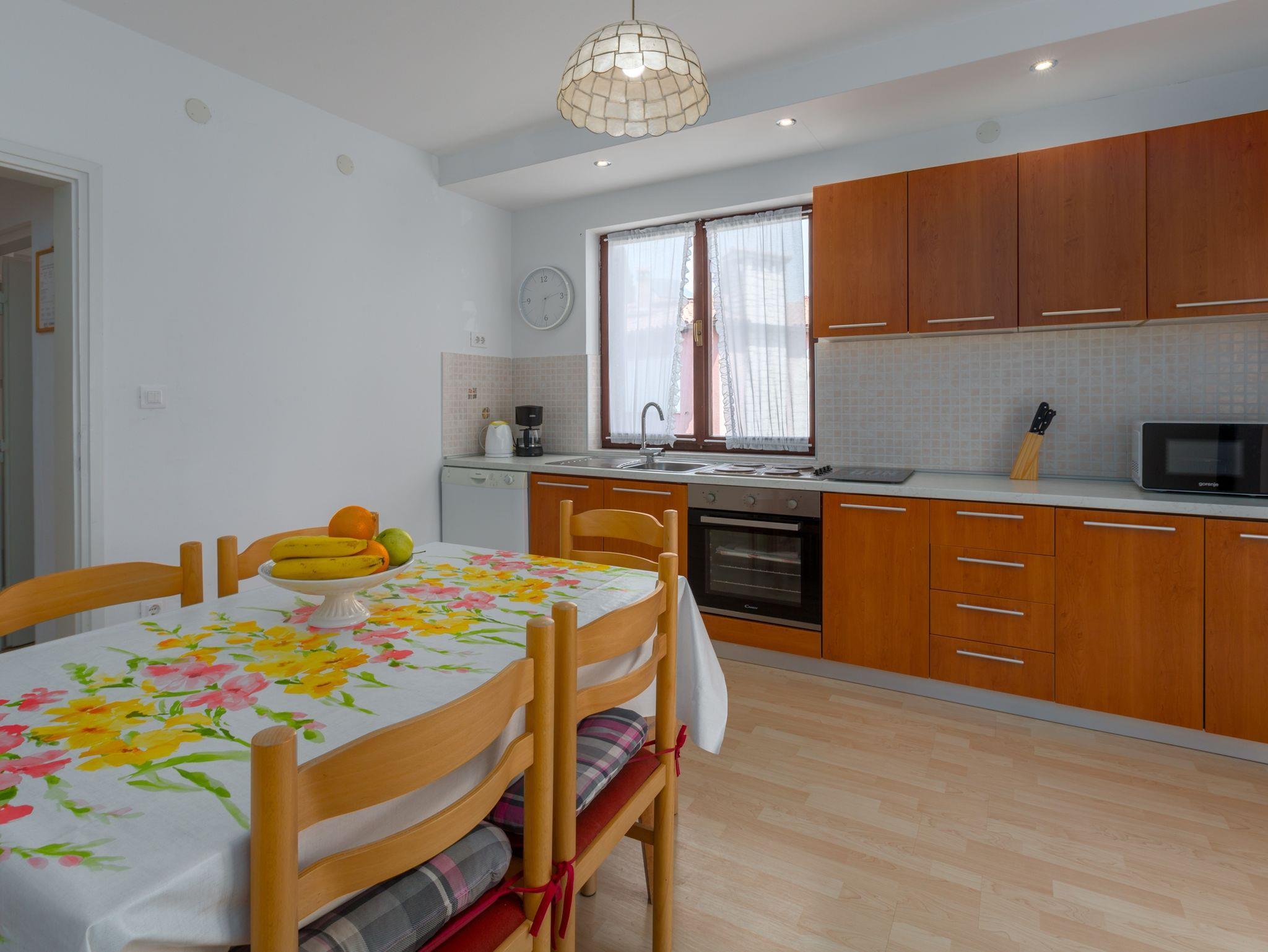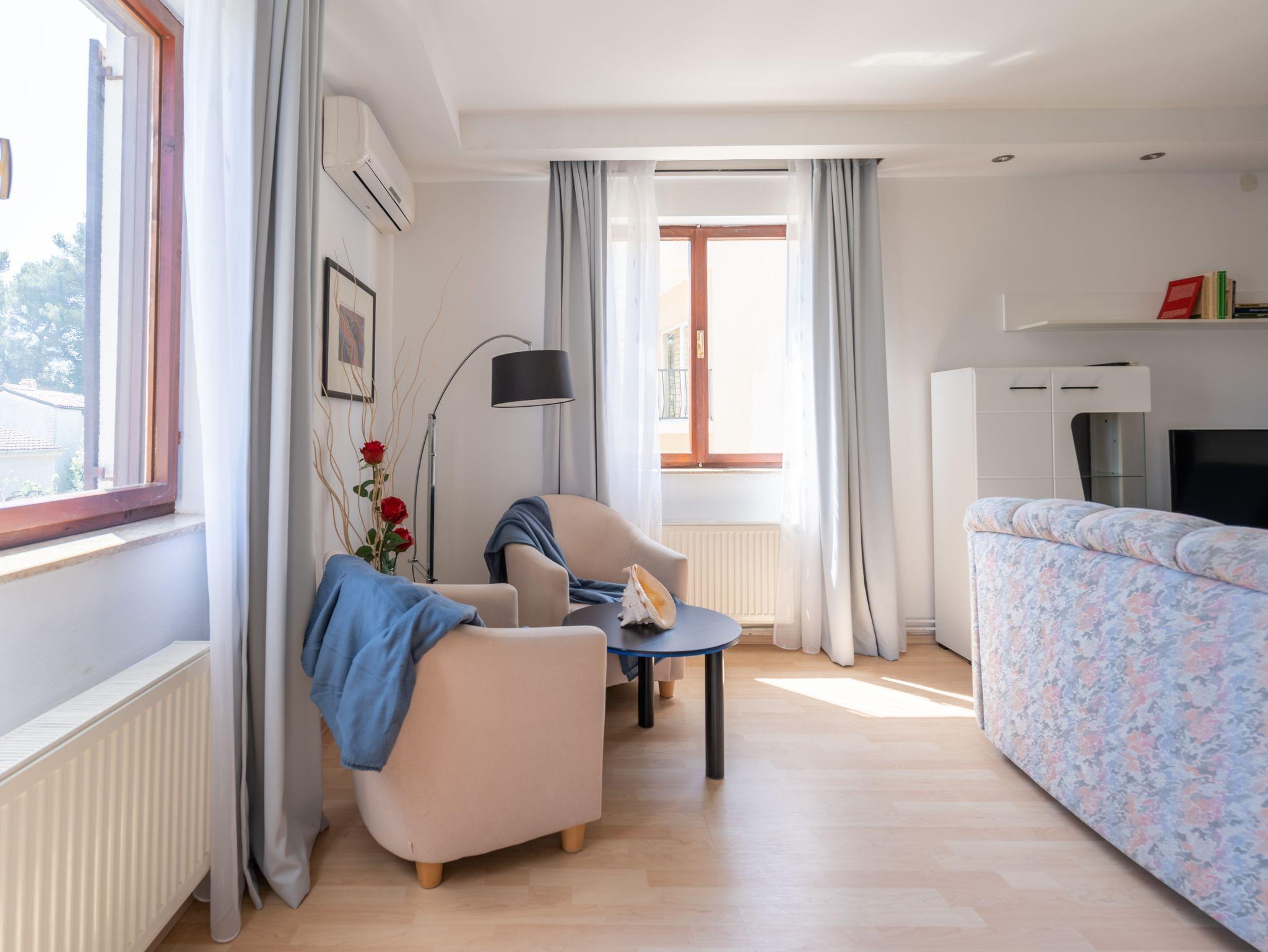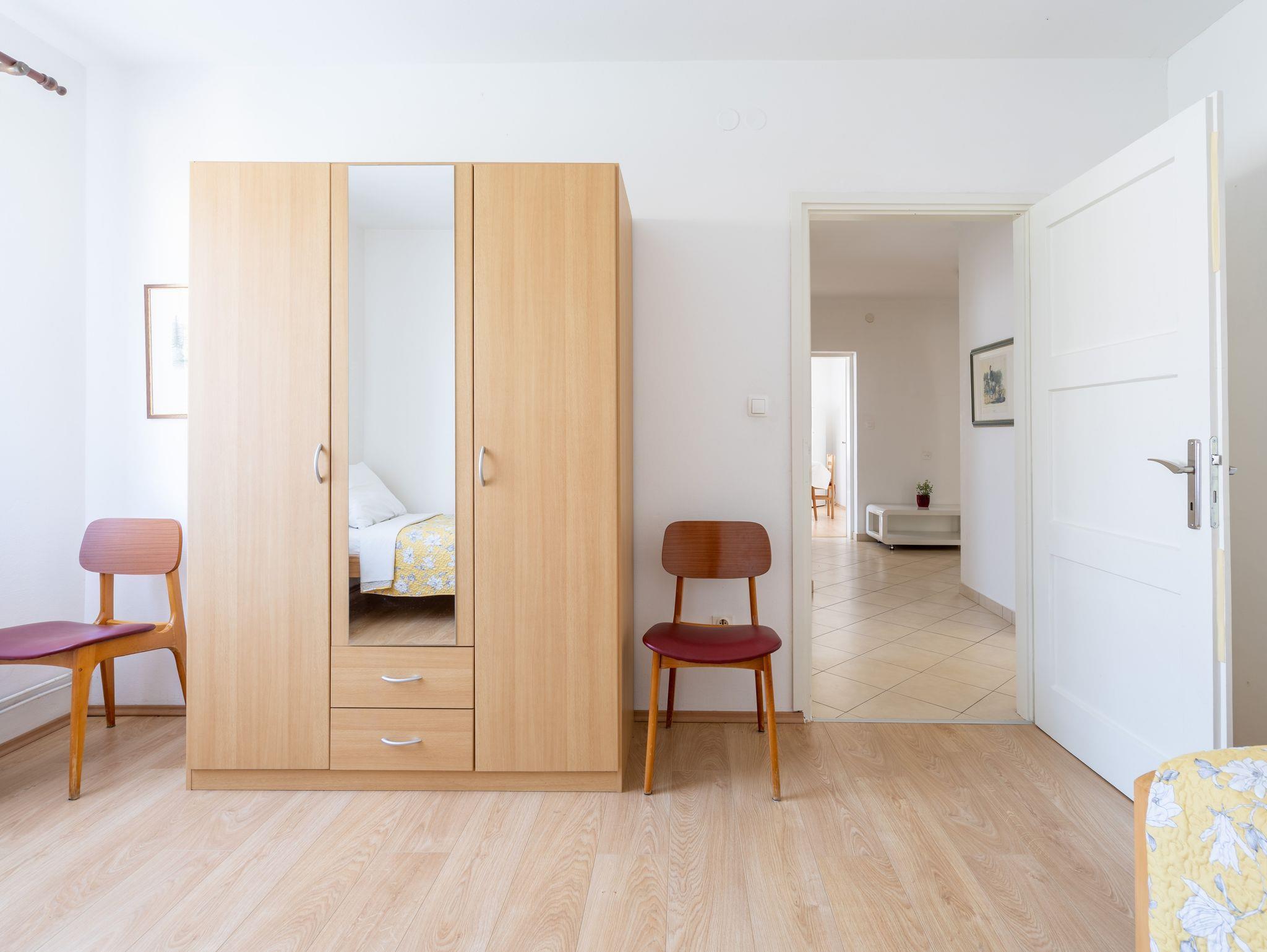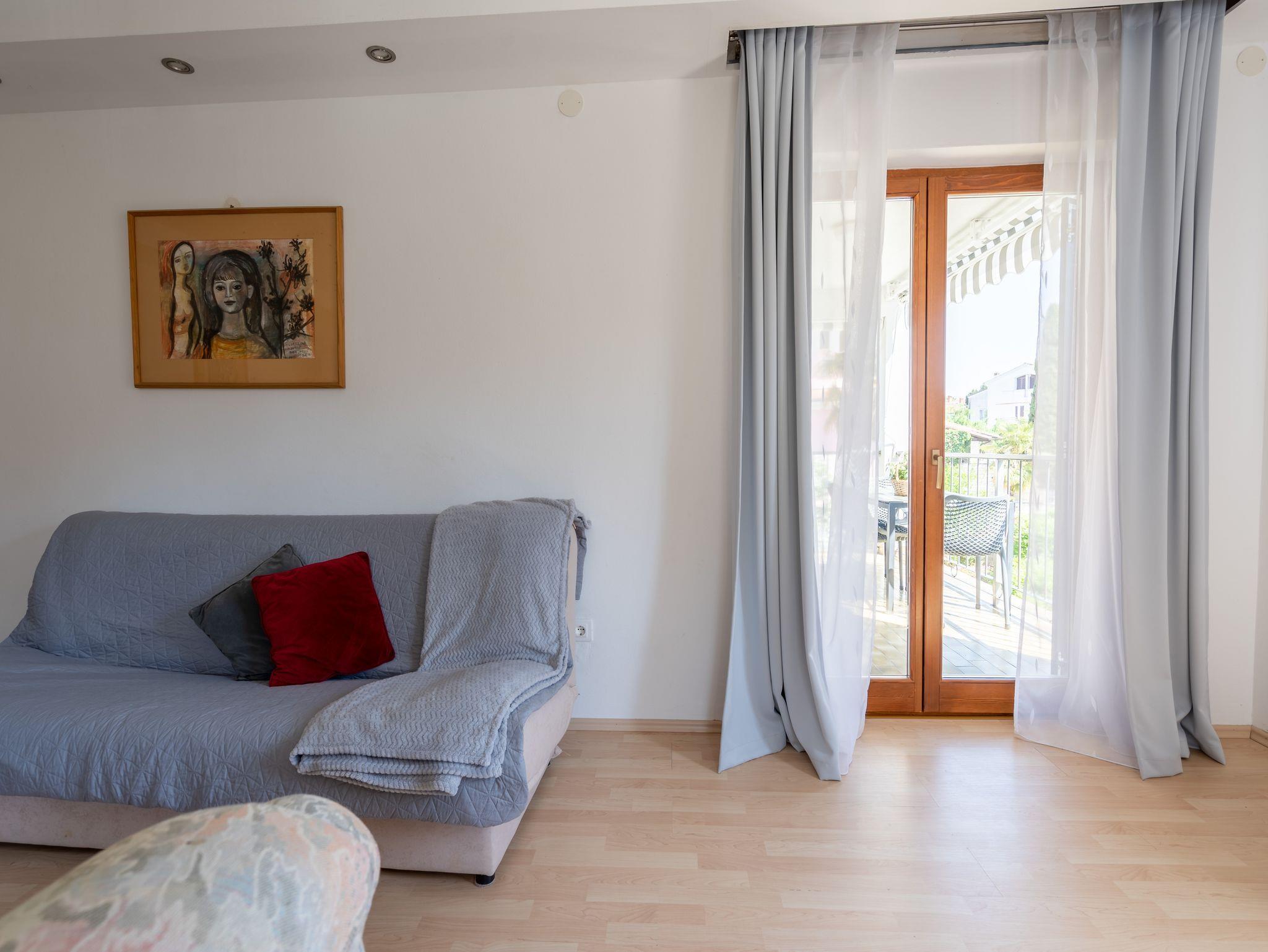 Ferienwohnung bietet Platz für 6 Gäste. Die Betten sind in Schlafzimmern, die es 2 gibt, und in Wohnzimmer, innerhalb einer Gesamtfläche von 89m2, angeordnet. Die Gäste haben eine eigene Terrasse zur Verfügung, auf der sie in warmen Sommernächten genießen können. In der Unterkunftseinheit besteht die Möglichkeit des Mitbringens von Haustieren gegen Aufpreis. IM PREIS INBEGRIFFEN: Kurtaxe, Endreinigung, Klimatisierung, Zentralheizung, Internet, Kinderbett, Bügeleisen. VERBINDLICHE ZUSÄTZLICHE KOSTEN: Aufzahlung für Kurzaufenthalte (prozentualer Zuschlag pro Nächtigungsanzahl: 30% - 1, 20% - 2, 10% - 3). UNVERBINDLICHE ZUSÄTZLICHE KOSTEN: Haustiere (10,00 € pro Nacht). Die Verfügbarkeit zusätzlicher Dienstleistungen in Ihrem reservierten Termin und die Preise derselben (falls nicht aufgeführt) müssen im Voraus überprüft werden. Zusätzliche Dienstleistungen die in der Zahlungsaufforderung nicht aufgeführt sind werden direkt beim Vermieter bezahlt, angenommen der Gast nutzt auch diese.
