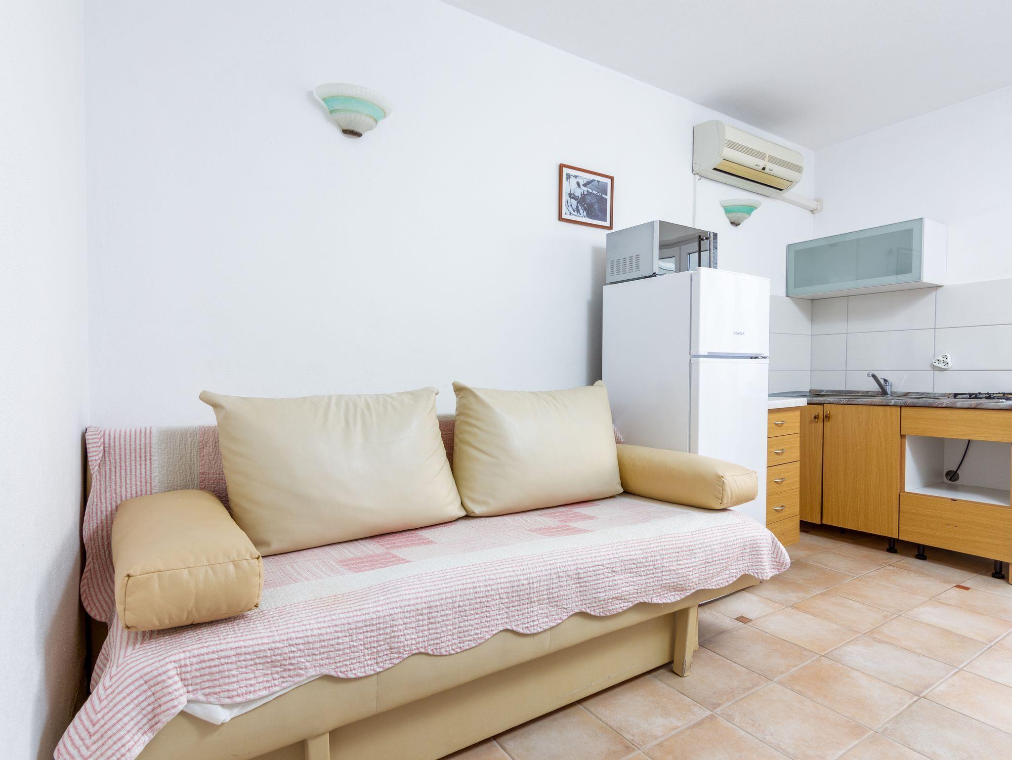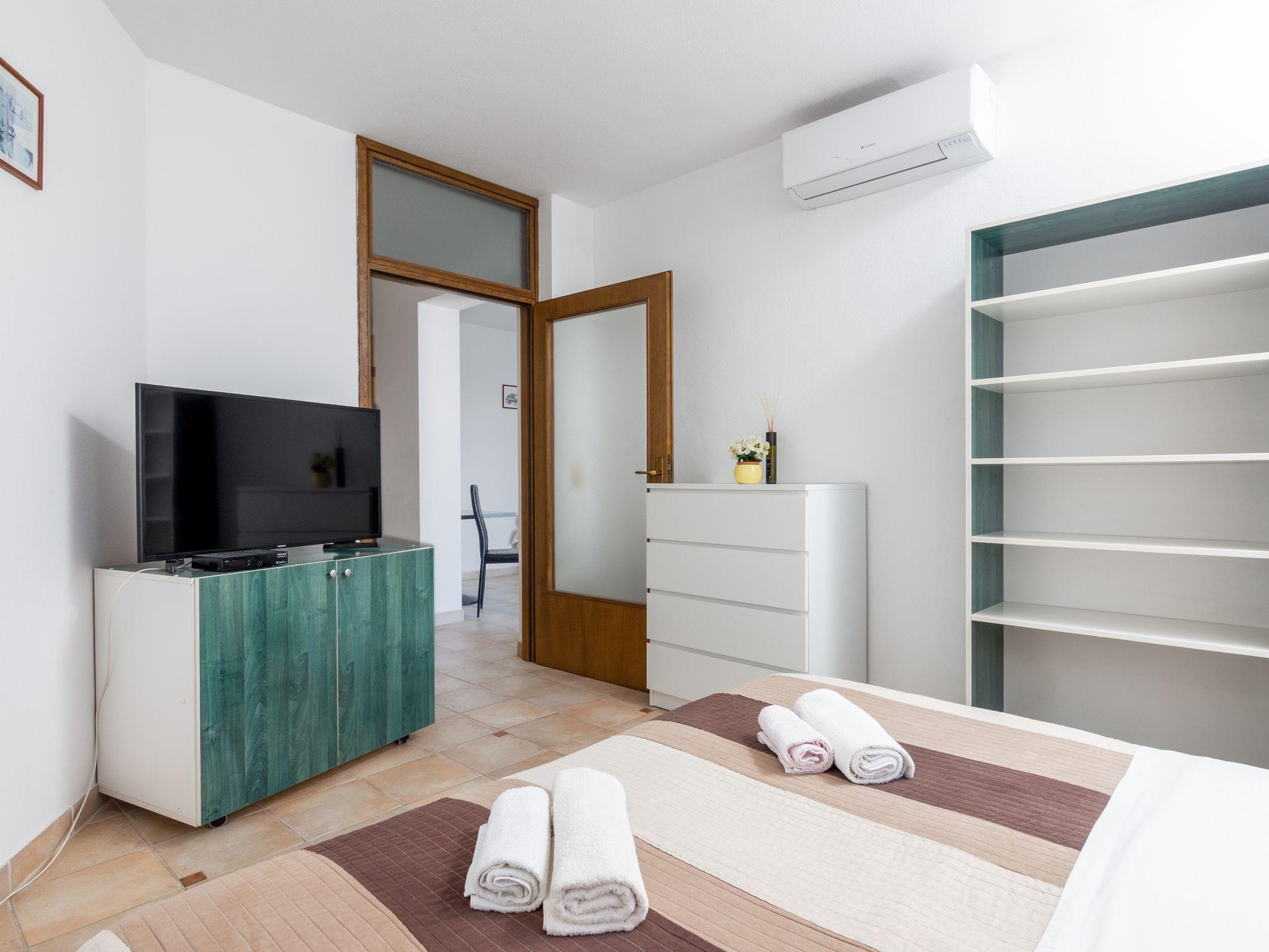 Ferienwohnung bietet Platz für 4 Gäste. Die Betten sind in Schlafzimmern, die es 1 gibt, und in Wohnzimmer, innerhalb einer Gesamtfläche von 31m2, angeordnet. Die Gäste haben eine eigene Terrasse zur Verfügung, auf der sie in warmen Sommernächten genießen können. IM PREIS INBEGRIFFEN: Kurtaxe, Endreinigung, Klimatisierung, Internet, Wäschewaschen, Bügeleisen, Bügelbrett, Föhn. VERBINDLICHE ZUSÄTZLICHE KOSTEN: Aufzahlung für Kurzaufenthalte (prozentualer Zuschlag pro Nächtigungsanzahl: 30% - 1, 20% - 2, 10% - 3). Die Verfügbarkeit zusätzlicher Dienstleistungen in Ihrem reservierten Termin und die Preise derselben (falls nicht aufgeführt) müssen im Voraus überprüft werden. Zusätzliche Dienstleistungen die in der Zahlungsaufforderung nicht aufgeführt sind werden direkt beim Vermieter bezahlt, angenommen der Gast nutzt auch diese.
