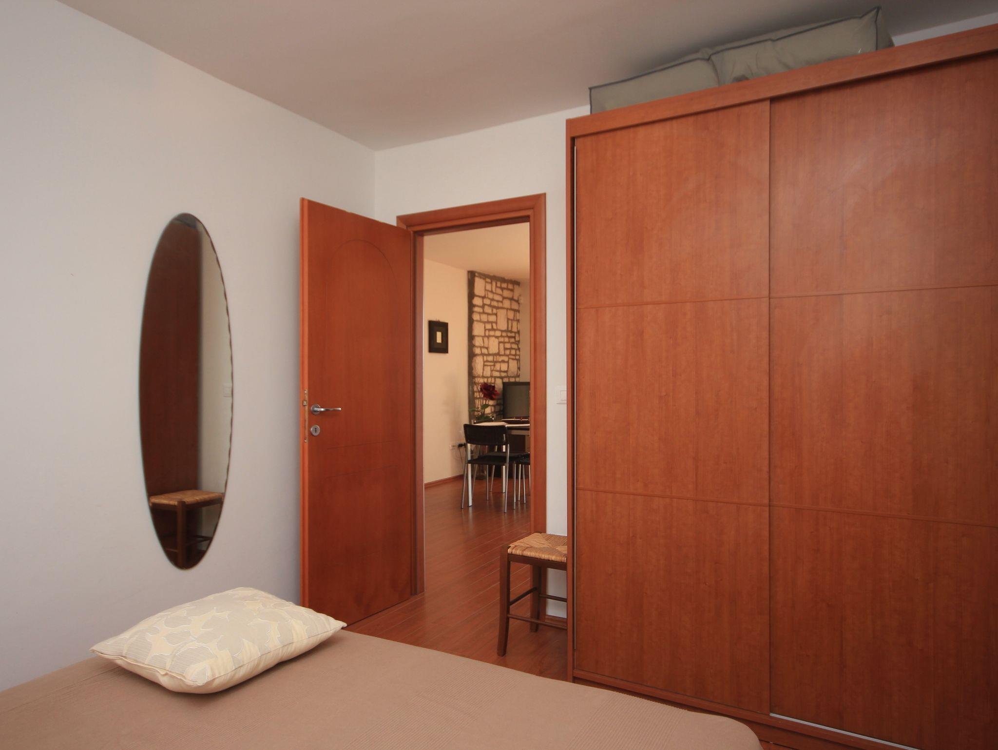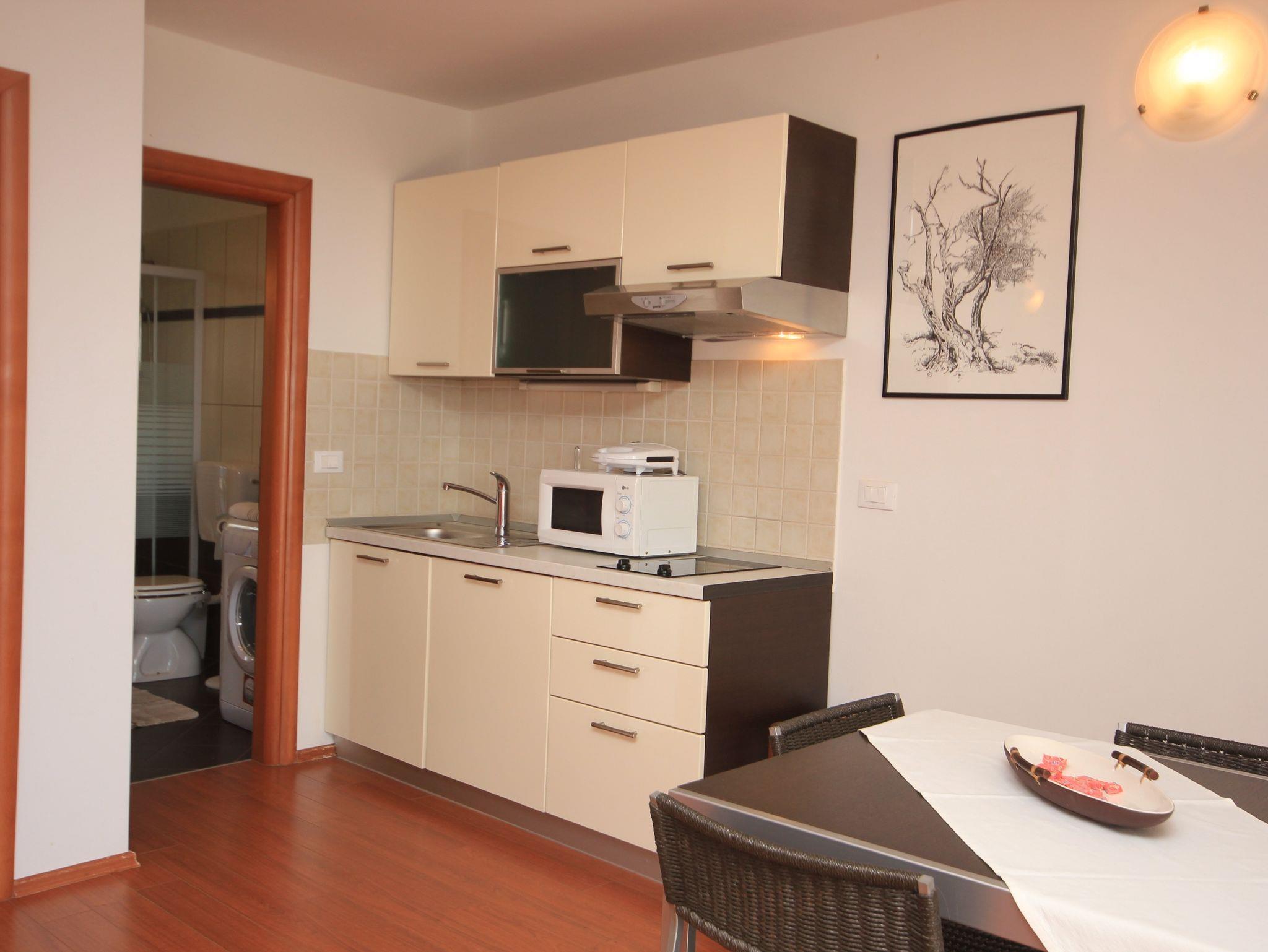 Ferienwohnung bietet Platz für 4 Gäste. Die Betten sind in Schlafzimmern, die es 1 gibt, und in Wohnzimmer, innerhalb einer Gesamtfläche von 37m2, angeordnet. Die Gäste haben eine eigene Terrasse zur Verfügung, auf der sie in warmen Sommernächten genießen können. Das Apartment bietet Meerblick. Es ist erlaubt, Speisen auf dem Gemeinschafts-Grill vorzubereiten. In der Unterkunftseinheit besteht die Möglichkeit des Mitbringens von Haustieren gegen Aufpreis. IM PREIS INBEGRIFFEN: Kurtaxe, Endreinigung, Klimatisierung, Parkplatz, Internet, Kinderbett, Bügeleisen, Bügelbrett, Föhn. VERBINDLICHE ZUSÄTZLICHE KOSTEN: Aufzahlung für Kurzaufenthalte (prozentualer Zuschlag pro Nächtigungsanzahl: 30% - 1, 20% - 2, 10% - 3). UNVERBINDLICHE ZUSÄTZLICHE KOSTEN: Haustiere (10,00 € pro Nacht). Die Verfügbarkeit zusätzlicher Dienstleistungen in Ihrem reservierten Termin und die Preise derselben (falls nicht aufgeführt) müssen im Voraus überprüft werden. Zusätzliche Dienstleistungen die in der Zahlungsaufforderung nicht aufgeführt sind werden direkt beim Vermieter bezahlt, angenommen der Gast nutzt auch diese. Ermäßigung auf den Grundpreis: Gratistag 14=13 (bei einem Aufenthalt von 14 Tagen oder mehr erhalten Sie einen Gratistag für den Aufenthalt bis 31.12.26).