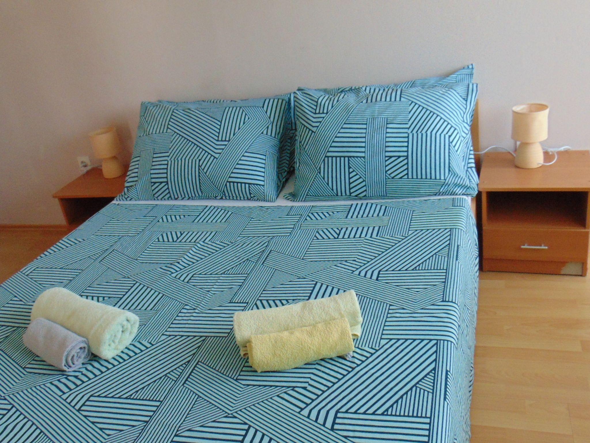 Ferienwohnung bietet Platz für 4 Gäste. Die Betten sind in Schlafzimmern, die es 2 gibt, innerhalb einer Gesamtfläche von 51m2, angeordnet. Die Gäste haben einen eigenen Balkon zur Verfügung, auf der sie in warmen Sommernächten genießen können. IM PREIS INBEGRIFFEN: Kurtaxe, Endreinigung, Klimatisierung, Parkplatz, Internet. Die Verfügbarkeit zusätzlicher Dienstleistungen in Ihrem reservierten Termin und die Preise derselben (falls nicht aufgeführt) müssen im Voraus überprüft werden. Zusätzliche Dienstleistungen die in der Zahlungsaufforderung nicht aufgeführt sind werden direkt beim Vermieter bezahlt, angenommen der Gast nutzt auch diese.