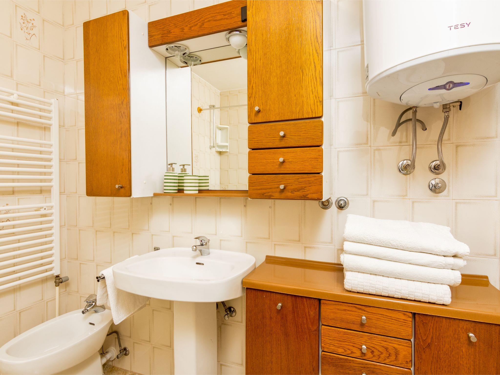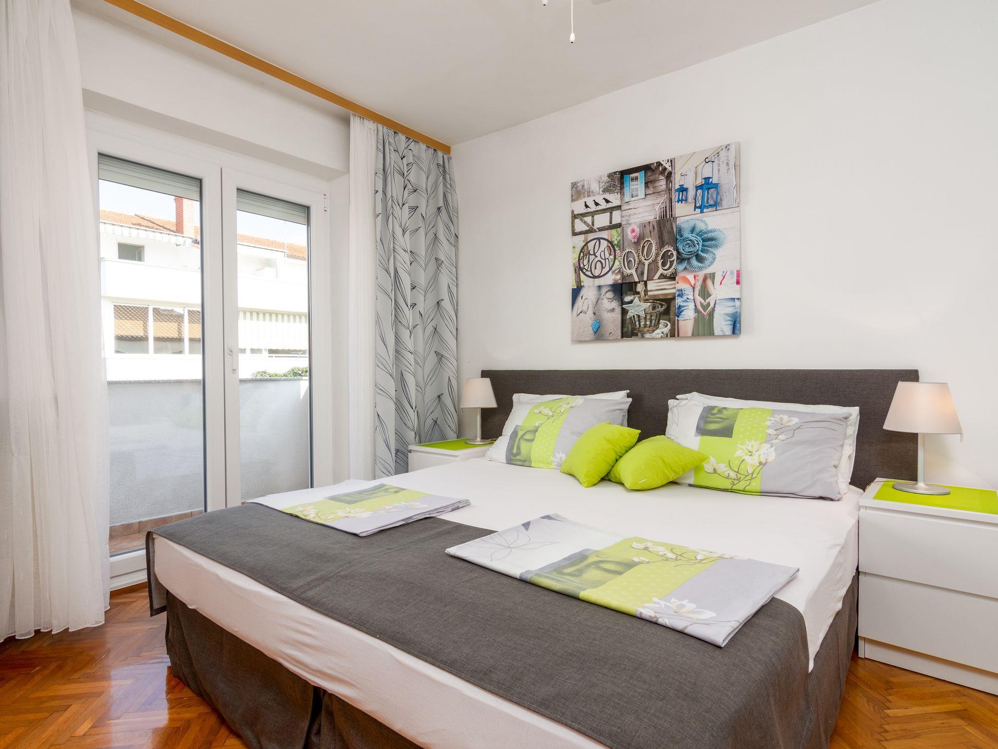 Ferienwohnung bietet Platz für 6 Gäste. Die Betten sind in Schlafzimmern, die es 3 gibt, innerhalb einer Gesamtfläche von 78m2, angeordnet. Die Gäste haben eine eigene Terrasse zur Verfügung, auf der sie in warmen Sommernächten genießen können. Es ist erlaubt, Speisen auf dem Gemeinschafts-Grill vorzubereiten. IM PREIS INBEGRIFFEN: Kurtaxe, Endreinigung, Klimatisierung, Parkplatz, Internet, Bügeleisen, Bügelbrett, Föhn. VERBINDLICHE ZUSÄTZLICHE KOSTEN: Aufzahlung für Kurzaufenthalte (prozentualer Zuschlag pro Nächtigungsanzahl: 30% - 1, 20% - 2, 10% - 3). Die Verfügbarkeit zusätzlicher Dienstleistungen in Ihrem reservierten Termin und die Preise derselben (falls nicht aufgeführt) müssen im Voraus überprüft werden. Zusätzliche Dienstleistungen die in der Zahlungsaufforderung nicht aufgeführt sind werden direkt beim Vermieter bezahlt, angenommen der Gast nutzt auch diese. Ermäßigung auf den Grundpreis: Gratistag 14=13 (bei einem Aufenthalt von 14 Tagen oder mehr erhalten Sie einen Gratistag für den Aufenthalt bis 31.12.26).