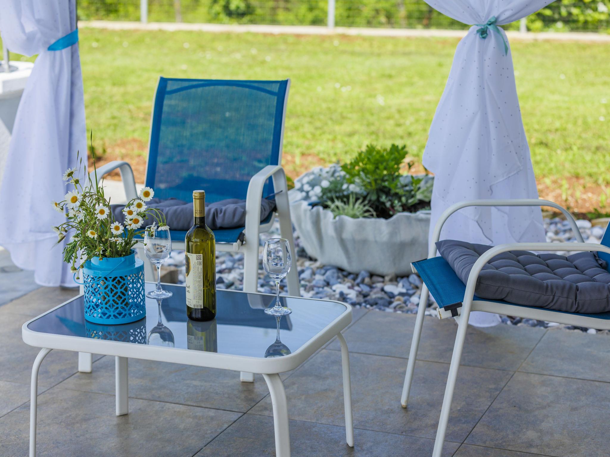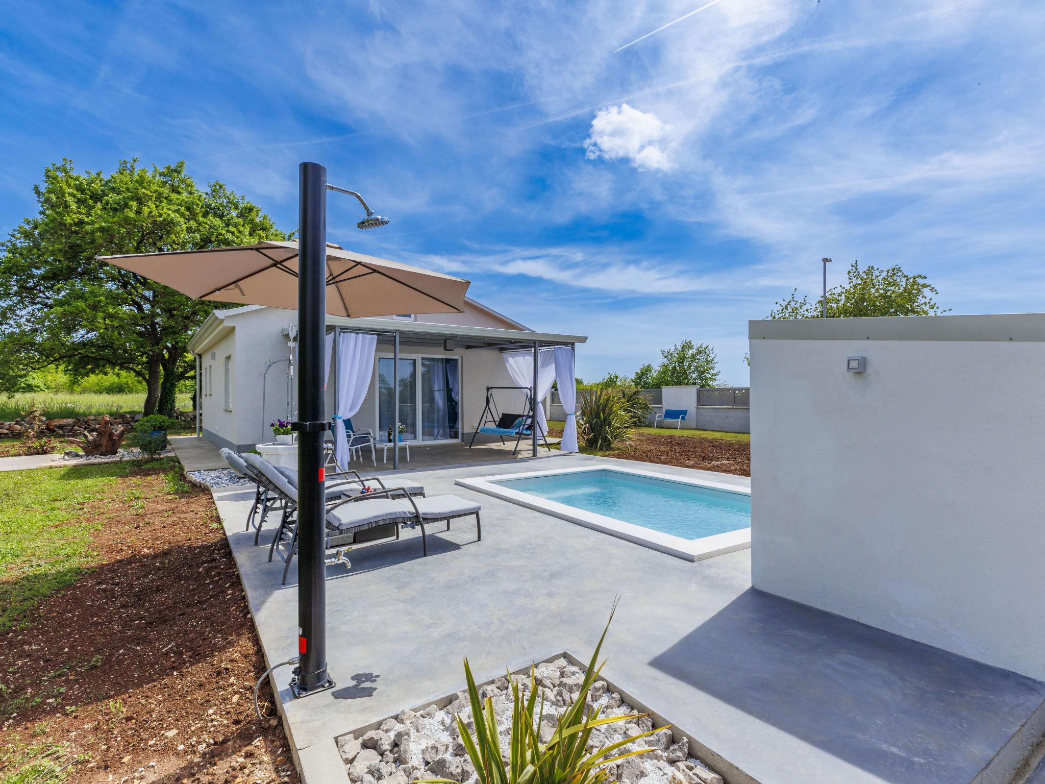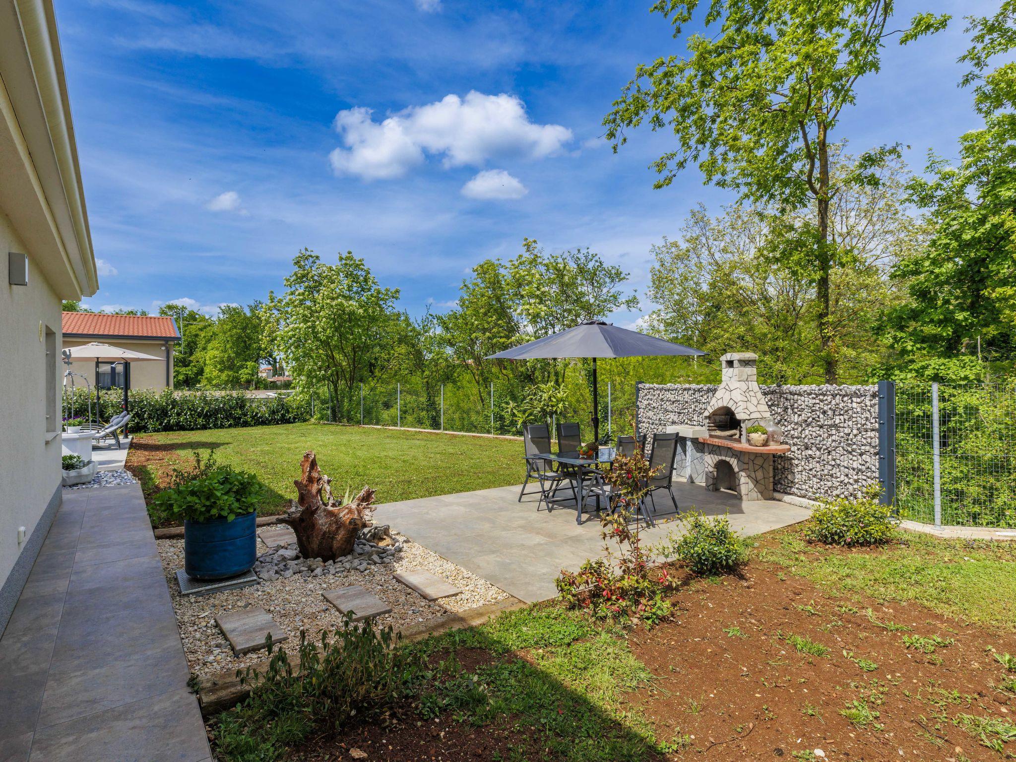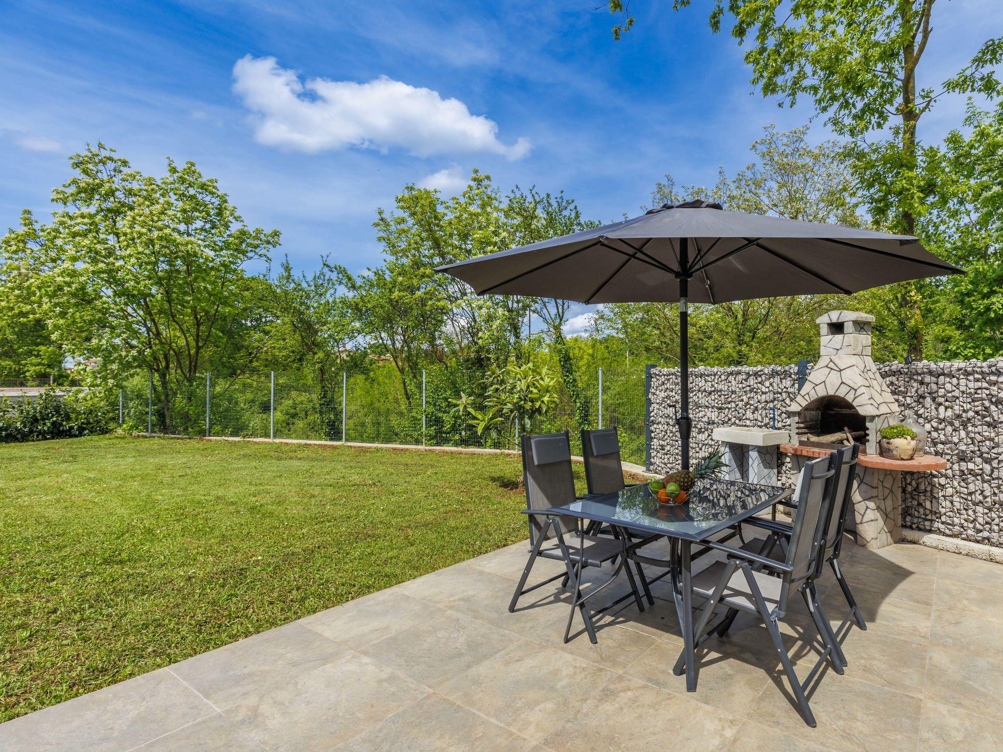 Cosy single-family house "Villa Fenix". In the hamlet Križanci 2.5 km from the centre of Žminj, 26 km from the centre of Rovinj, 26 km from the sea. Private: property 856 m2 (fenced), garden with lawn and wildlife garden, swimming pool angular, heated (5 x 2 m, 10 m2, depth 140 cm, seasonal availability: 01.May. - 21.Oct.) with internal staircase. Outdoor shower, barbecue. In the house: internet access, washing machine. Parking (for 2 cars) at the house on the premises. Supermarket 1.5 km, restaurant 2 km, bus stop 2.6 km, pebble beach 26 km. Riding stable 10 km, walking paths from the house 100 m, cycle lane 150 m. Nearby attractions: adventure park 20 km, zip line 15 km. Swimming pool heated (extra).