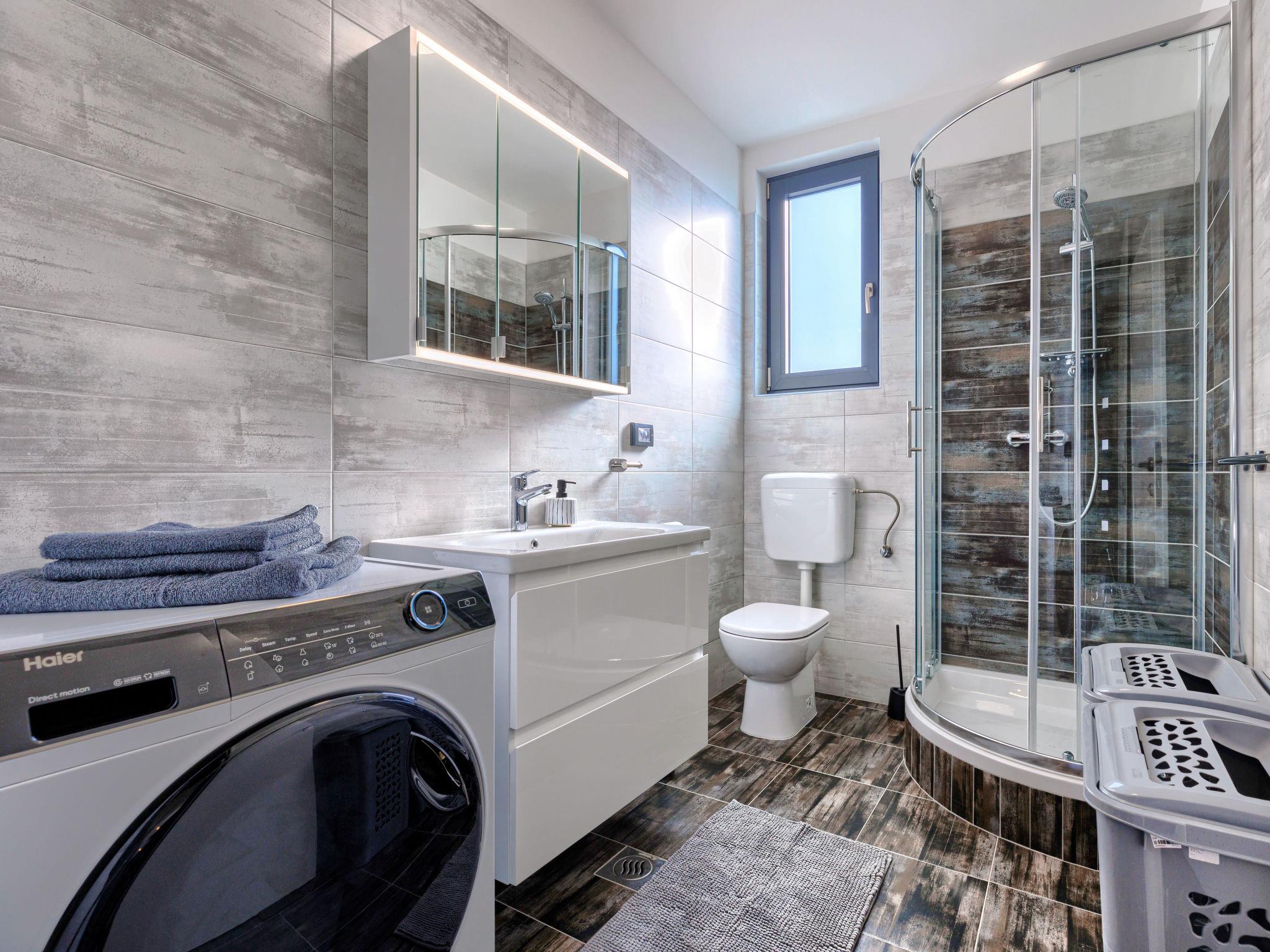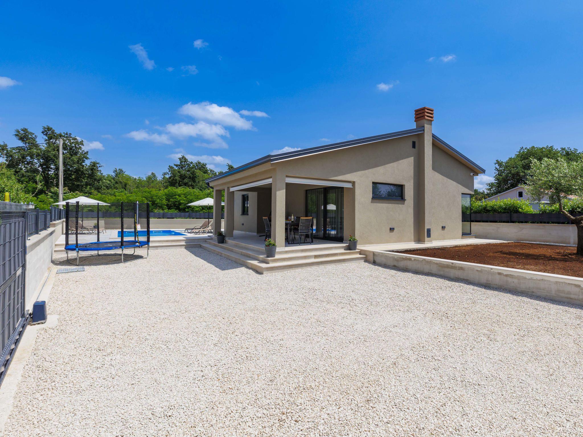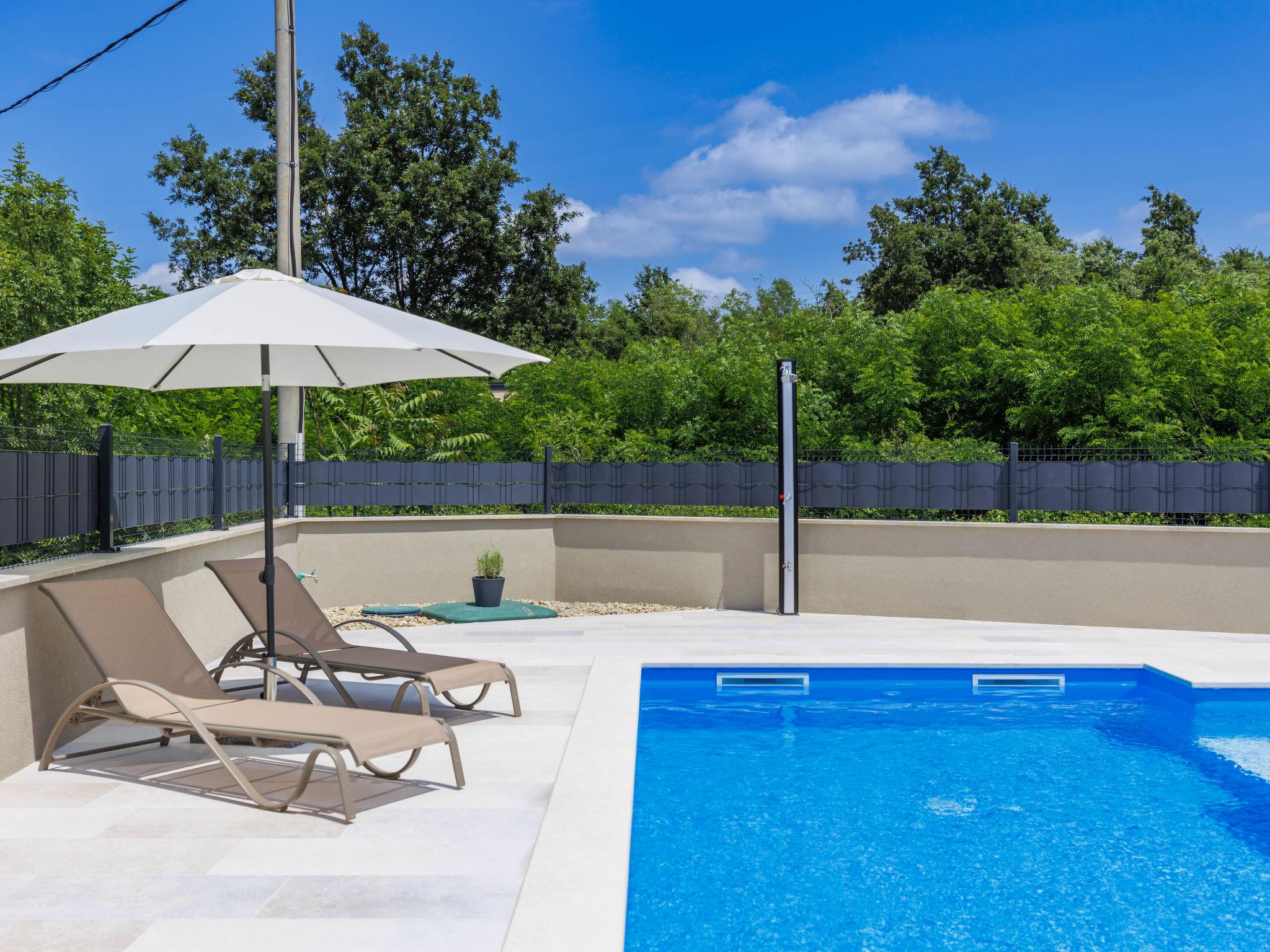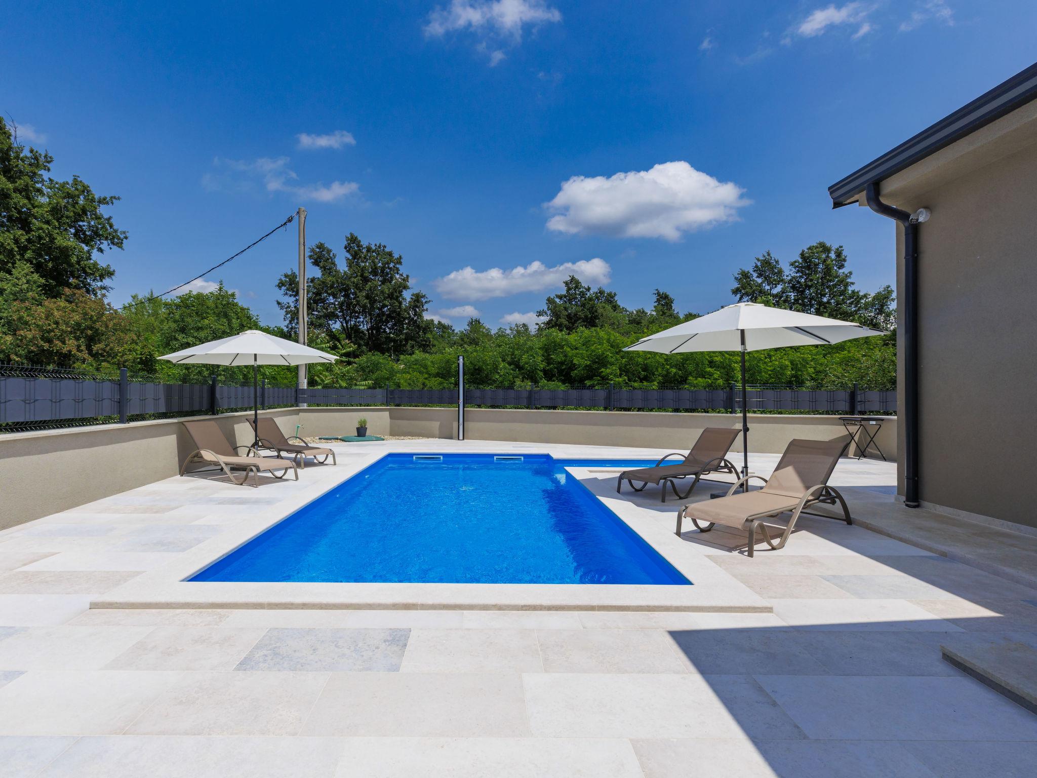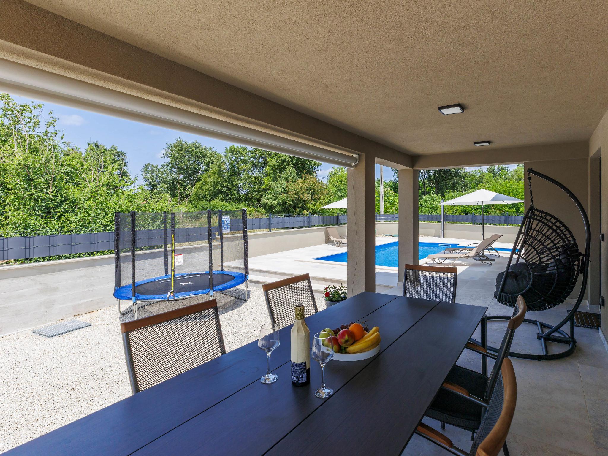 Cosy single-family house "Marko". In the hamlet Križanci 2.5 km from the centre of Žminj, 26 km from the centre of Rovinj, in a sunny position, 26 km from the sea. Private: property 500 m2 (fenced), garden with lawn and wildlife garden, swimming pool angular (7 x 3 m, depth 140 cm, seasonal availability: 01.May. - 01.Oct.) with internal staircase. Outdoor shower, children's playground (slide, swing), pool maintenance by the owner/gardener. In the house: internet access, washing machine. Parking (for 2 cars) at the house on the premises. Supermarket 1.5 km, restaurant 2 km, bus stop 2.6 km, pebble beach 26 km. Riding stable 10 km, walking paths from the house 100 m, cycle lane 150 m. Nearby attractions: adventure park 20 km, zip line 15 km.