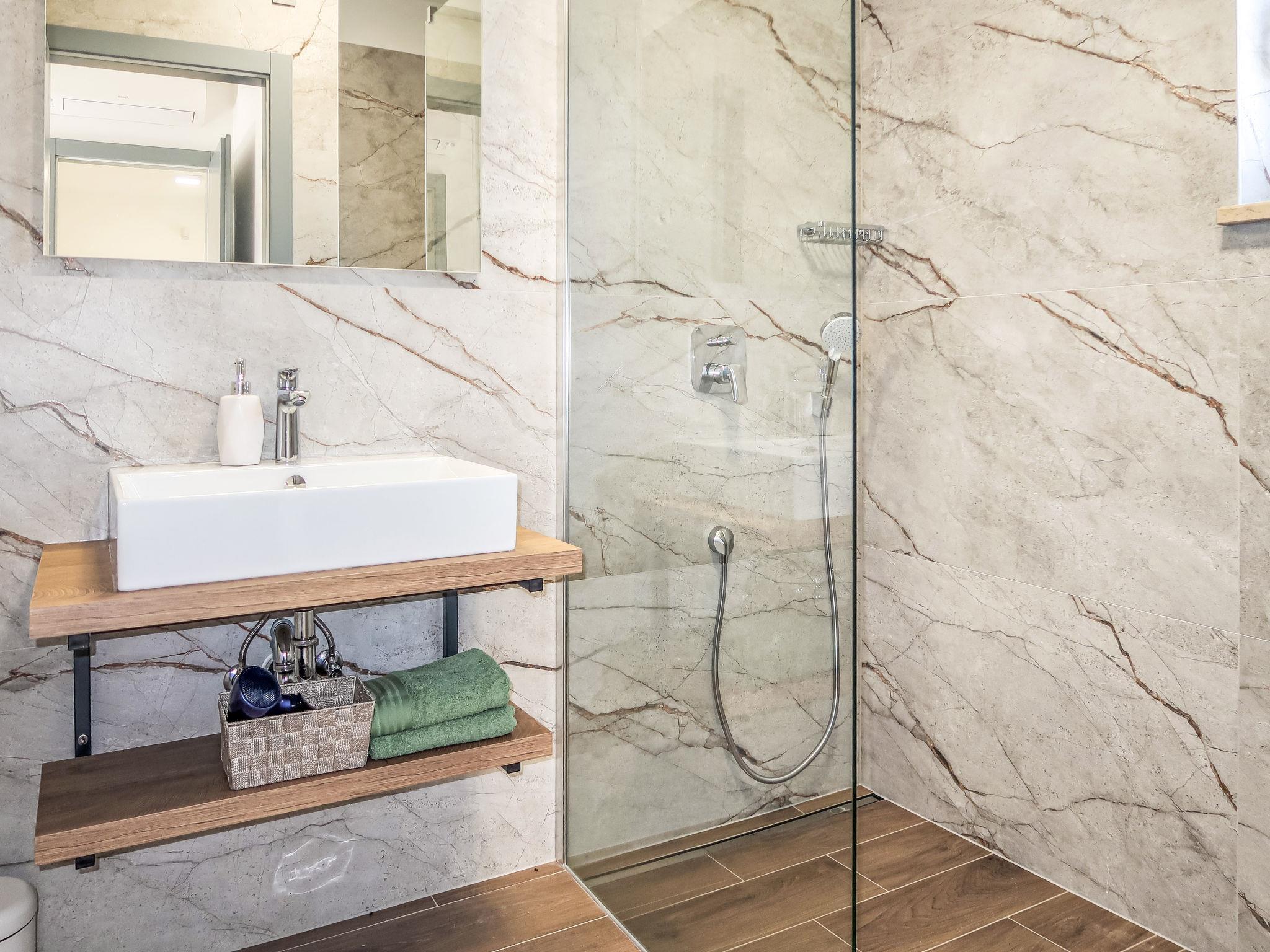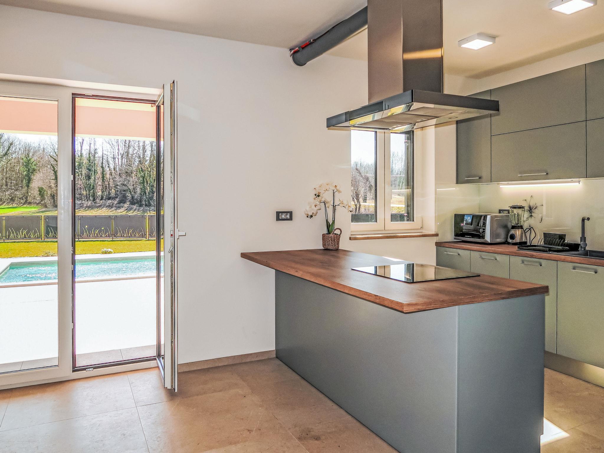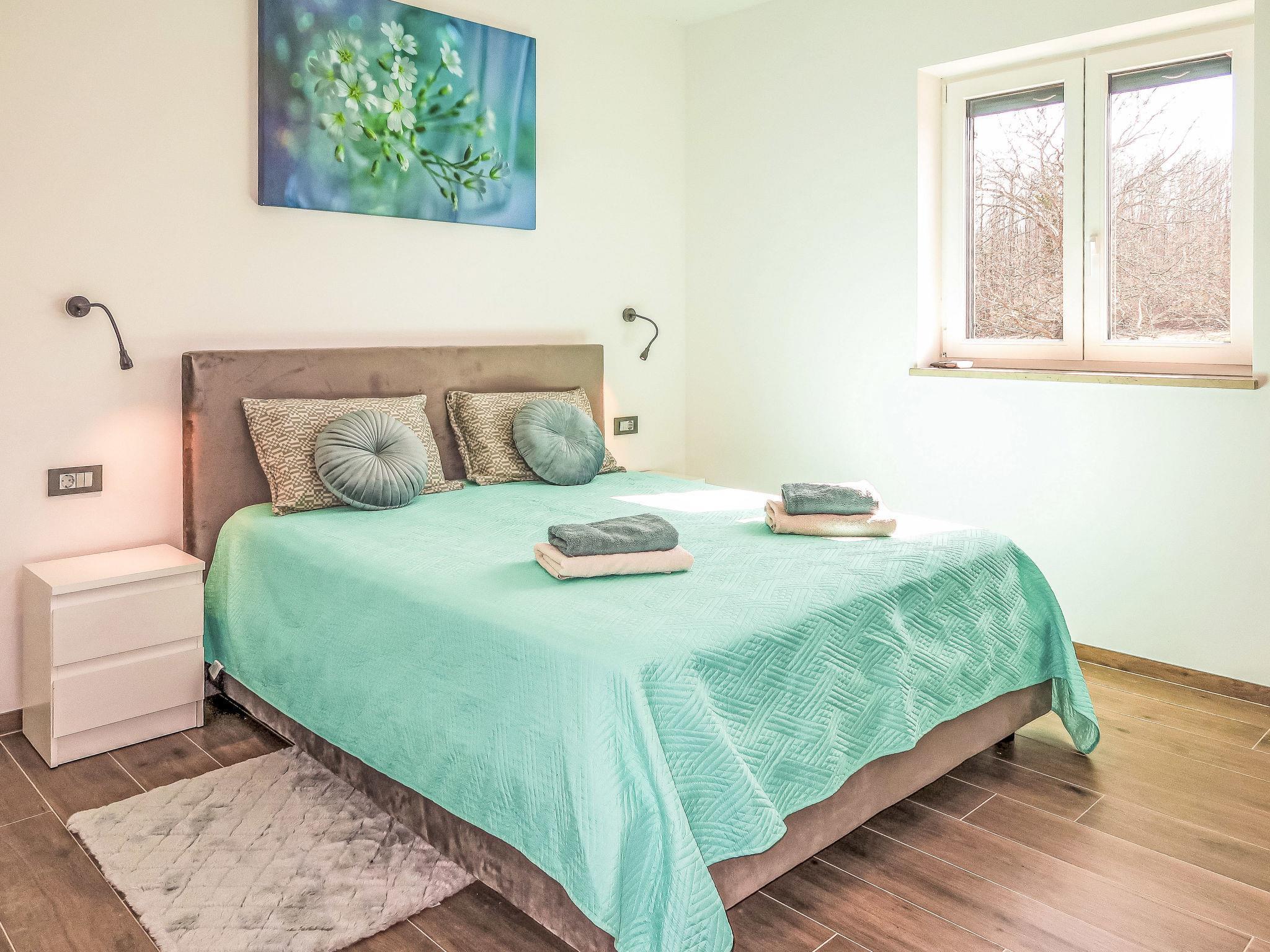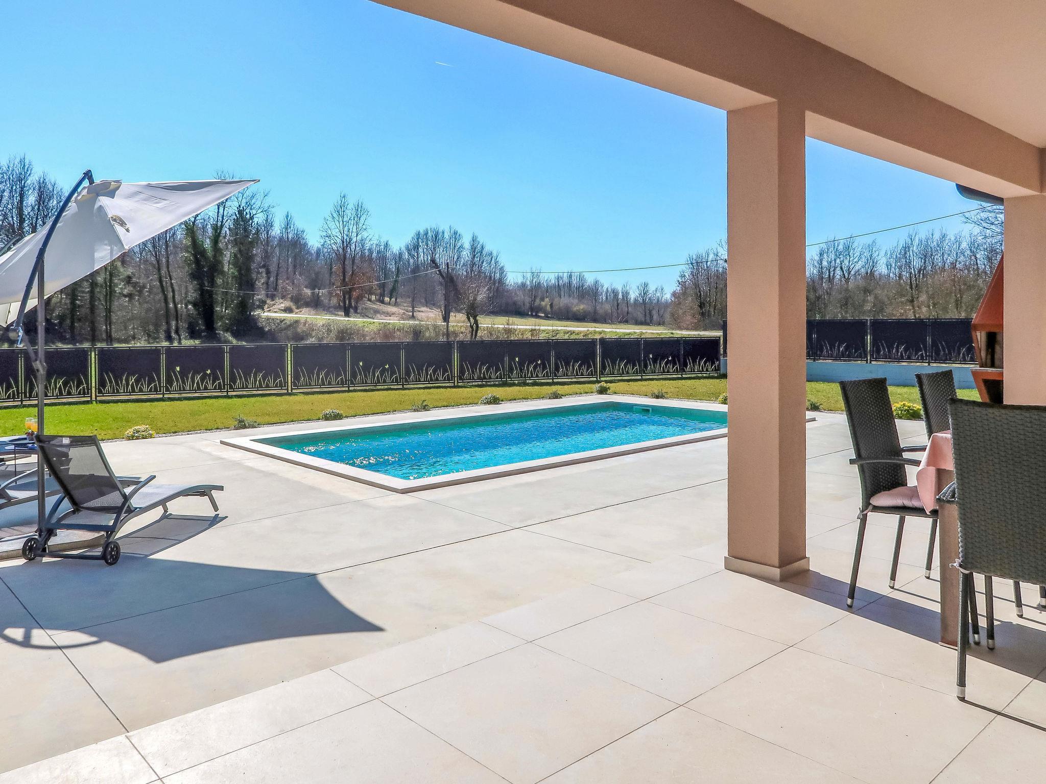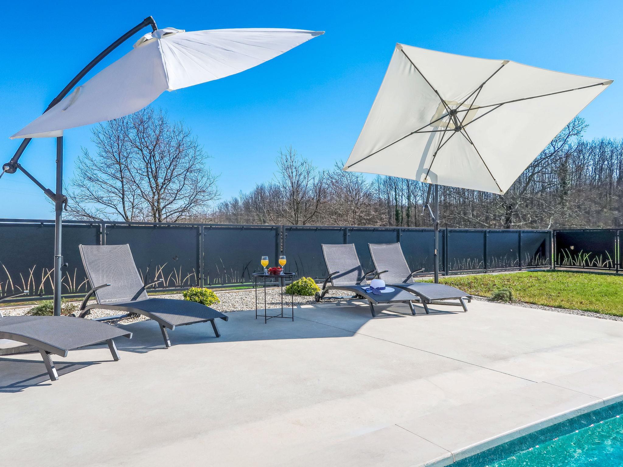 Beautiful single-family house "Villa Temelia", 2 storeys. In the hamlet Salamunišce 9 km from the centre of Žminj, 27 km from the sea, in the countryside. Private: property 1'000 m2 with lawn and wildlife garden, swimming pool angular (8 x 4 m, depth 140 cm, seasonal availability: 01.May. - 30.Oct.) with internal staircase and salt-electrolysis pool-cleaning system. Outdoor shower, terrace, barbecue (slide, swing), pool maintenance by the owner/gardener. In the house: internet access, trampoline, washing machine. Parking (for 3 cars) at the house on the premises. Shop 5 km, supermarket 9 km, restaurant 9 km, bus stop "Žminj" 9 km, pebble beach 27 km. Please note: airfield 34 km from the property.