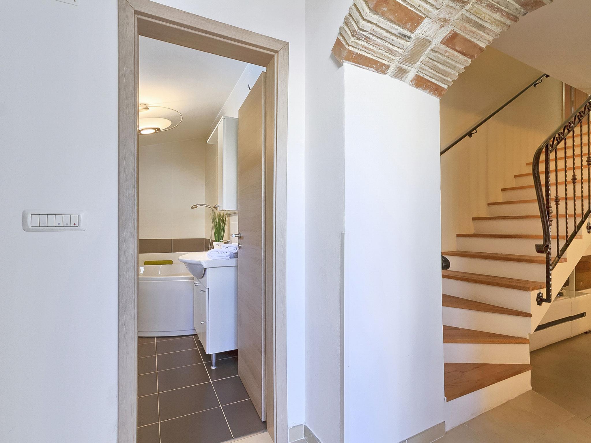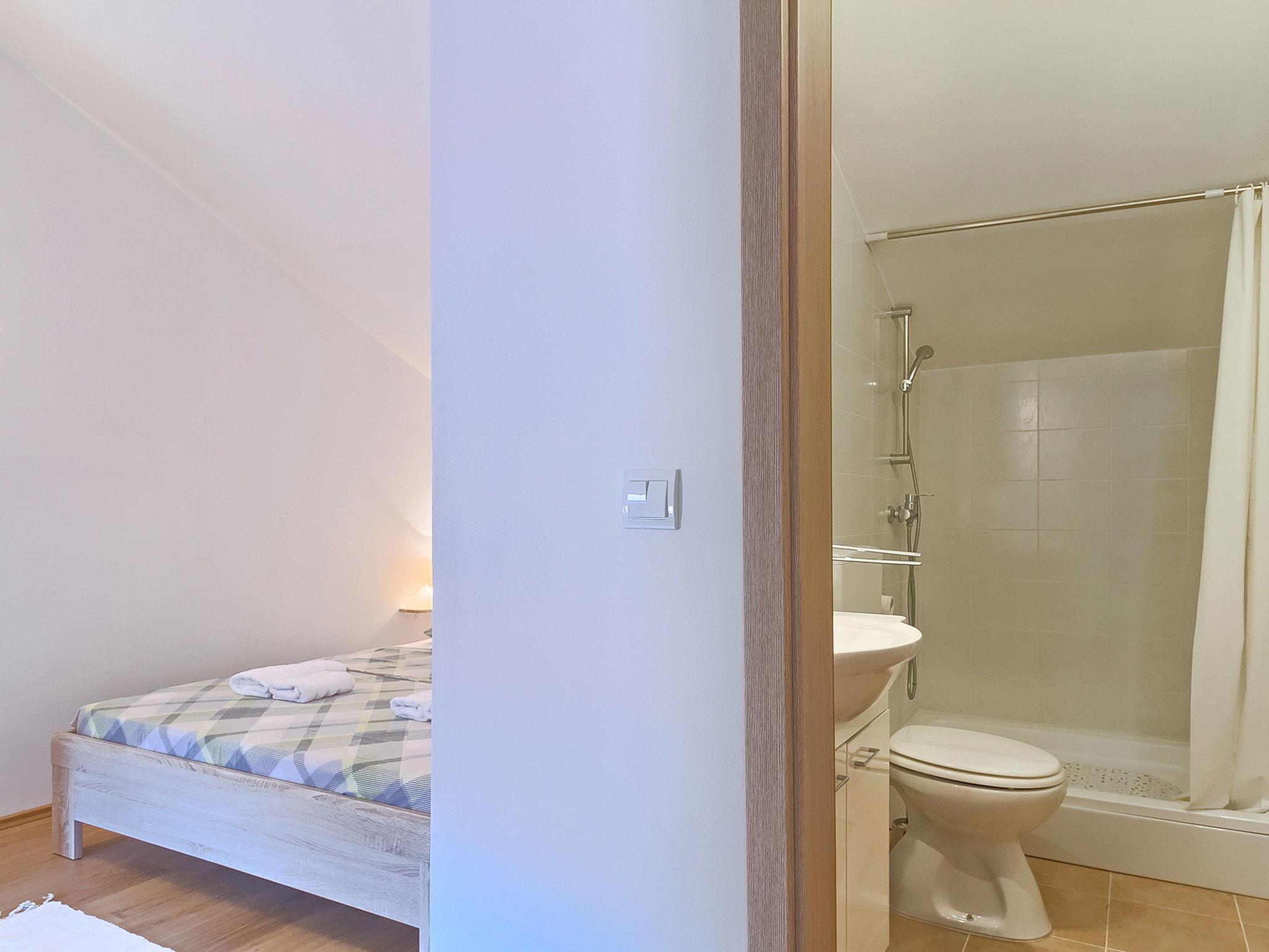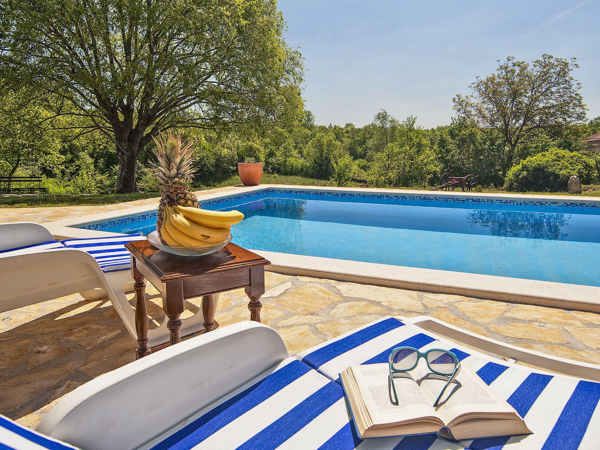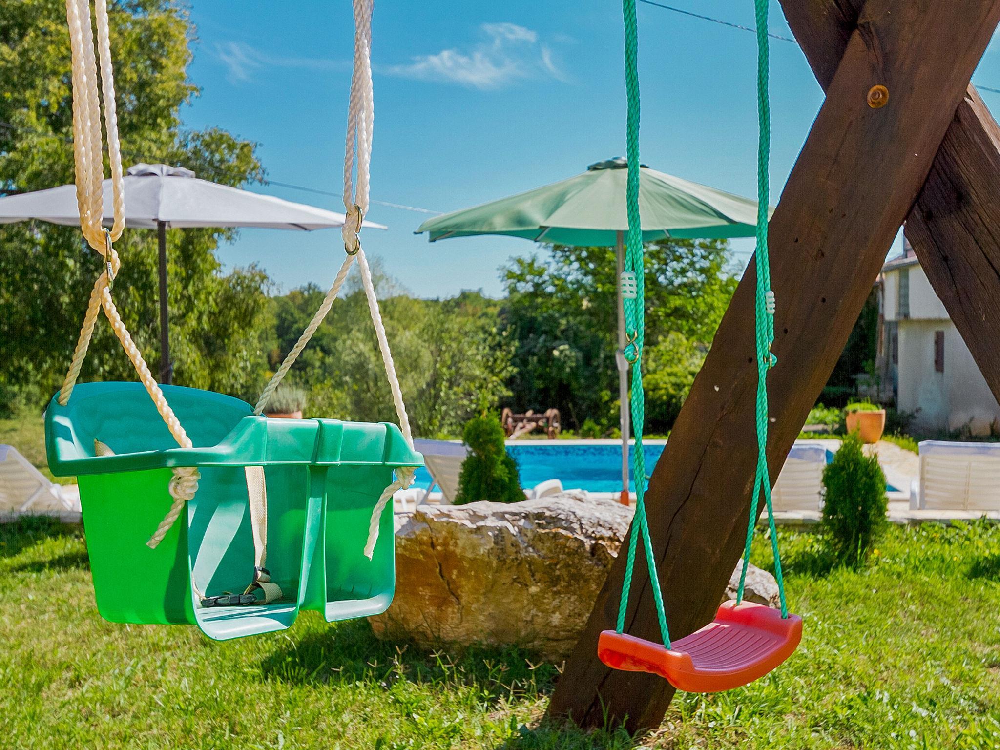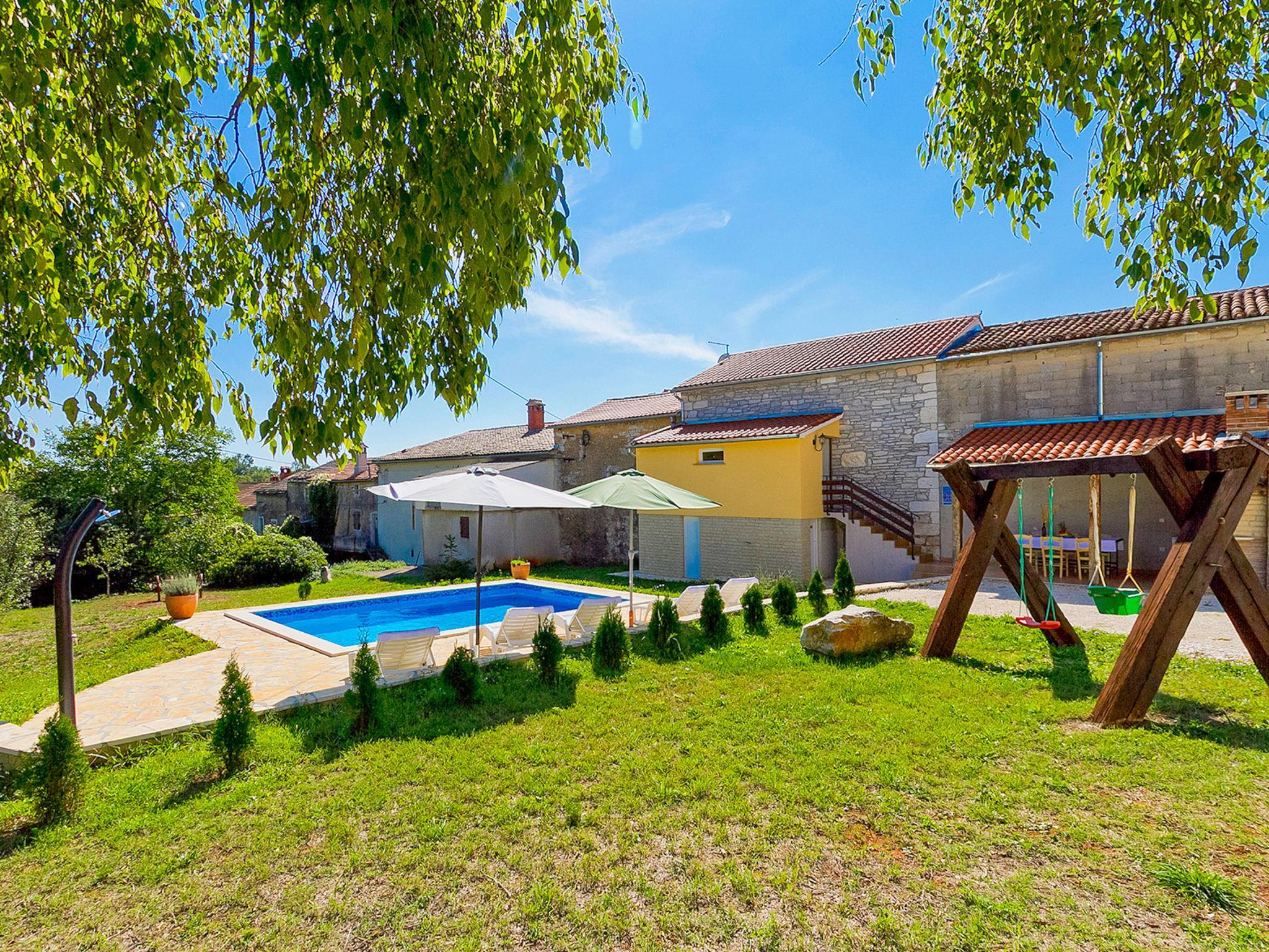 Semi-detached house "Mila", 2 storeys, built in 1800, renovated in 2014. In the hamlet Gržini 5 km from the centre of Žminj, in a quiet, sunny position, 20 km from the sea, in the countryside. Private: property 2'000 m2, beautiful garden with lawn, swimming pool angular (6 x 4 m, depth 140 cm, seasonal availability: 27.Apr. - 05.Oct.) with internal staircase. WC in the pool area, outdoor shower, volleyball, barbecue (swing). In the house: internet access, washing machine. Parking at the house on the premises. Shop 1 km, restaurant 100 m, bus stop 5.6 km, pebble beach 20 km. Walking paths from the house 100 m, cycle lane 150 m. The unit consists of the main house on 2 levels and a small cottage, rented as one unit.