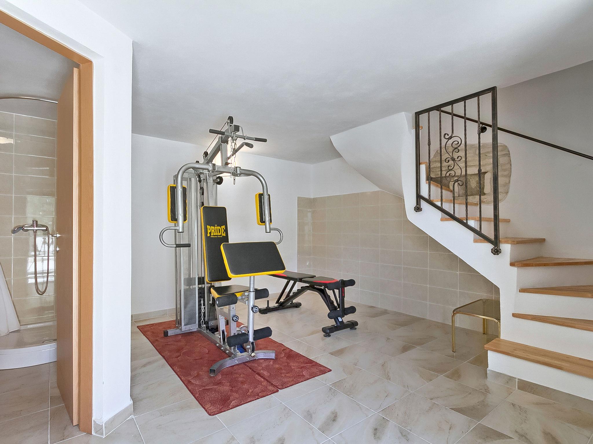 5-room semi-detached house 160 m2 on 2 levels. Living/dining room with satellite TV (flat screen), DVD and air conditioning. Exit to the terrace. 1 room with 1 french bed (160 cm, length 200 cm). Open kitchen (4 hot plates, oven, microwave, freezer, electric coffee machine). Exit to the terrace. Bath/WC, shower/WC. Upper floor: entrance hall with air conditioning. 1 room with 1 french bed (160 cm, length 200 cm). 1 room with 1 french bed (160 cm, length 200 cm), shower/WC. Open gallery with sloping ceilings, ceiling height 140 - 250 cm with 1 double sofabed (160 cm, length 200 cm), air conditioning. Terrace 10 m2, roofed, terrace 15 m2, roofed. Terrace furniture, deck chairs. Beautiful view of the swimming pool and the countryside. Facilities: safe, baby cot, hair dryer. Internet (WiFi, free). Maximum 1 pet/ dog allowed. Main house with living/dining area, open kitchen and one bedroom on the ground floor and 2 double bedrooms on the first floor. In the cottage 1 room with 2 fitness devices, shower/WC on the ground floor and open gallery, double sofabeds, hi-fi system, air conditioning on the first floor.