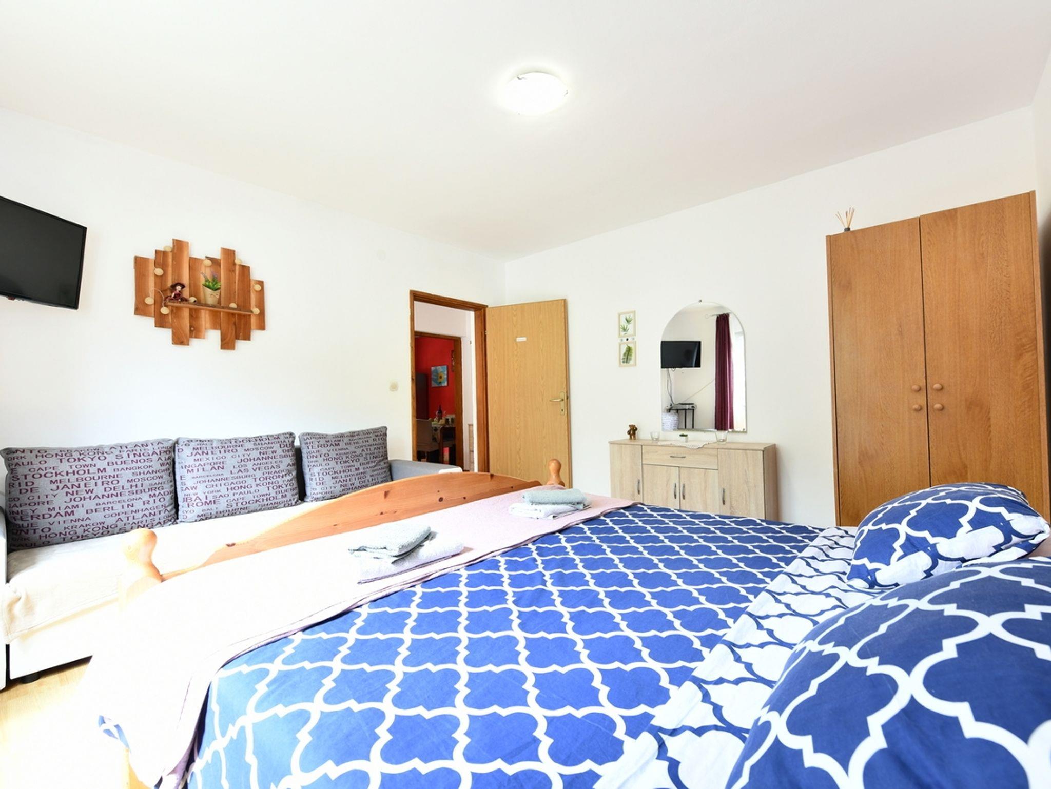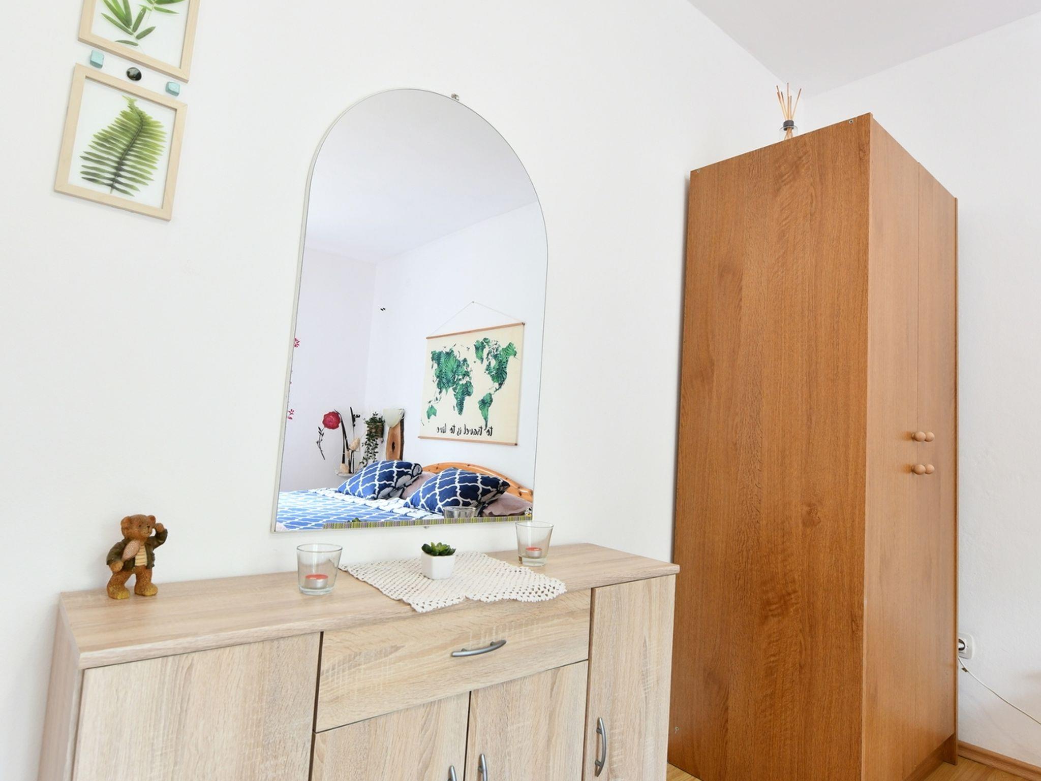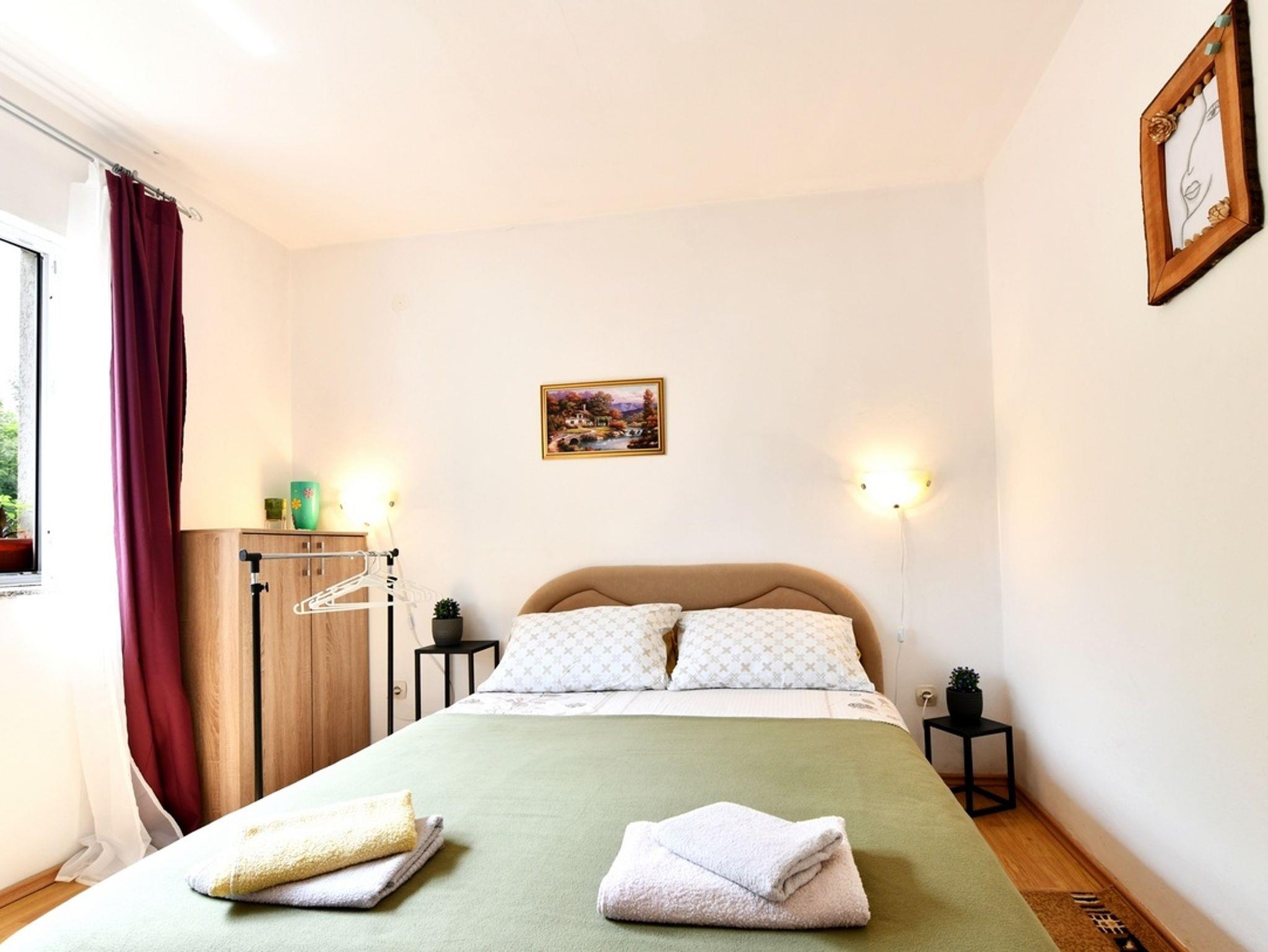 Ferienwohnung bietet Platz für 5 Gäste. Die Betten sind in Schlafzimmern, die es 2 gibt, innerhalb einer Gesamtfläche von 54m2, angeordnet. Die Gäste haben eine eigene Terrasse zur Verfügung, auf der sie in warmen Sommernächten genießen können. Es ist erlaubt, Speisen auf dem Gemeinschafts-Grill vorzubereiten. In der Unterkunftseinheit besteht die Möglichkeit des Mitbringens von Haustieren, und die Dienstleistung ist im Preis der Unterkunft enthalten. IM PREIS INBEGRIFFEN: Kurtaxe, Endreinigung, Parkplatz, Internet, Haustiere, Kinderbett, Bügeleisen, Bügelbrett, Föhn, tragbarer Grill. Die Verfügbarkeit zusätzlicher Dienstleistungen in Ihrem reservierten Termin und die Preise derselben (falls nicht aufgeführt) müssen im Voraus überprüft werden. Zusätzliche Dienstleistungen die in der Zahlungsaufforderung nicht aufgeführt sind werden direkt beim Vermieter bezahlt, angenommen der Gast nutzt auch diese.