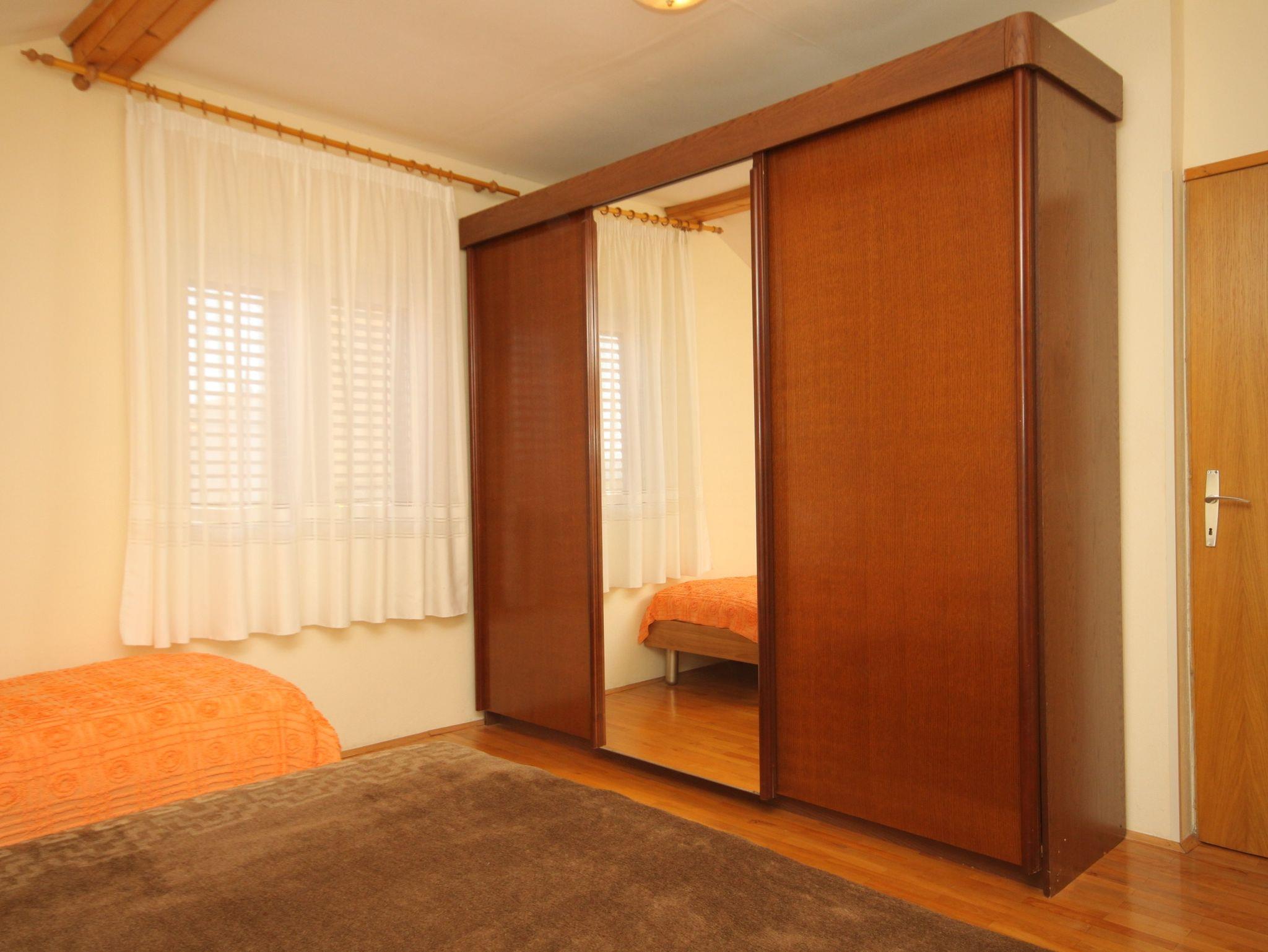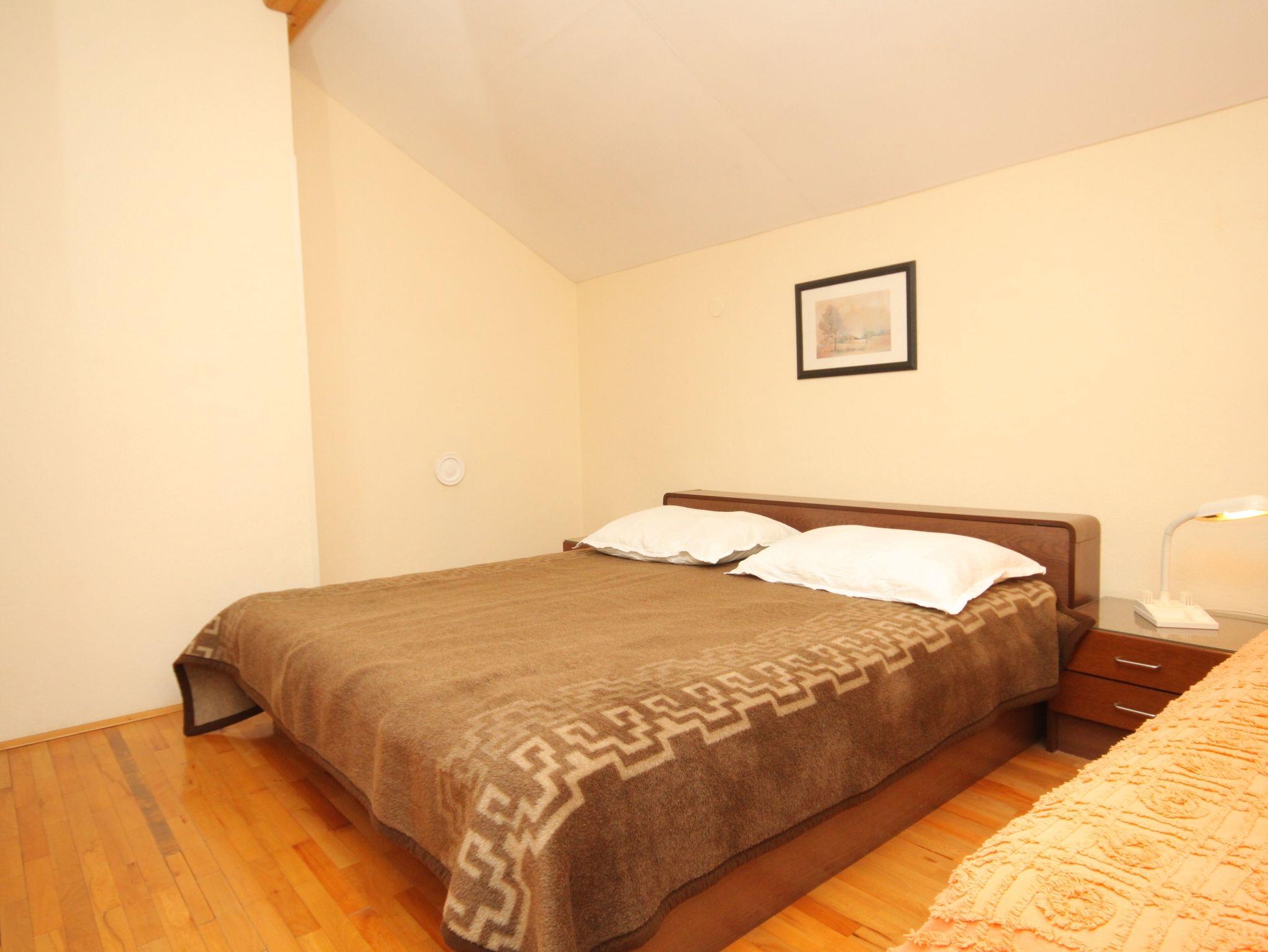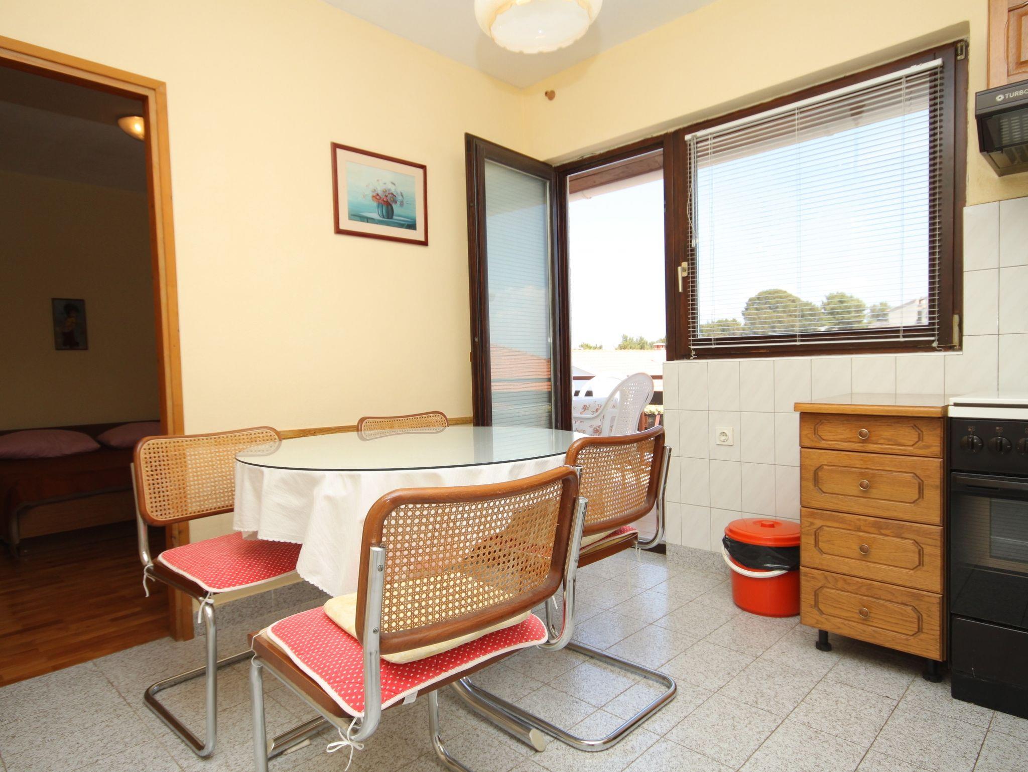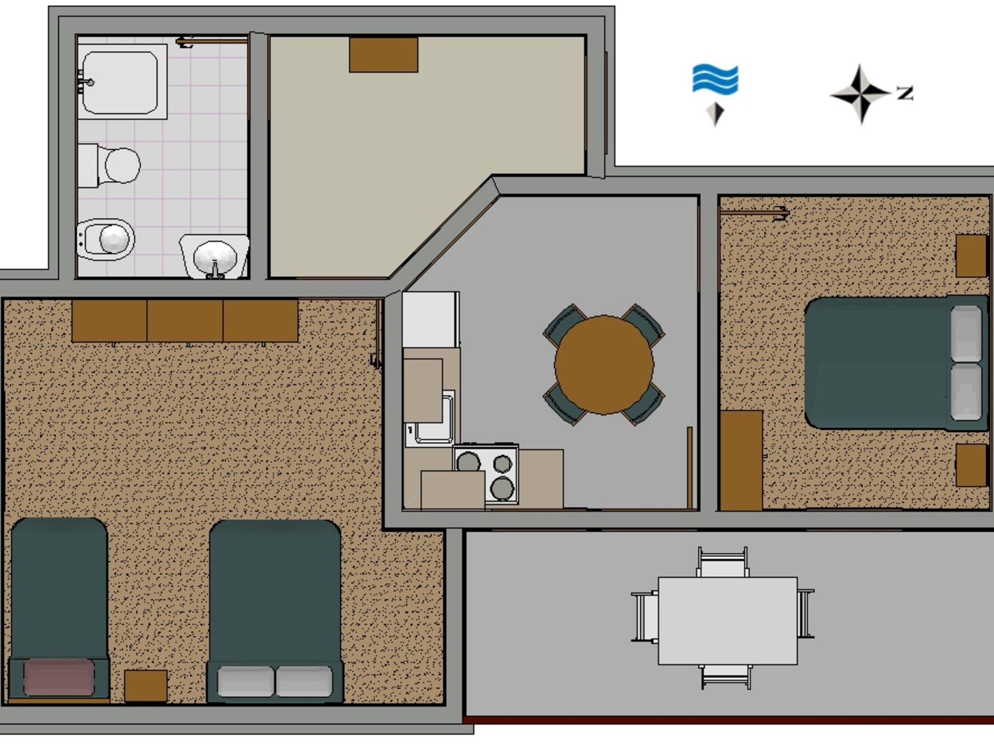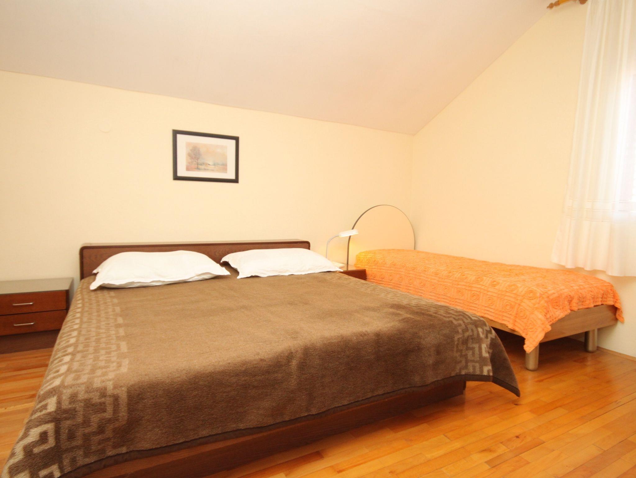 Ferienwohnung bietet Platz für 5 Gäste. Die Betten sind in Schlafzimmern, die es 2 gibt, innerhalb einer Gesamtfläche von 44m2, angeordnet. Die Gäste haben einen eigenen Balkon zur Verfügung, auf der sie in warmen Sommernächten genießen können. Das Apartment bietet Meerblick. Es ist erlaubt, Speisen auf dem Gemeinschafts-Grill vorzubereiten. IM PREIS INBEGRIFFEN: Kurtaxe, Endreinigung, Klimatisierung, Parkplatz, Internet, Kinderbett, Bügeleisen, Bügelbrett, Föhn. VERBINDLICHE ZUSÄTZLICHE KOSTEN: Aufzahlung für Kurzaufenthalte (prozentualer Zuschlag pro Nächtigungsanzahl: 30% - 1, 20% - 2, 10% - 3). Die Verfügbarkeit zusätzlicher Dienstleistungen in Ihrem reservierten Termin und die Preise derselben (falls nicht aufgeführt) müssen im Voraus überprüft werden. Zusätzliche Dienstleistungen die in der Zahlungsaufforderung nicht aufgeführt sind werden direkt beim Vermieter bezahlt, angenommen der Gast nutzt auch diese. Ermäßigung auf den Grundpreis: Gratistag 14=13 (bei einem Aufenthalt von 14 Tagen oder mehr erhalten Sie einen Gratistag für den Aufenthalt bis 31.12.26).