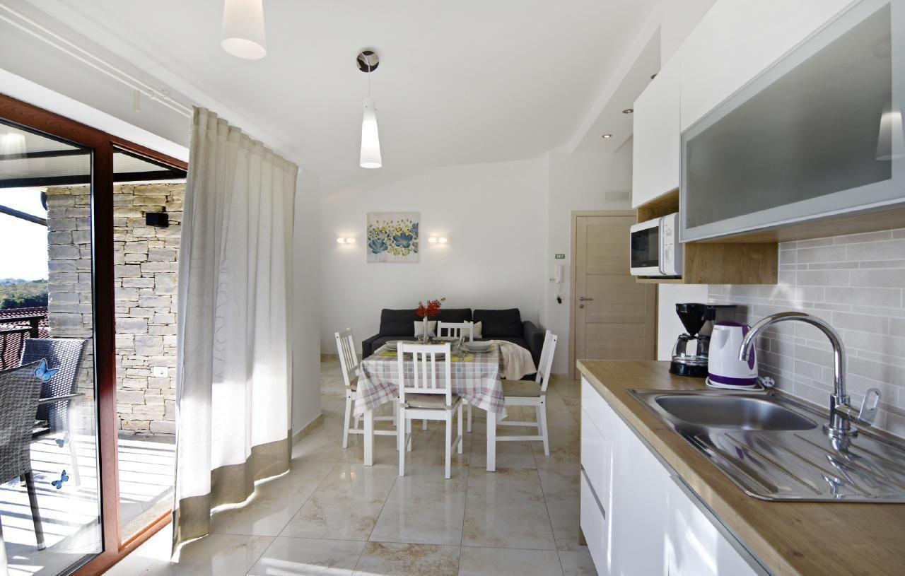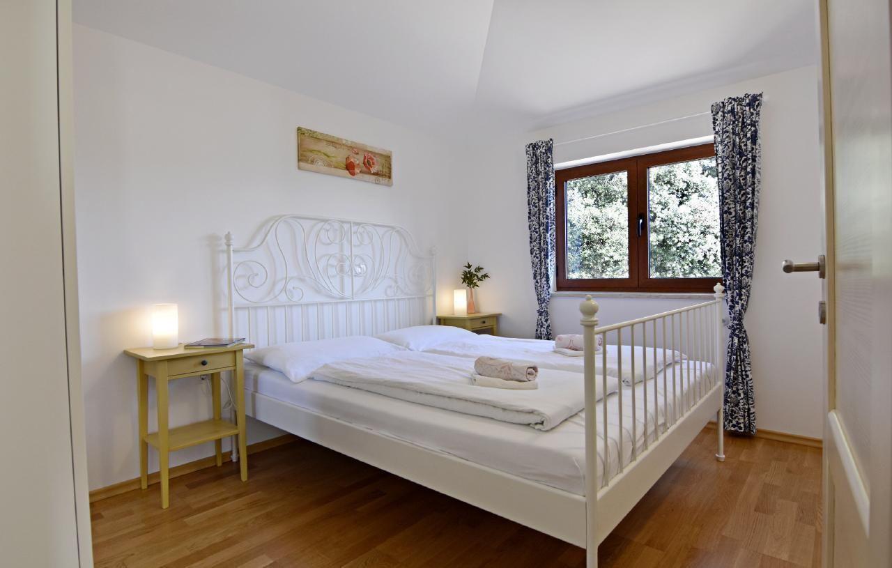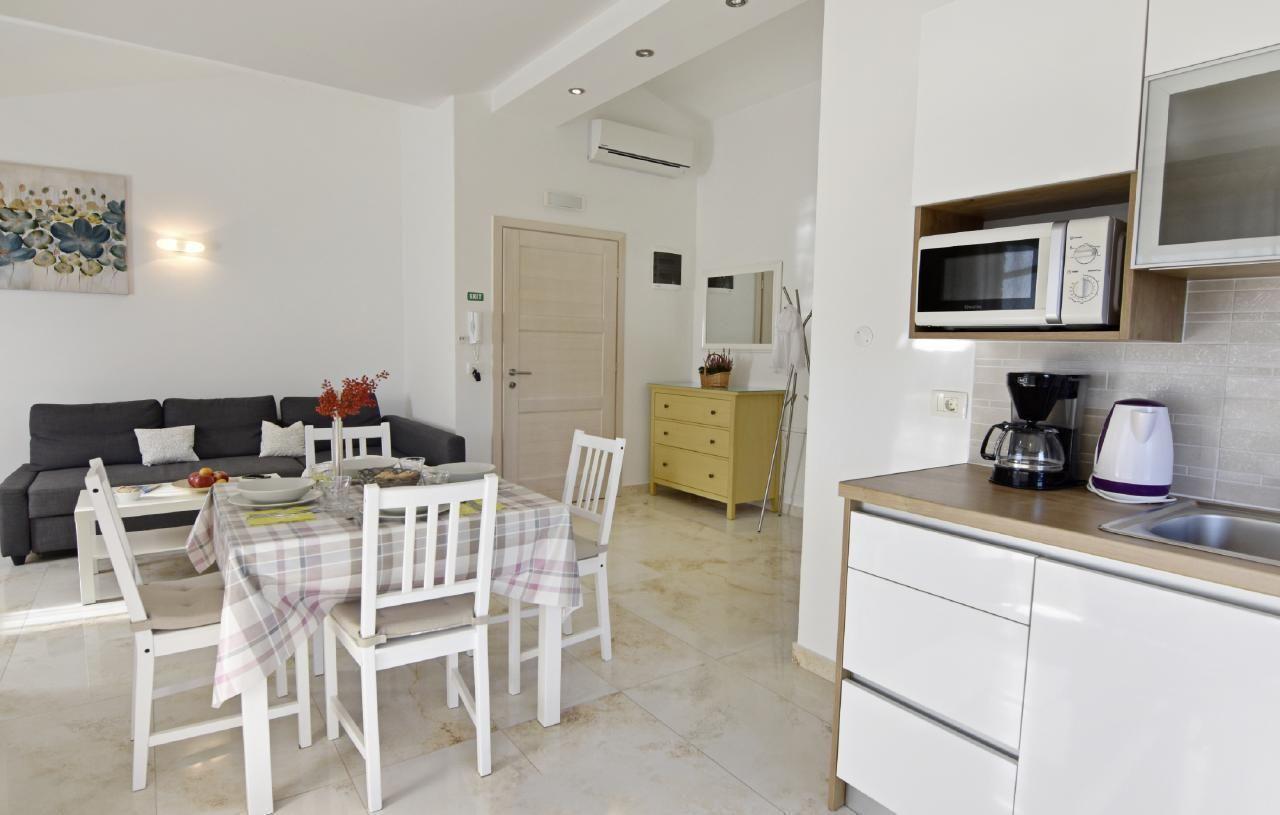 The newly built flat (50 m²) (2017), furnished with care and love in a modern style, offers everything you need for a holiday in complete comfort. The flat is located in a holiday home with 6 similar flats for rent. The house is located in a quiet location in the village of Volparia, which is part of the Salvore-Umag area. The area has been known to tourists for centuries for its healing air, thanks to the pine forests of the area, nature and tranquillity. The pride of the area is the oldest lighthouse in the Adriatic, the Savudrija Lighthouse, built in 1818. The beach is about 900 metres away and can be easily reached on foot in 10 minutes. Excellent accommodation with everything you need to spend an unforgettable holiday. Children welcome.The flat is located on the second floor of the house and has a bedroom with double bed (160x200), wardrobe, safe, a bedroom with bunk bed (2x 80x200), wardrobe, in the living room the sofa bed (150x200), bed linen provided (weekly change), flat screen satellite TV, coffee table, bathroom with shower, sink, washing machine, hairdryer, Towels provided two per person for the bathroom (weekly change), eat-in kitchen with dishwasher, microwave, 4 electric ceramic hobs, fridge freezer, kettle, coffee maker, dining table and chairs, free wifi, air conditioning, from the kitchen you go out onto the balcony (7 m 2) which is furnished with table and chairs and offers a magnificent view over the countryside. Ideal for enjoying coffee in the morning and admiring the surrounding nature. For common use, the house offers: the fenced garden and car park, the outdoor pool and outdoor shower (7x3 m rectangular 24 sqm, depth 140 cm with stairs from 30.09. to 19.10.) sun loungers, the sun terrace around the 25 sqm pool, parasols, barbecue area, iron and ironing board. The nearby beaches are of different types, sandy, pebbly, concrete, rocks for all tastes. The area is one of the few where the coast changes its shape and type every few hundred metres and is rich in vegetation near the sea, where you can protect yourself from the sun during the hottest hours. The centre of Umag is 7 km from the house, in the centre of Umag to visit the museum, the aquarium, the cathedral, a walk along the famous Umag dam, to explore the narrow and interesting streets of the historic centre of Umag, or to visit the stalls and, to the delight of the children, the playground right by the sea. To buy a larger amount of groceries, it is recommended to walk a few kilometres to the largest and most convenient supermarkets such as Lidl, Spar, Kaufland or Plodine in Umag: Tennis courts, 18-hole golf course, horse riding, water sports, nightclubs, various boat or bus excursions. Water sports enthusiasts will find diving, water skiing and surfing here. Renowned restaurants, simple restaurants, pizzerias, fast food restaurants, bars. Those who want to explore the area will discover caves, ruins, numerous churches, museums and an impressive marina. Excursions in the hinterland interesting the artist town Grožnjan, Motovun typical medieval town known for the film festival, Livade the area of white truffles, Hum the smallest town in the world, PN Plitvice, the coastal areas PN Brioni, fish picnic boat, excursion to Venice, Pula, Rovinj, Porec, Baredine cave. A visit to the amusement park Funtana and the nearby water park Istralandia will make the hearts of young and old beat faster. Tastings of wines, cheeses, olive oil, typical Istrian prosciutto and much more.For organised trips, we recommend the travel agency TREVITOURS, which can advise you with great professionalism.* Registration only on the first day, payable in cash on arrival* Guests are asked to use the equipment with care* You can only smoke on the terrace, while smoking is not allowed inside* Guests are asked to leave empty bins and wash up used cutlery and kitchen utensils.* Any damage caused please explain to the owner that after careful cost assessment the damage will be charged on the spot.* Pets are not allowed* We ask our clients not to leave air conditioning, washing machine and dishwasher switched on when not at home for safety reasons.* It is possible to organise personalised transfers.** Please let us know the expected departure time one day before departure in order to arrange the key handover. The accommodation must be vacated no later than 10.00 am on the last day of your stay.