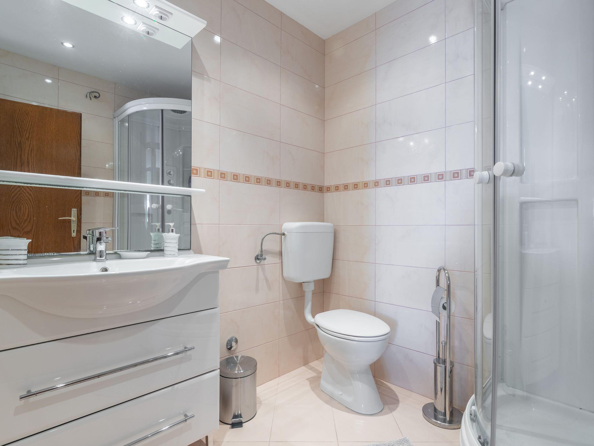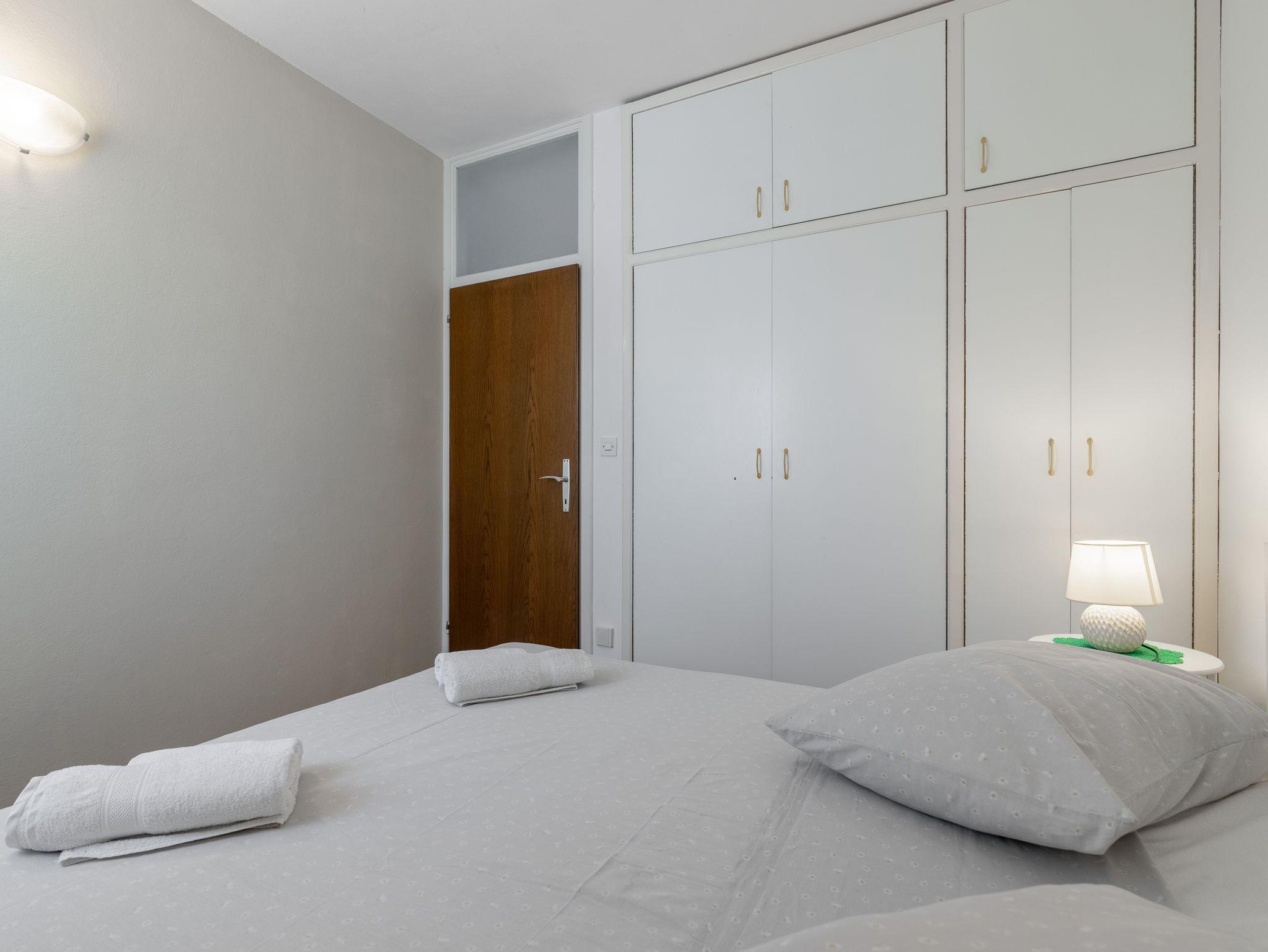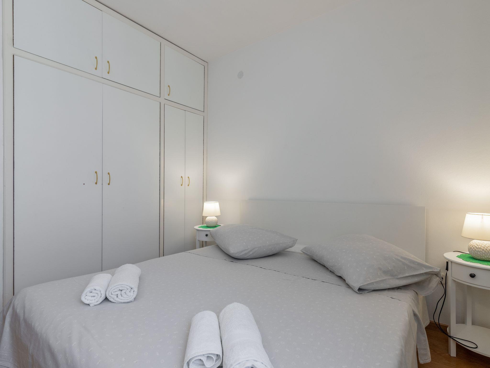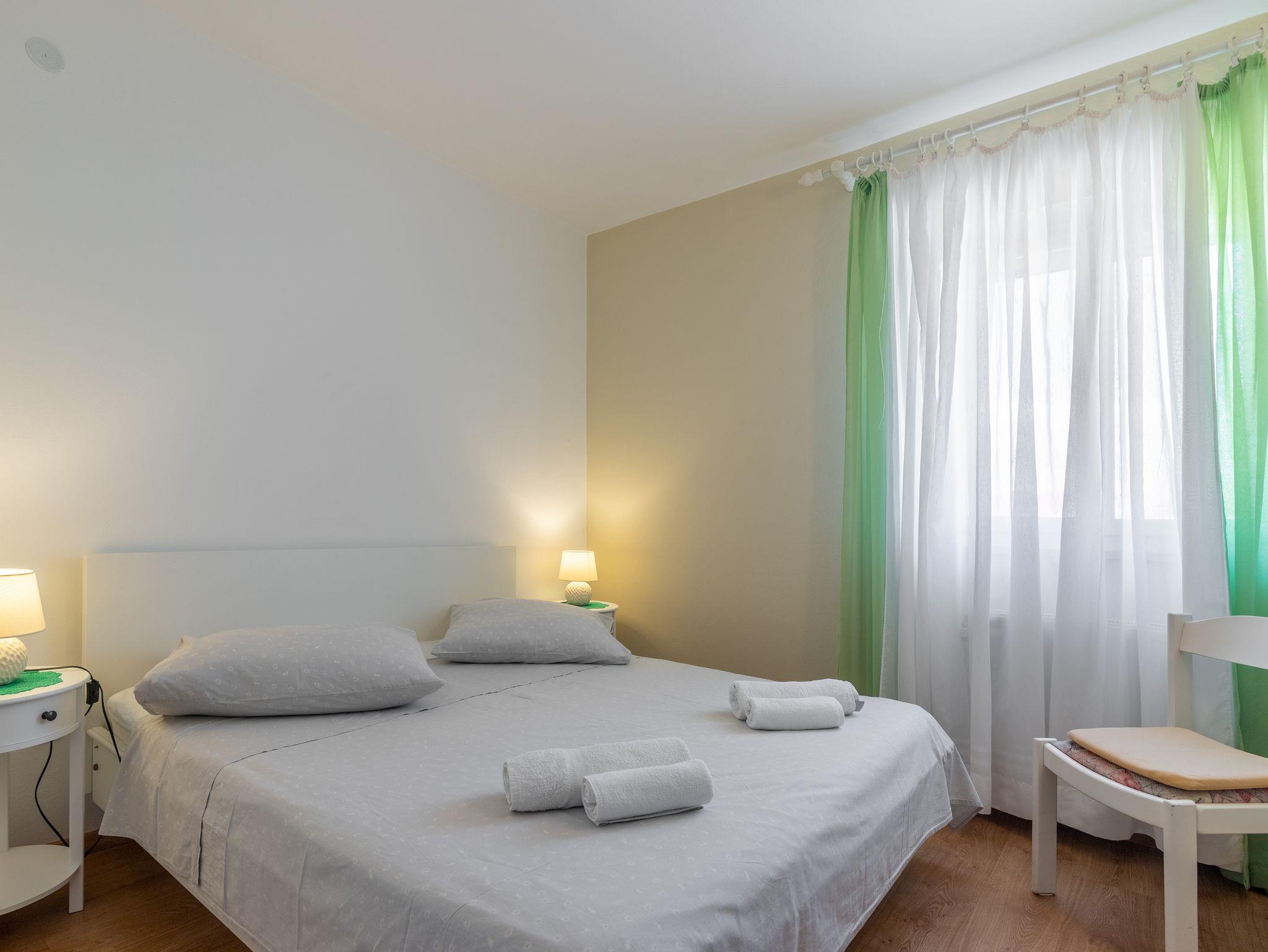 Ferienwohnung bietet Platz für 5 Gäste. Die Betten sind in Schlafzimmern, die es 2 gibt, und in Wohnzimmer, innerhalb einer Gesamtfläche von 40m2, angeordnet. Die Gäste haben eine eigene Terrasse zur Verfügung, auf der sie in warmen Sommernächten genießen können. Das Apartment bietet Meerblick. Es ist erlaubt, Speisen auf dem Gemeinschafts-Grill vorzubereiten. IM PREIS INBEGRIFFEN: Kurtaxe, Endreinigung, Klimatisierung, Zentralheizung, Parkplatz, Garage, Internet, Bootsanlegeplatz, Bügeleisen, Bügelbrett, Föhn, Sonnenschirm, Liegestühle. UNVERBINDLICHE ZUSÄTZLICHE KOSTEN: Wäschewaschen (3,00 € Waschen). Die Verfügbarkeit zusätzlicher Dienstleistungen in Ihrem reservierten Termin und die Preise derselben (falls nicht aufgeführt) müssen im Voraus überprüft werden. Zusätzliche Dienstleistungen die in der Zahlungsaufforderung nicht aufgeführt sind werden direkt beim Vermieter bezahlt, angenommen der Gast nutzt auch diese.