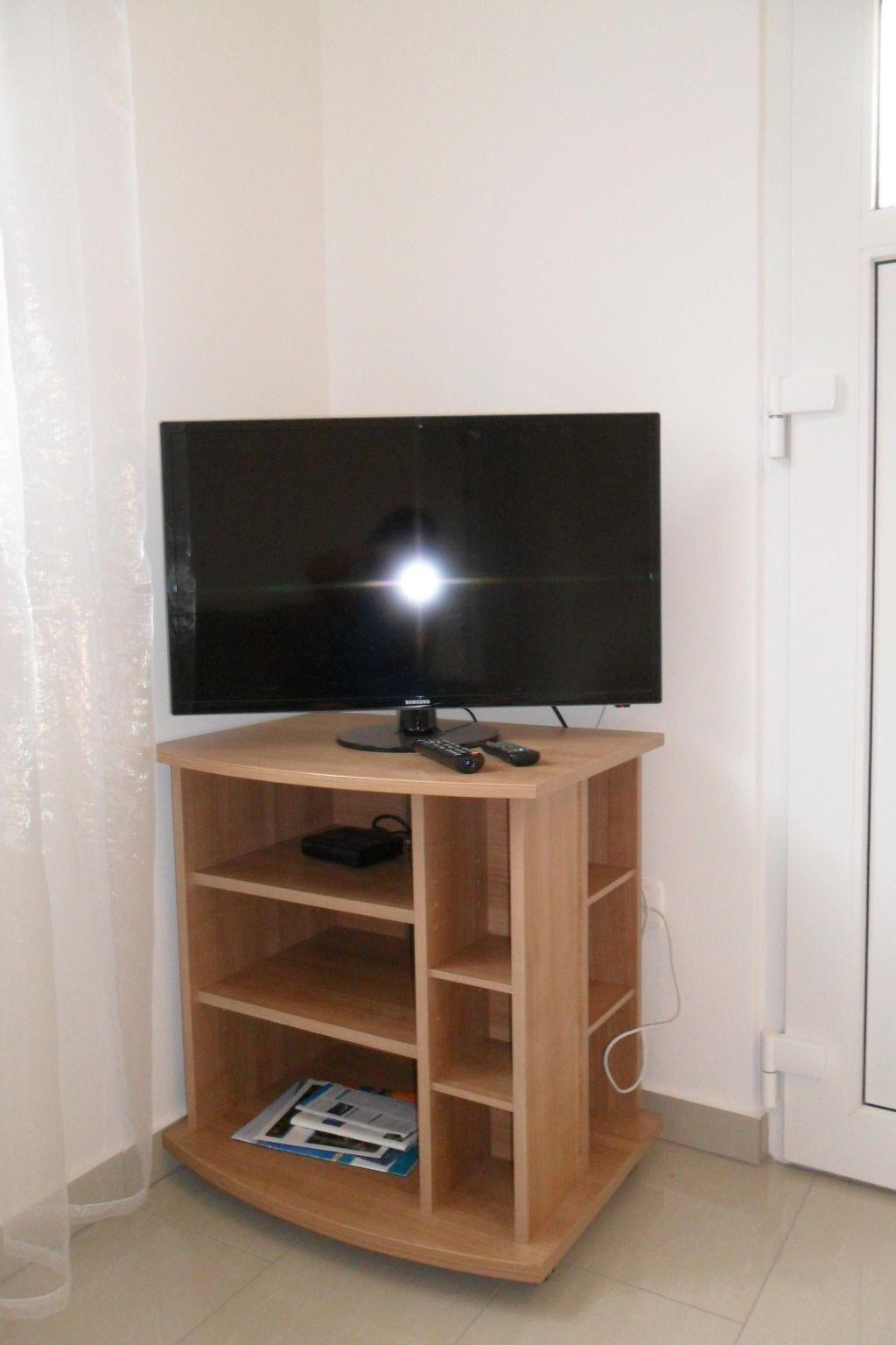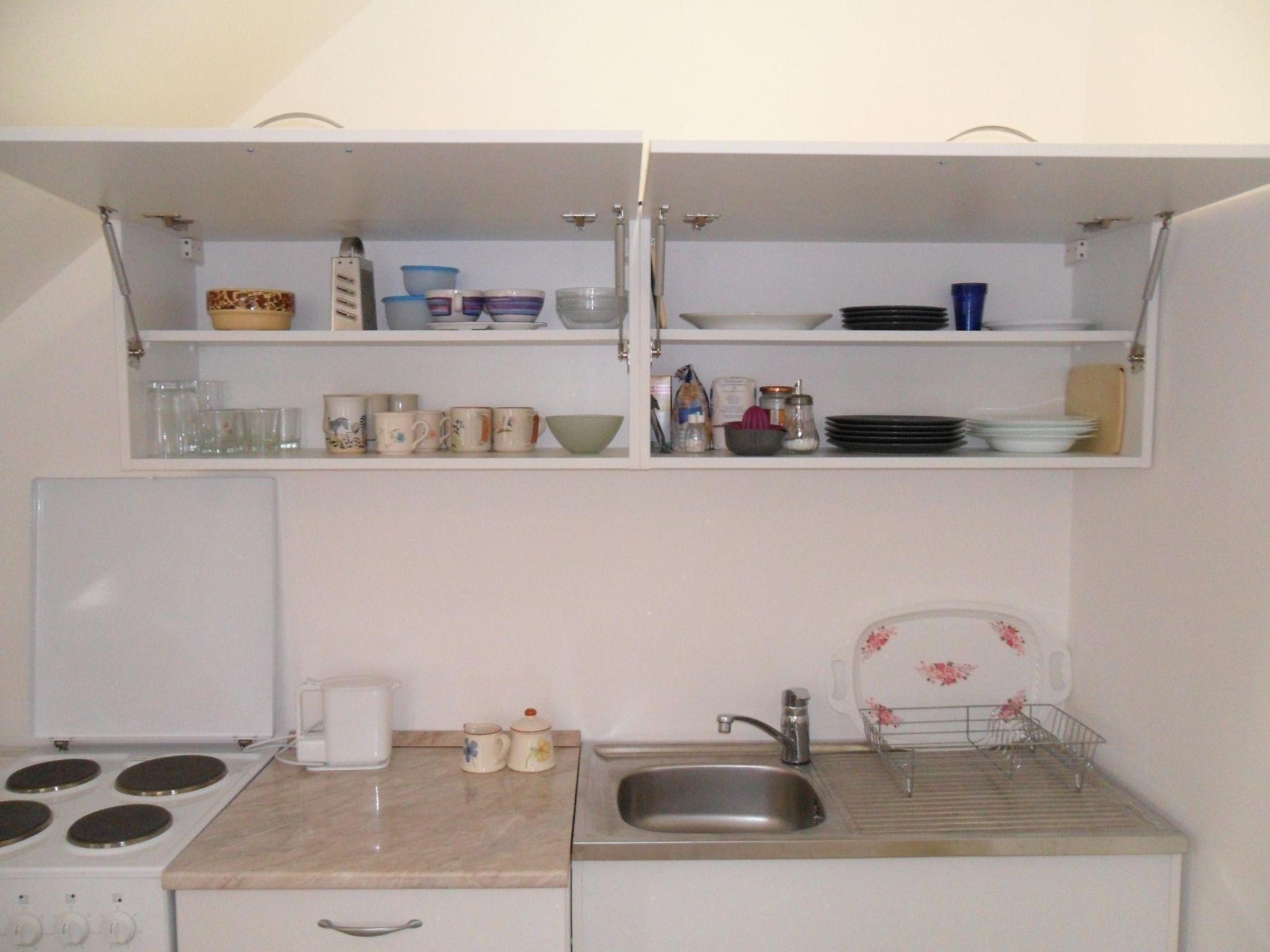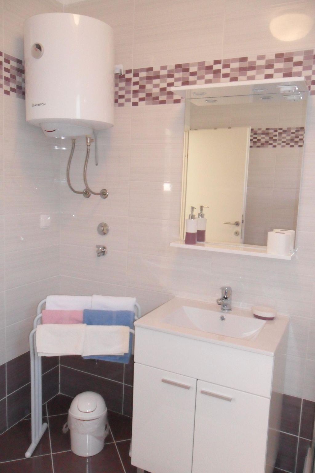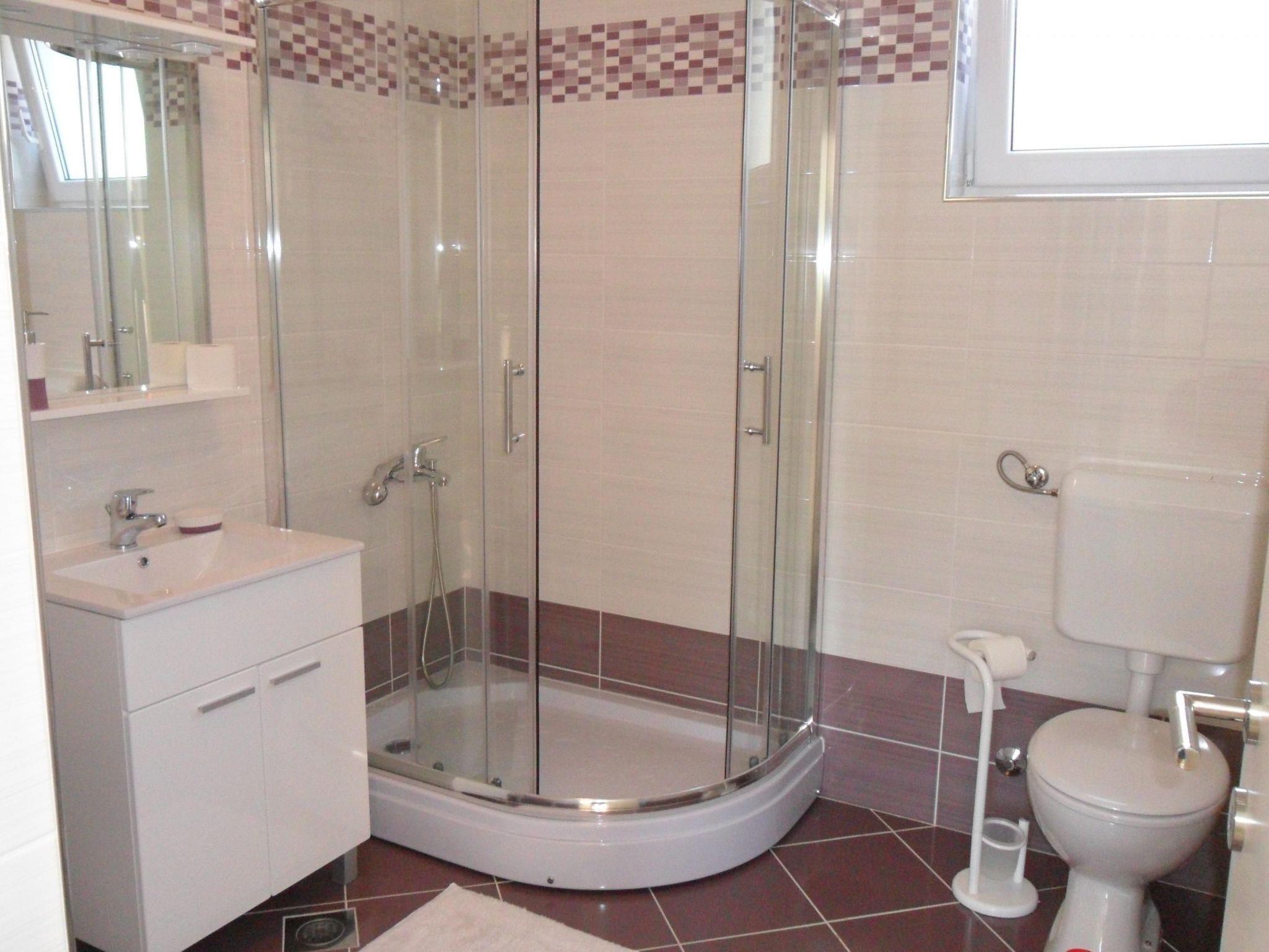 This 40m² quiet and cool apartment is on the ground floor. It was renovated in 2013, has a separate entrance and is suitable for two to three people, ideal for two adults with one or two small children or three adults. The apartment has a bedroom, a spacious living room with air conditioning, a well-equipped little kitchen and a bathroom. The bedroom is furnished with a double bed (160 x 200cm). Another adult or child can sleep on the sofa bed (130 x 200cm) in the living room, which invites you to relax during the day. There are also a dining space and a kitchen corner behind the dining space, equipped with a stove, oven, fridge, coffee machine, toaster, kettle, crockery and cutlery. The modern, tiled daylight bathroom has a shower, WC and a washbasin with a cupboard underneath and a mirror.