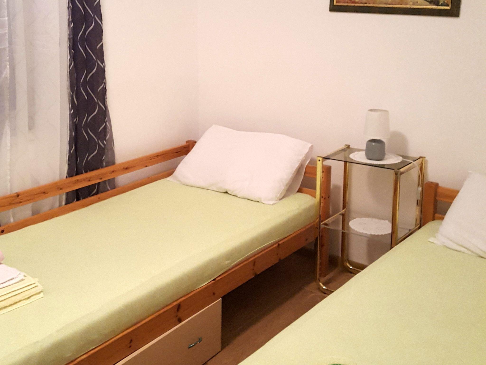 Ferienwohnung bietet Platz für 6 Gäste. Die Betten sind in Schlafzimmern, die es 2 gibt, und in Wohnzimmer, innerhalb einer Gesamtfläche von 80m2, angeordnet. Die Gäste haben eine eigene Terrasse zur Verfügung, auf der sie in warmen Sommernächten genießen können. Das Apartment bietet Meerblick. Für vollen Genuss und Entspannung gibt es einen privaten Grill für Gäste dieser Unterkunft. IM PREIS INBEGRIFFEN: Kurtaxe, Endreinigung, Klimatisierung, Parkplatz, Internet, Bügeleisen, Bügelbrett, Föhn. Die Verfügbarkeit zusätzlicher Dienstleistungen in Ihrem reservierten Termin und die Preise derselben (falls nicht aufgeführt) müssen im Voraus überprüft werden. Zusätzliche Dienstleistungen die in der Zahlungsaufforderung nicht aufgeführt sind werden direkt beim Vermieter bezahlt, angenommen der Gast nutzt auch diese. Ermäßigung auf den Grundpreis: Gratistag 14=13 (bei einem Aufenthalt von 14 Tagen oder mehr erhalten Sie einen Gratistag für den Aufenthalt bis 31.12.26).