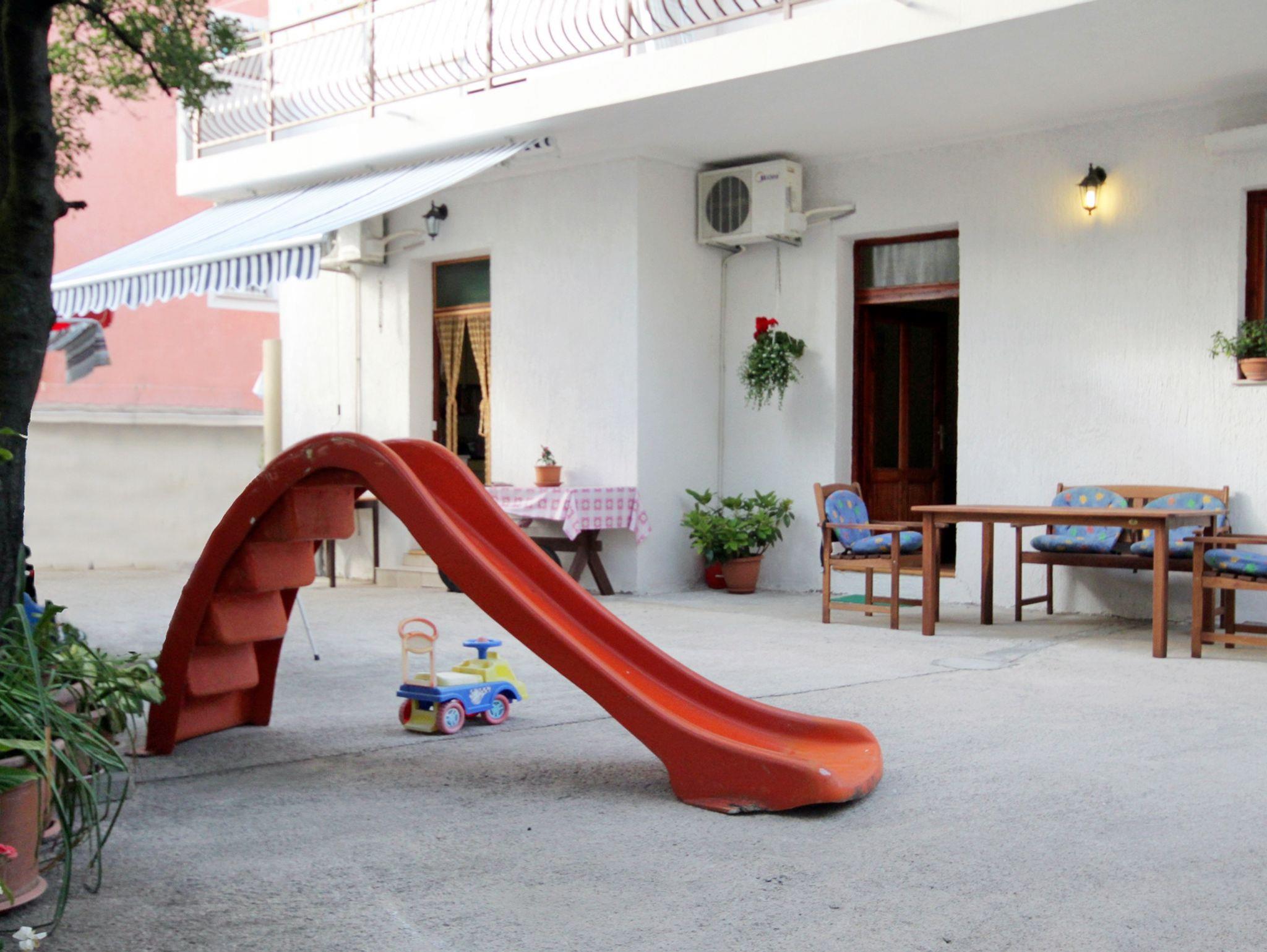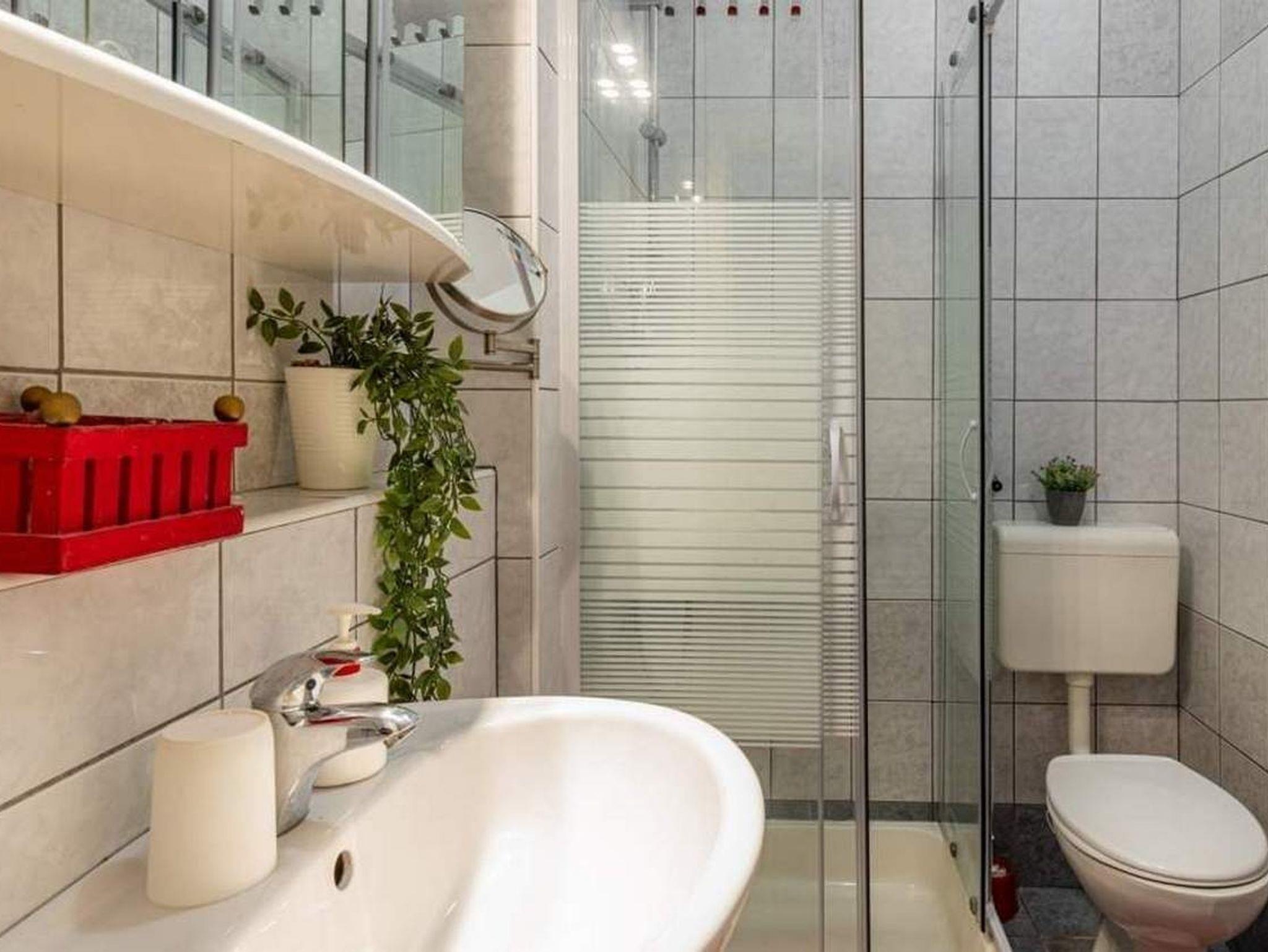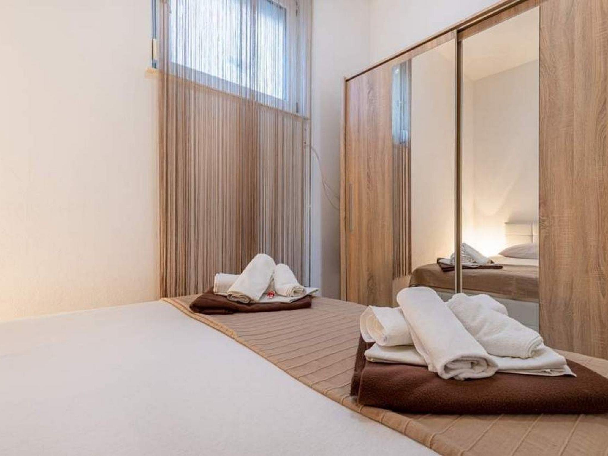 Ferienwohnung bietet Platz für 3 Gäste. Die Betten sind in Schlafzimmern, die es 1 gibt, und in Wohnzimmer, innerhalb einer Gesamtfläche von 30m2, angeordnet. Die Gäste haben eine eigene Terrasse zur Verfügung, auf der sie in warmen Sommernächten genießen können. Es ist erlaubt, Speisen auf dem Gemeinschafts-Grill vorzubereiten. IM PREIS INBEGRIFFEN: Kurtaxe, Endreinigung, Parkplatz, Internet, Kinderbett, Bügeleisen, Bügelbrett, Föhn, tragbarer Grill. VERBINDLICHE ZUSÄTZLICHE KOSTEN: Aufzahlung für Kurzaufenthalte (prozentualer Zuschlag pro Nächtigungsanzahl: 30% - 1, 20% - 2, 10% - 3). UNVERBINDLICHE ZUSÄTZLICHE KOSTEN: Klimatisierung (5,00 € pro Nacht), Zentralheizung (5,00 € pro Nacht). Die Verfügbarkeit zusätzlicher Dienstleistungen in Ihrem reservierten Termin und die Preise derselben (falls nicht aufgeführt) müssen im Voraus überprüft werden. Zusätzliche Dienstleistungen die in der Zahlungsaufforderung nicht aufgeführt sind werden direkt beim Vermieter bezahlt, angenommen der Gast nutzt auch diese.