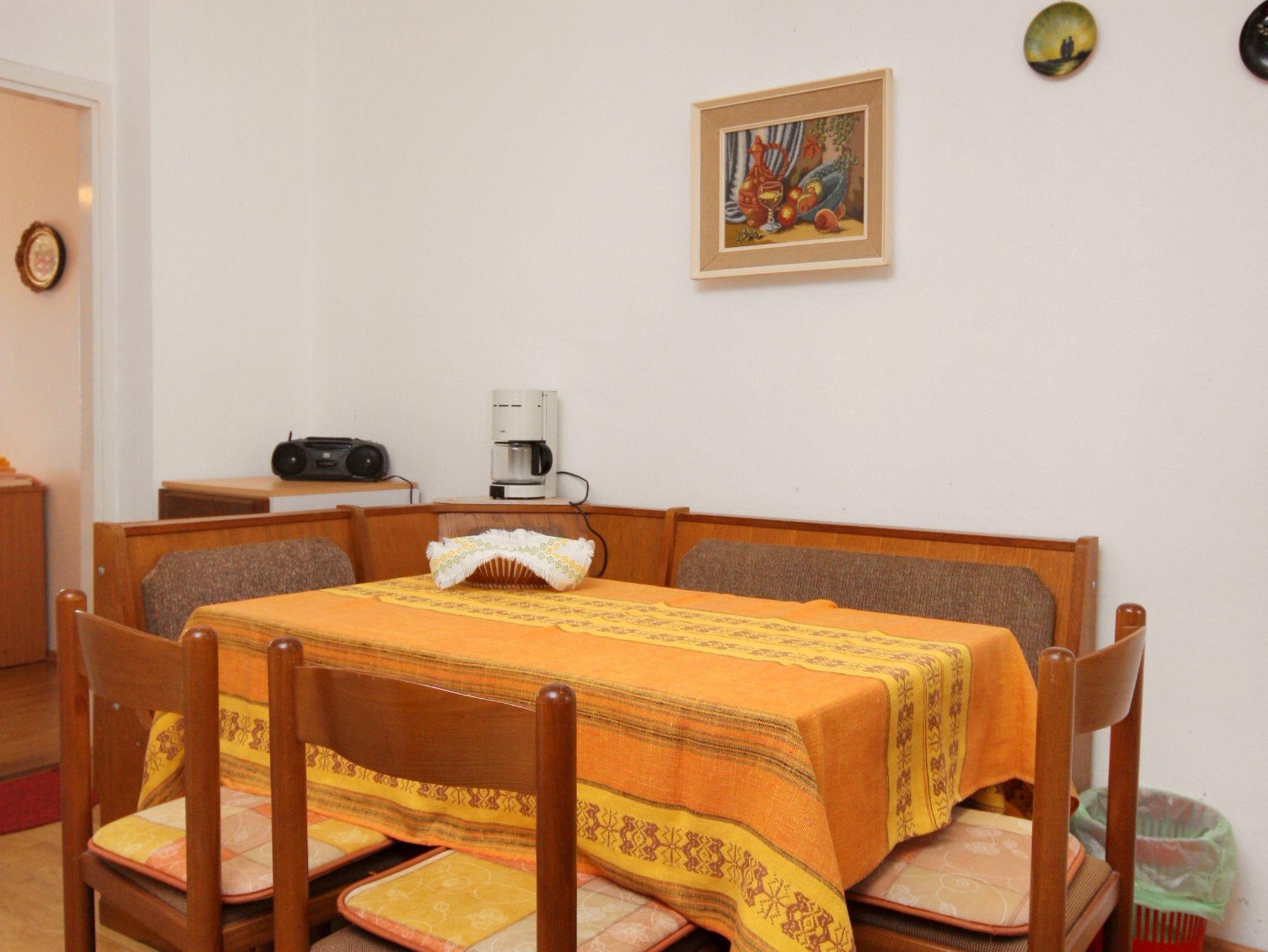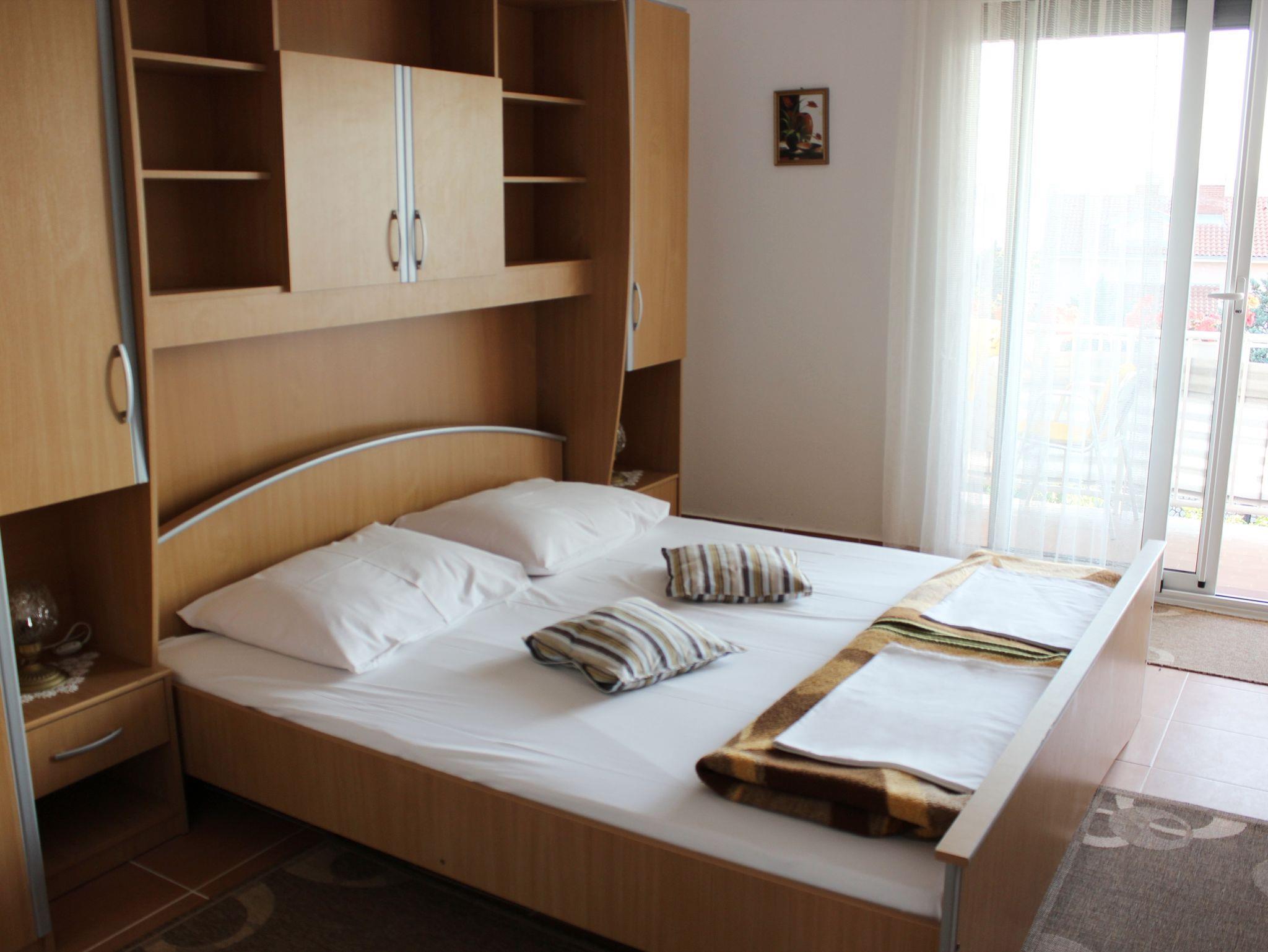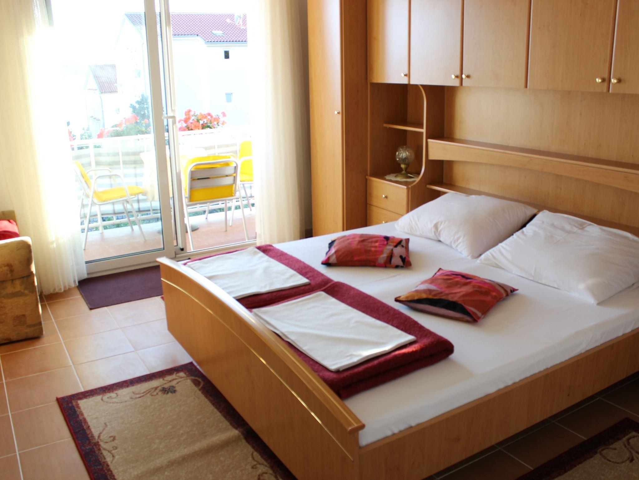 Ferienwohnung bietet Platz für 5 Gäste. Die Betten sind in Schlafzimmern, die es 2 gibt, und in Wohnzimmer, innerhalb einer Gesamtfläche von 62m2, angeordnet. Die Gäste haben einen eigenen Balkon zur Verfügung, auf der sie in warmen Sommernächten genießen können. Das Apartment bietet Meerblick. Es ist erlaubt, Speisen auf dem Gemeinschafts-Grill vorzubereiten. IM PREIS INBEGRIFFEN: Kurtaxe, Endreinigung, Klimatisierung, Parkplatz, Internet, Fahrrad, Kinderbett, Bügeleisen, Bügelbrett, Föhn. VERBINDLICHE ZUSÄTZLICHE KOSTEN: Aufzahlung für Kurzaufenthalte (prozentualer Zuschlag pro Nächtigungsanzahl: 30% - 1, 20% - 2, 10% - 3). Die Verfügbarkeit zusätzlicher Dienstleistungen in Ihrem reservierten Termin und die Preise derselben (falls nicht aufgeführt) müssen im Voraus überprüft werden. Zusätzliche Dienstleistungen die in der Zahlungsaufforderung nicht aufgeführt sind werden direkt beim Vermieter bezahlt, angenommen der Gast nutzt auch diese. Ermäßigung auf den Grundpreis: Gratistag 28=25 (bei einem Aufenthalt von 28 oder mehr Tagen erhalten Sie 3 kostenlose Tage für den Aufenthalt bis 31.12.26).