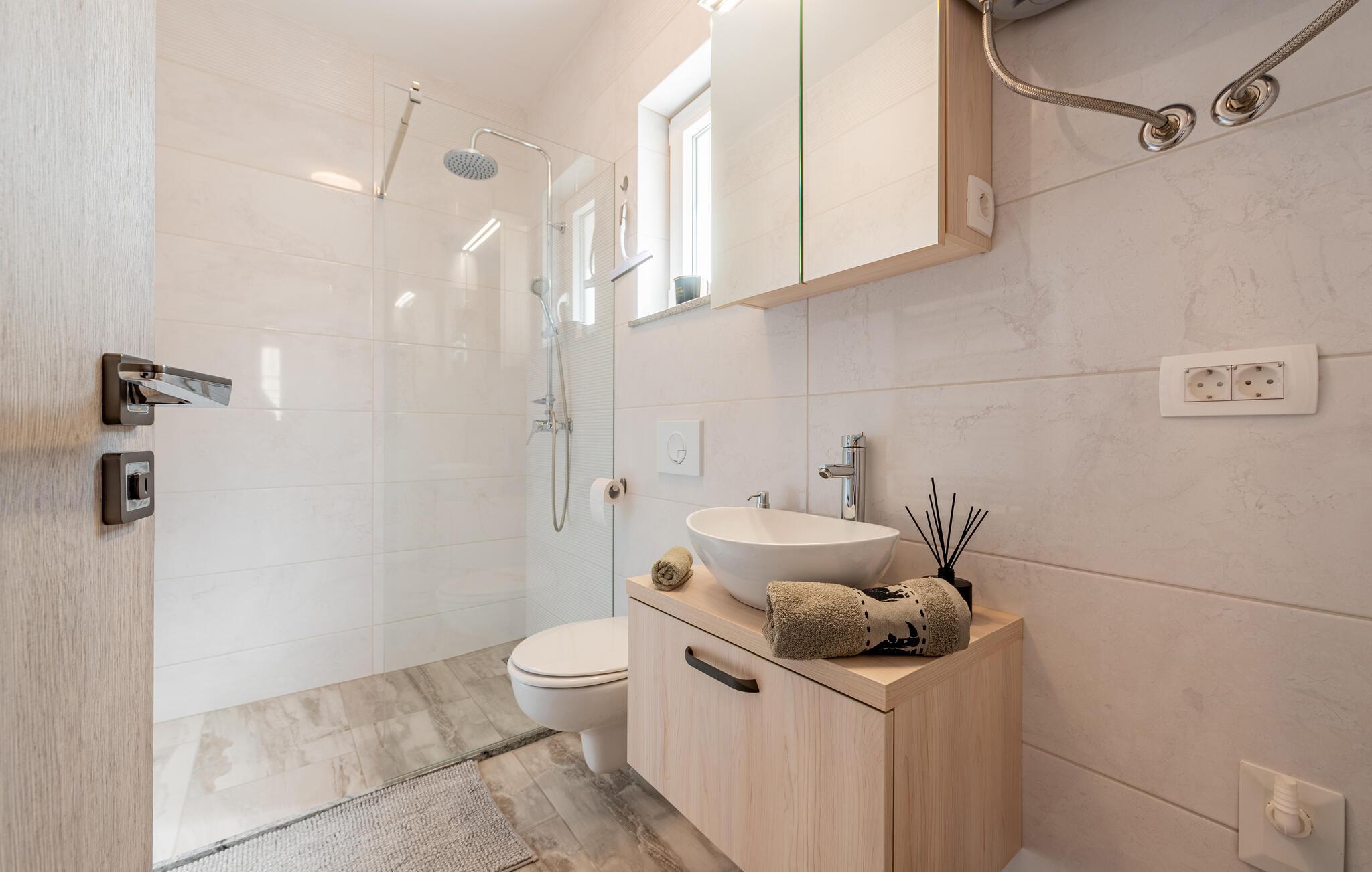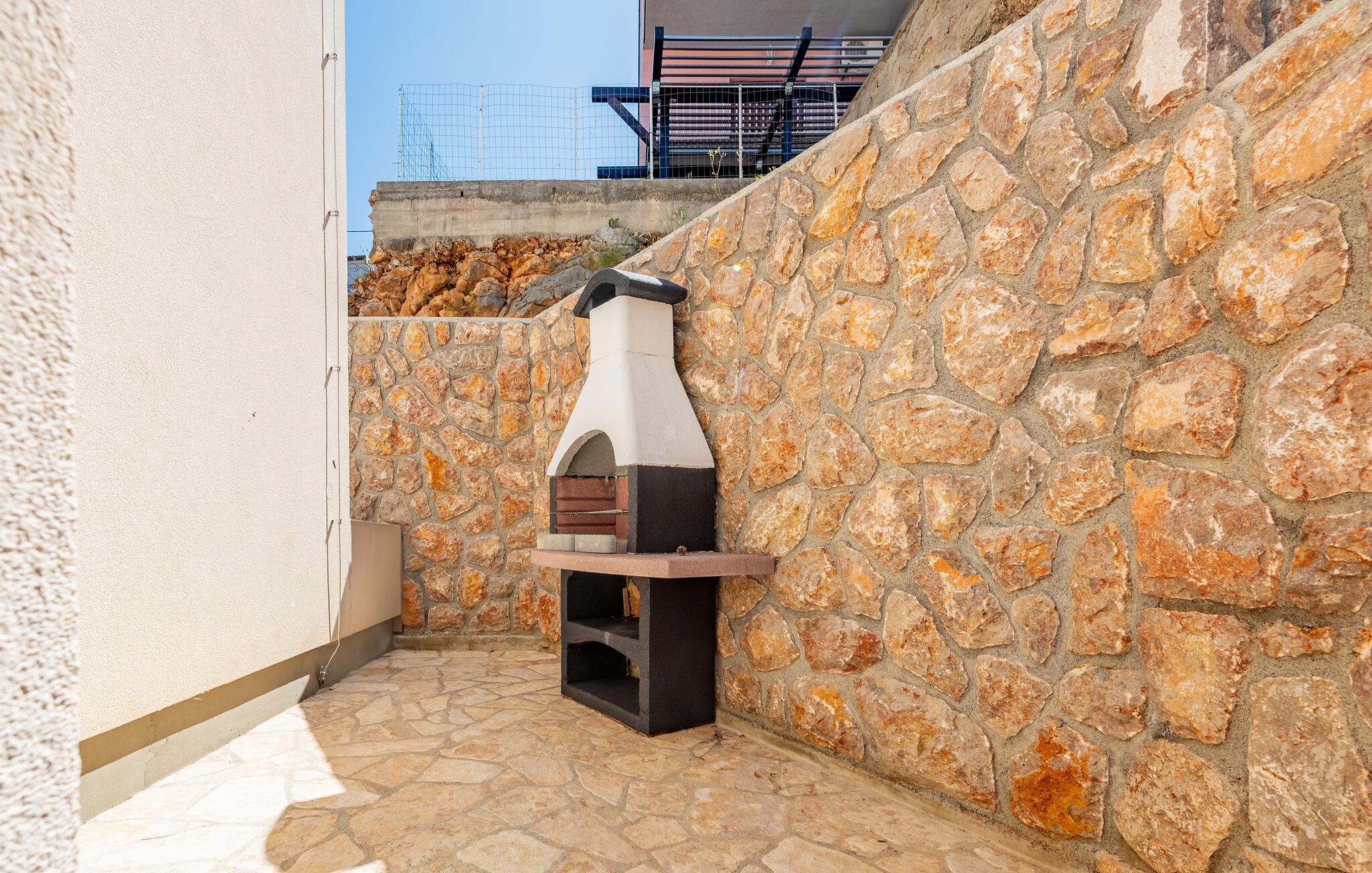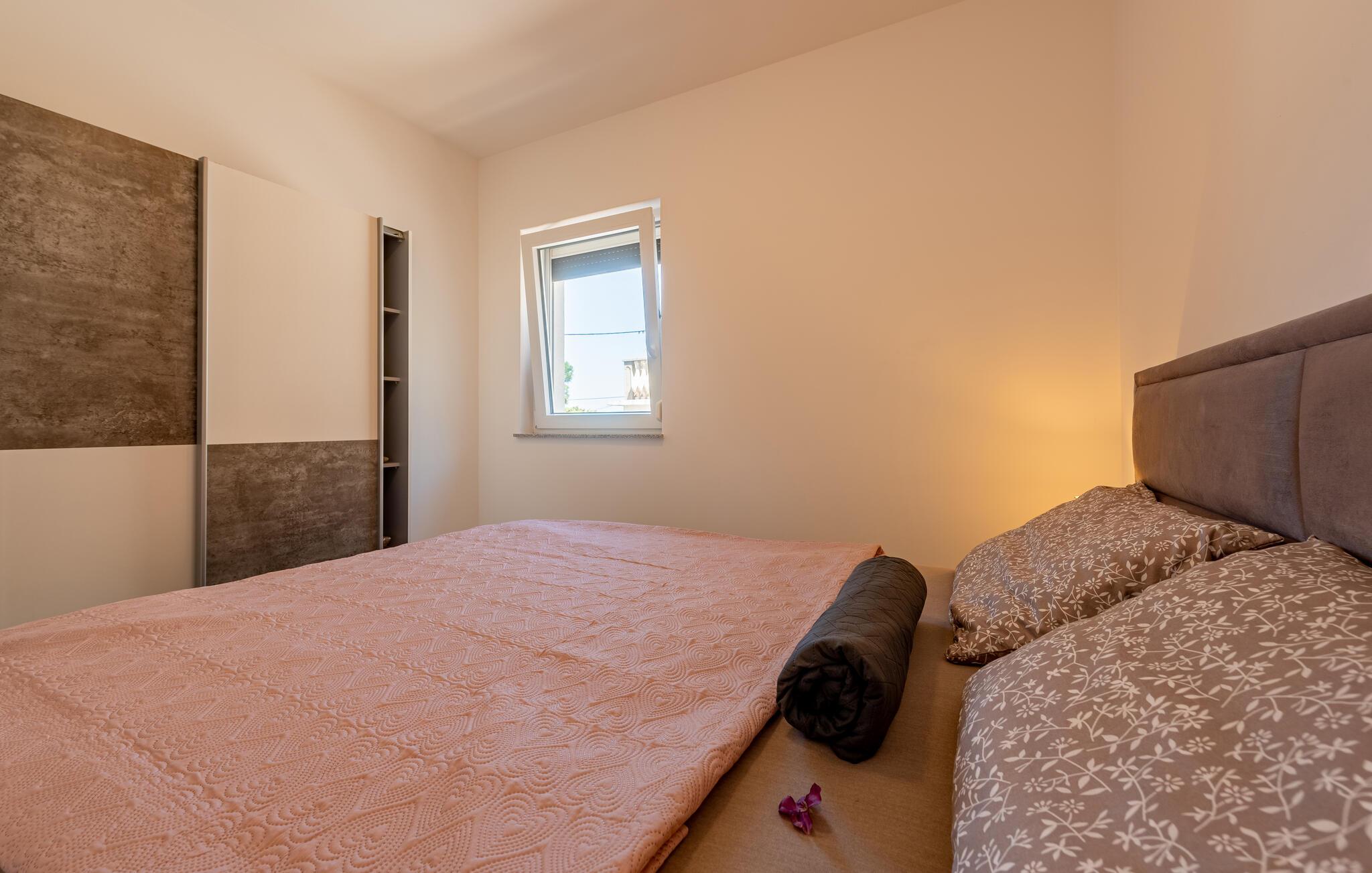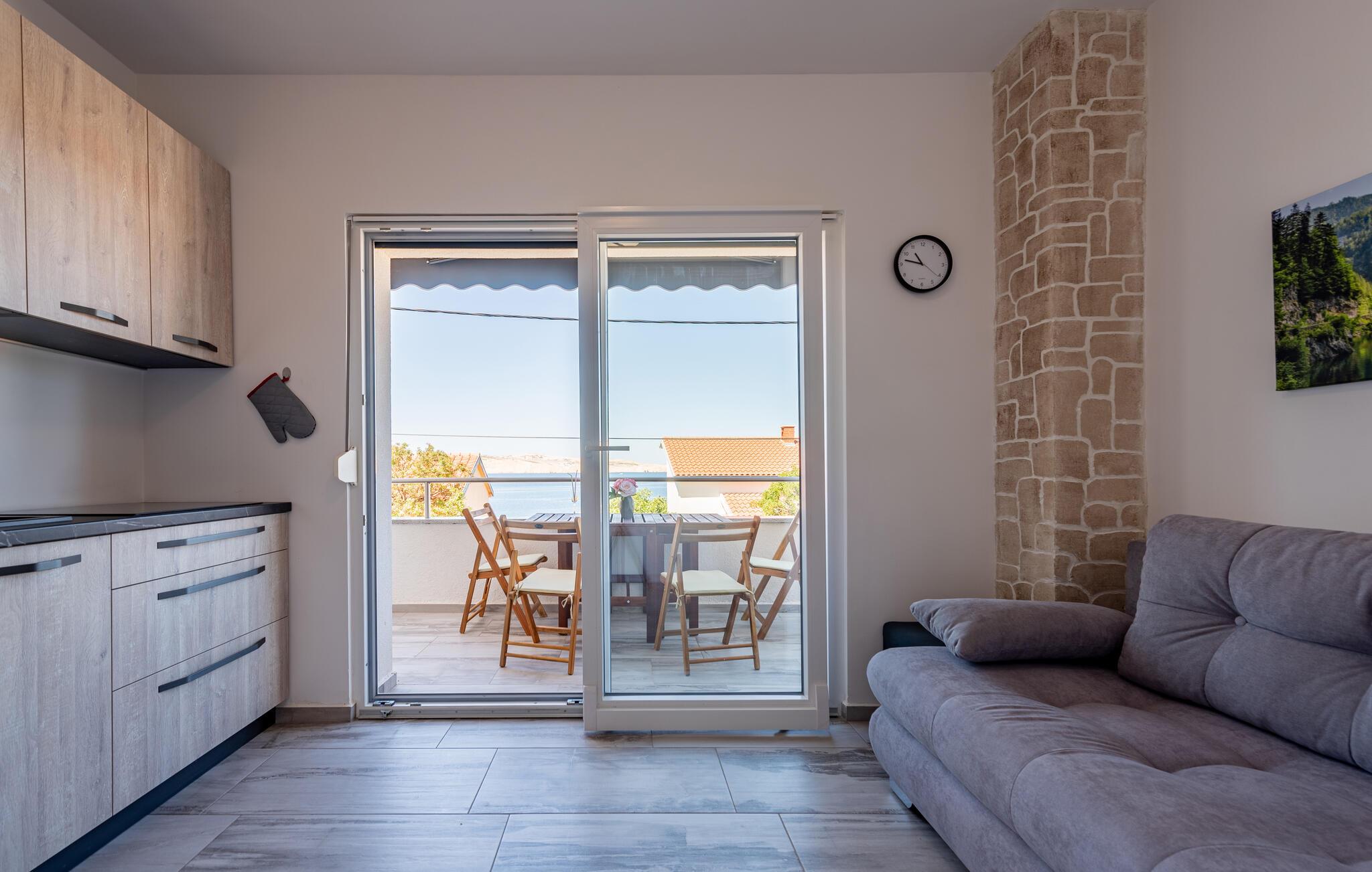 Denne koselige ferieleiligheten i Prizna ønsker deg velkommen med god utsikt over havet og øya Pag.