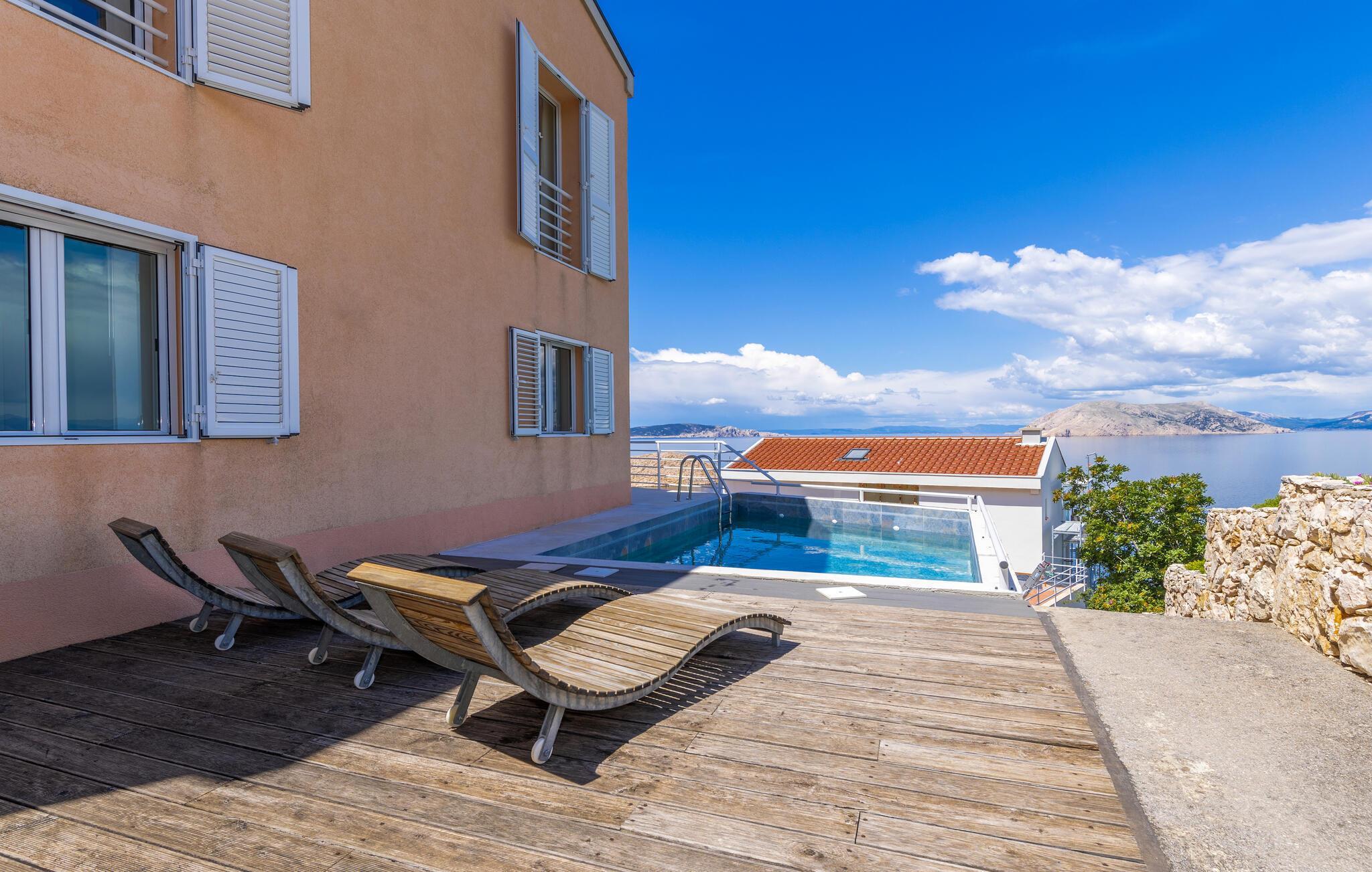 Gled deg til en herlig ferie i denne moderne ferieleiligheten med basseng og sjøutsikt.