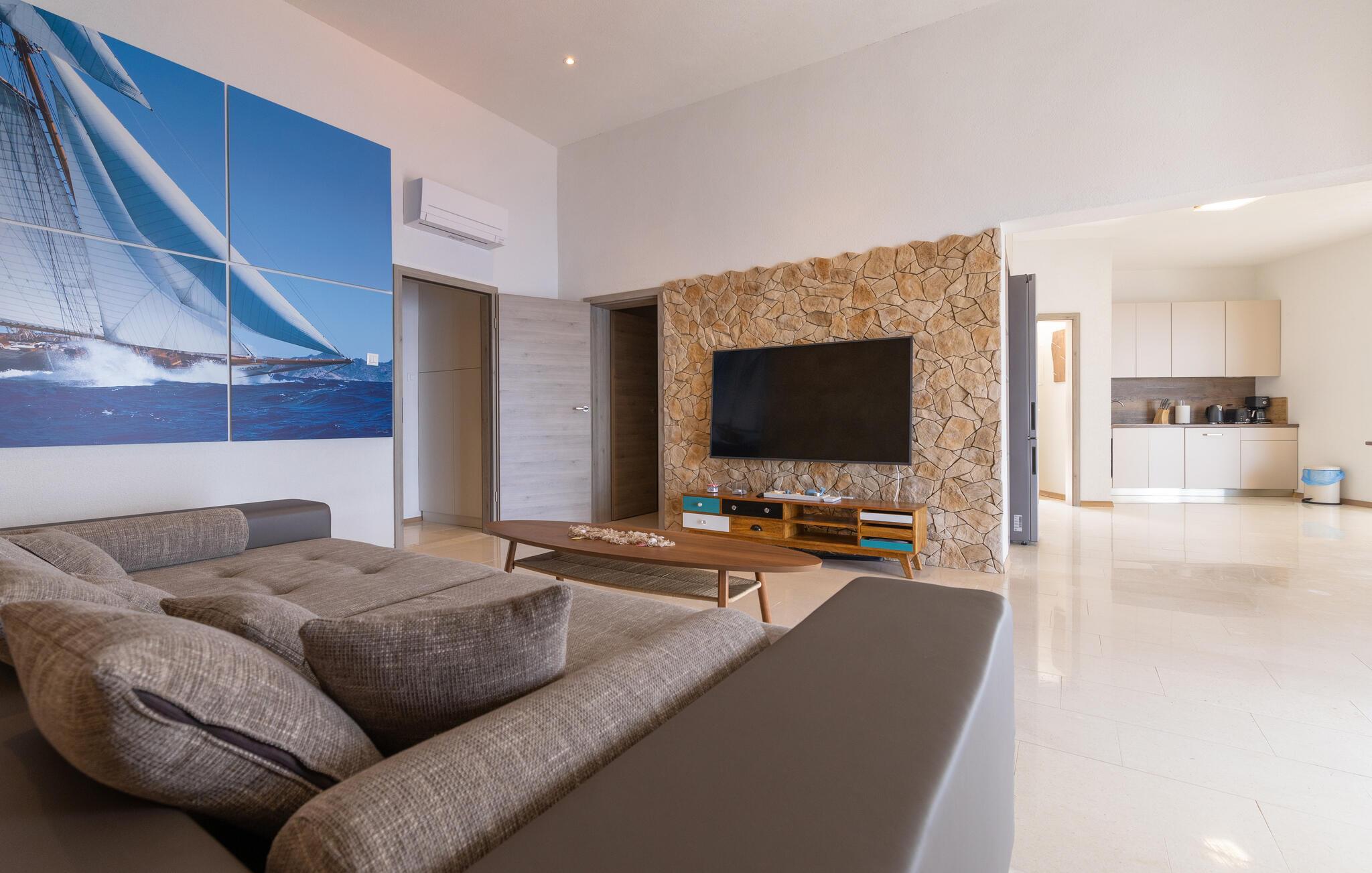 Denne innbydende leiligheten ligger bare noen få skritt fra stranden, og tilbyr en herlig ramme for en pause fra hverdagen. En fantastisk havutsikt fra stuen og kjøkkenet samt den moderne designen gir rommene sin sjarm. Gled deg til koselige kvelder etter eventyrene dine, og sofaen innbyr til lange samtaler om kvelden.