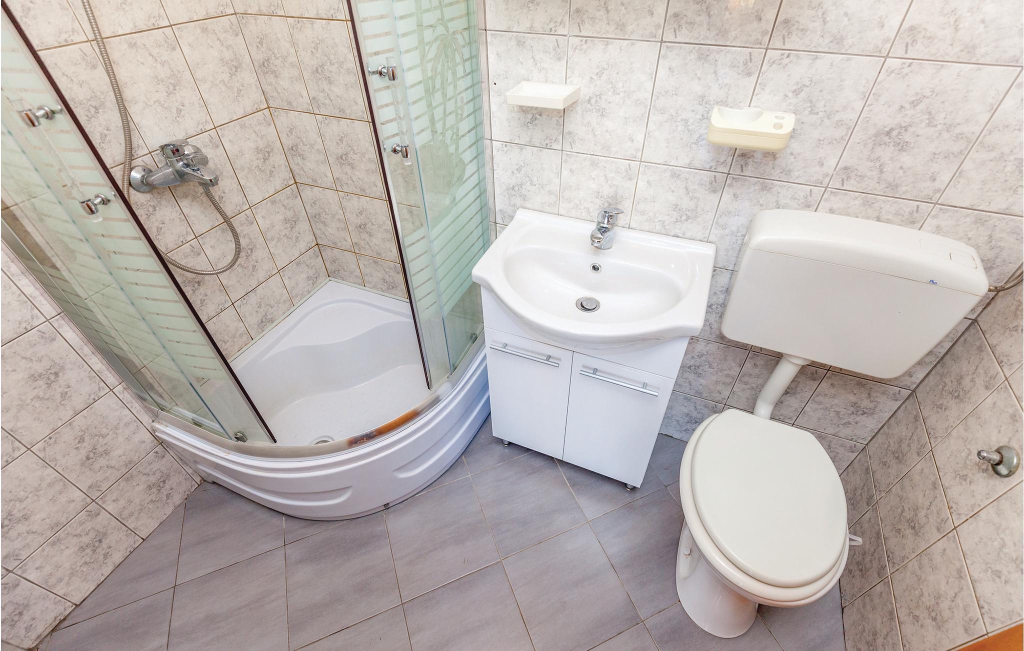 - WC med varmt og kaldt vann, Dusj