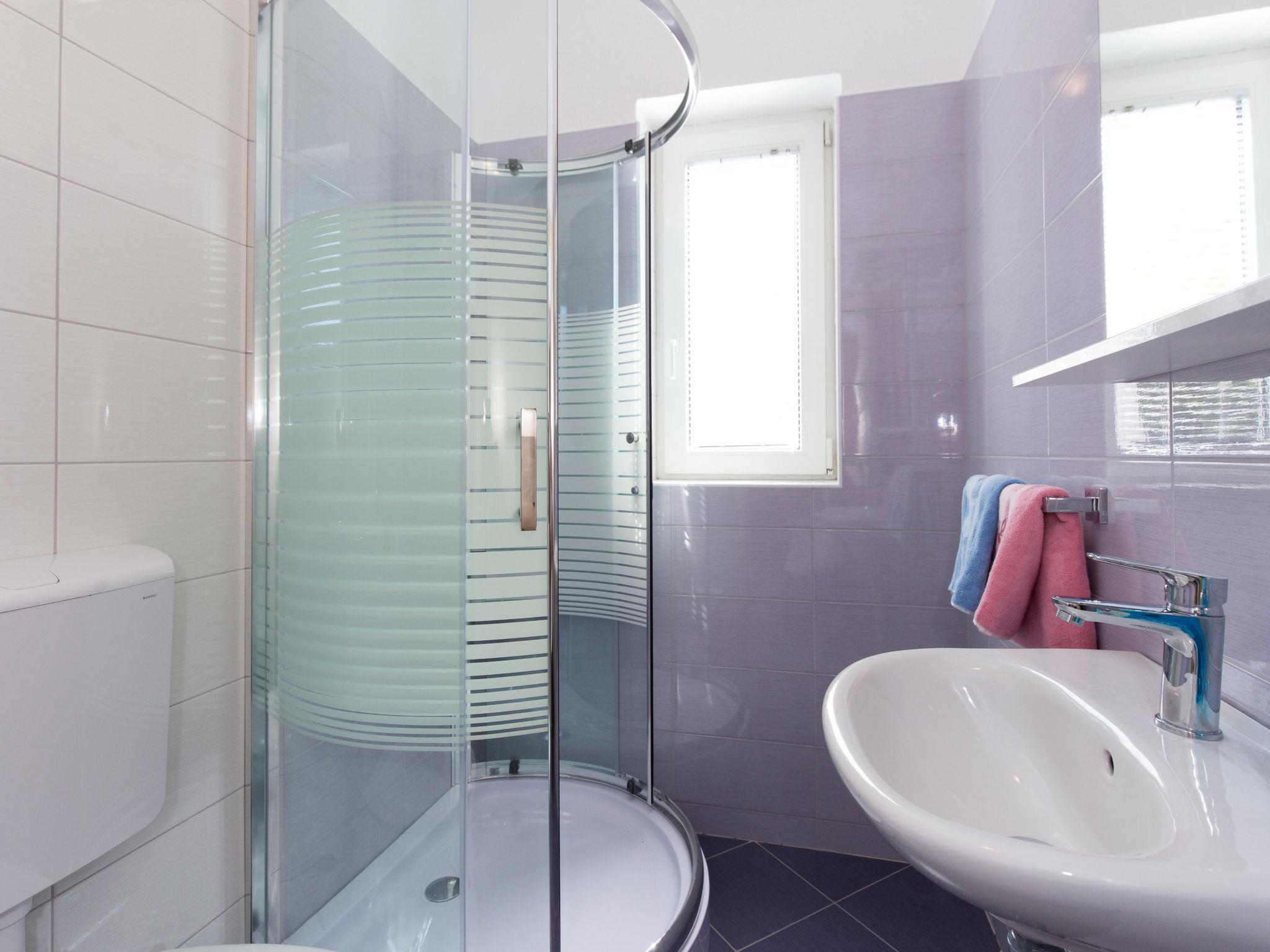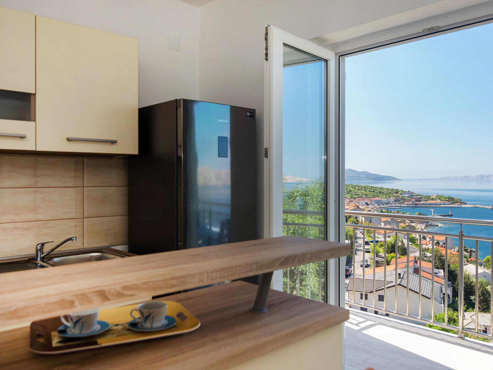 "Suzana", 2-room apartment 55 m2 on 1st floor. Living/dining room with 1 sofabed and satellite TV (flat screen), air conditioning. Exit to the balcony. 1 room with 1 double bed. Open kitchen (oven, 4 ceramic glass hob hotplates, toaster, kettle, freezer, electric coffee machine). Shower/WC. Air-conditioning (extra). No heating option. Balcony. Balcony furniture. Beautiful view of the sea. Facilities: iron. Internet (WiFi, free). Please note: non-smokers only. Max. occupancy: 2 adults, 1 child up to 18 years old.