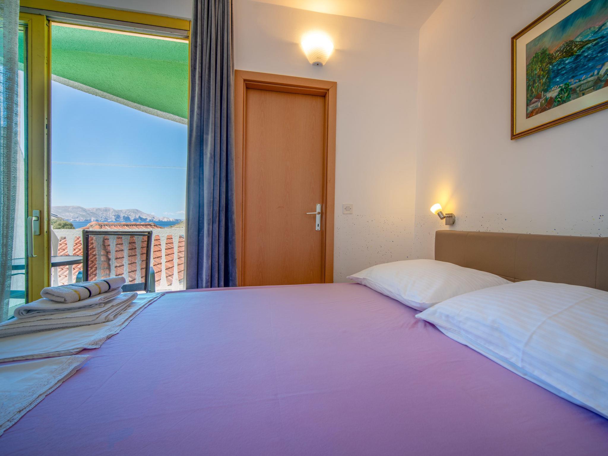 8-room house 170 m2 on 3 levels. Living/dining room with satellite TV and air conditioning. Exit to the terrace. 1 room with 1 bed (90 cm, length 200 cm), 1 double bed (2 x 90 cm, length 200 cm). 1 room with 1 french bed (160 cm, length 200 cm). Kitchen (oven, dishwasher, 4 induction hot plates, toaster, kettle, microwave, electric coffee machine). Shower/WC. Upper floor: (exterior staircase) living/dining room with satellite TV. 1 room with 2 beds (90 cm, length 200 cm), shower/WC. 2 rooms, each room with 1 french bed (160 cm, length 200 cm), shower/WC and air conditioning. Exit to the balcony. Open kitchen (oven, dishwasher, 4 induction hot plates, toaster, kettle, microwave, electric coffee machine) with dining table. Shower/WC. 2nd upper floor: (steep stair), 1 room with sloping ceilings with 1 french bed (160 cm, length 200 cm), separate WC and air conditioning. No heating option. 4 balconies 5 m2, terrace 15 m2. Terrace furniture, balcony furniture, deck chairs. View of the sea. Facilities: Internet (WiFi, free). Maximum 1 small pet/ dog allowed.