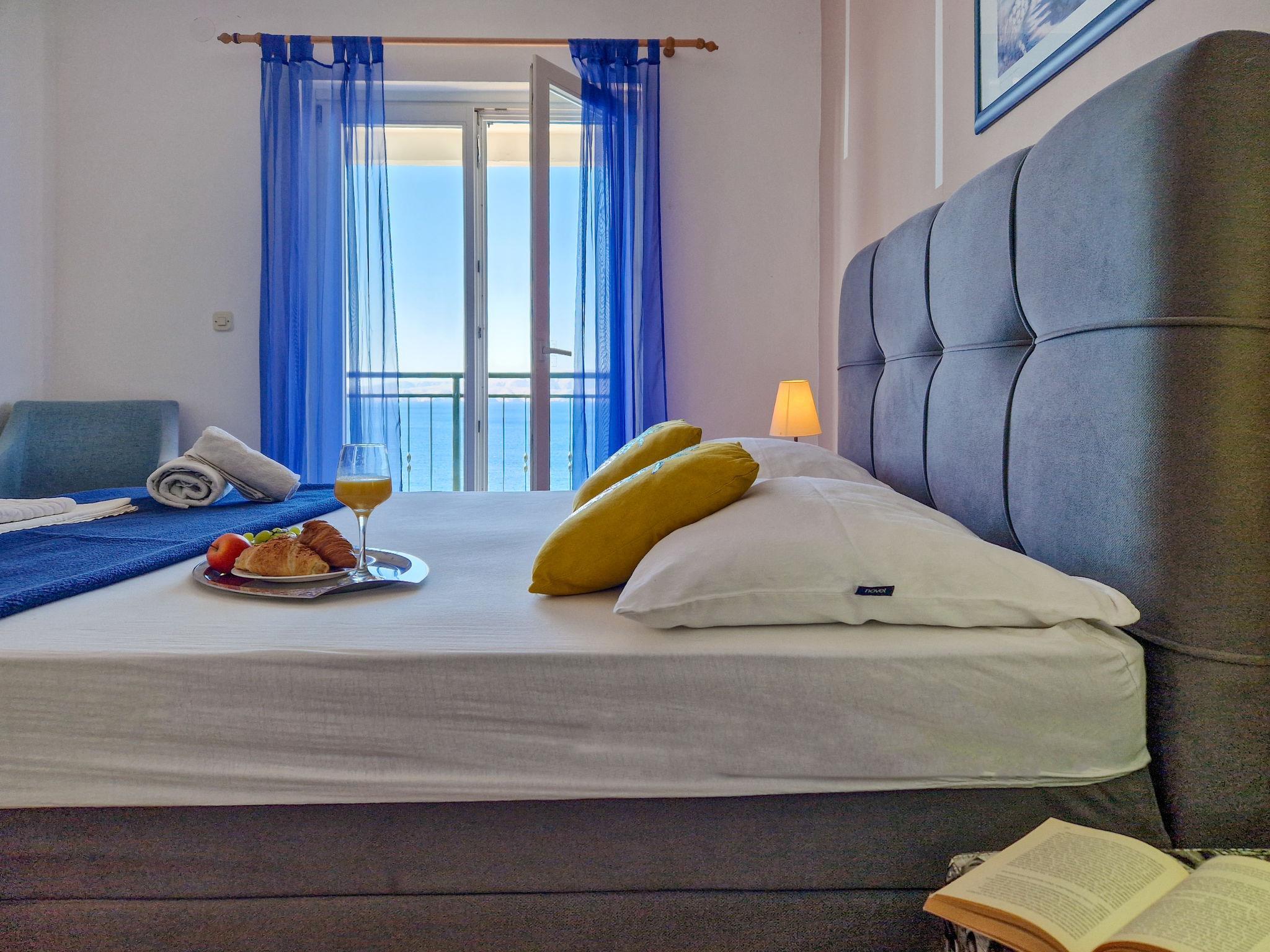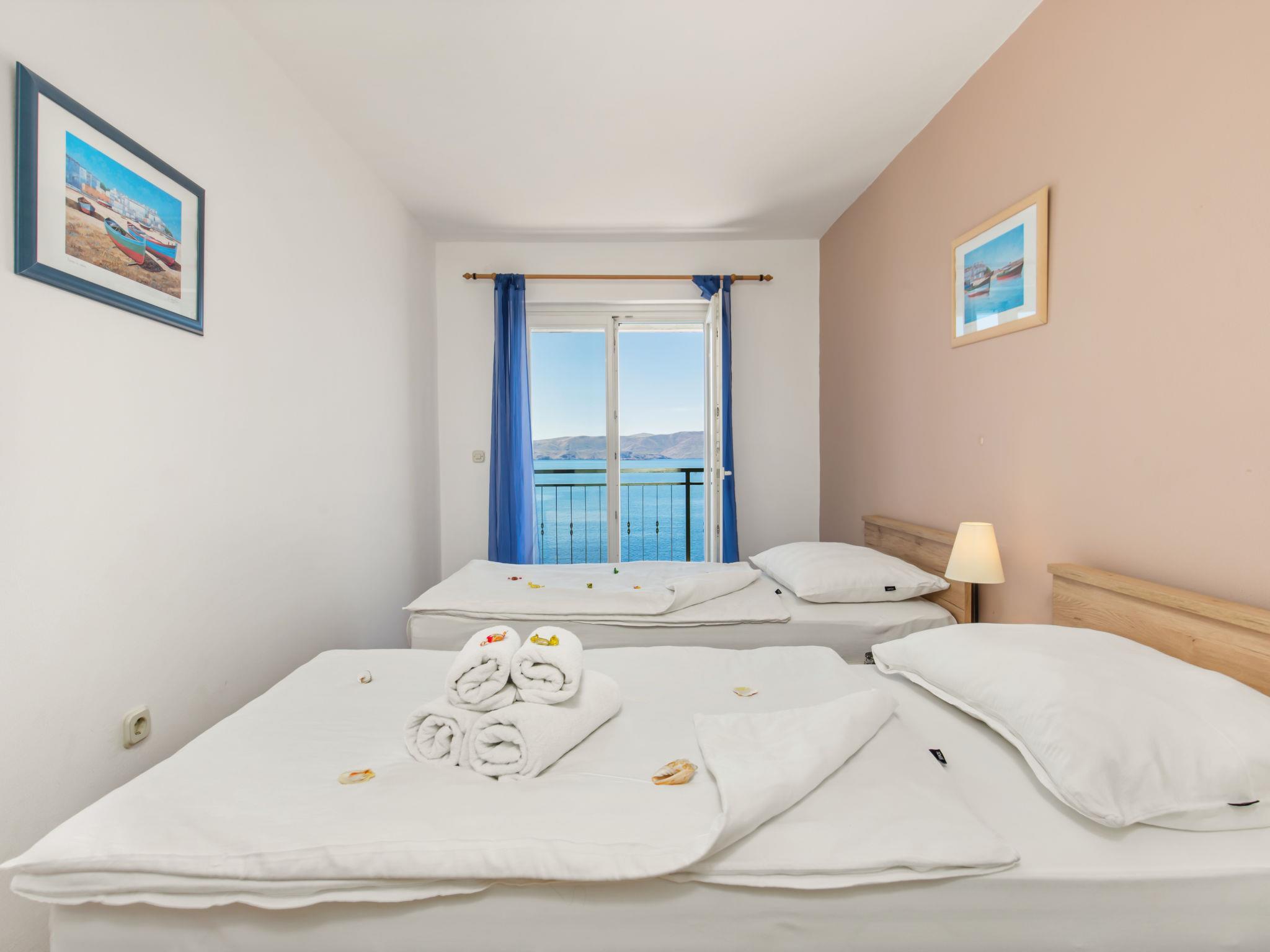 "Marina", 2-room apartment 42 m2 on 1st floor. 1 room with 2 beds (90 cm, length 200 cm). Exit to the balcony. 1 room with 1 french bed (160 cm, length 200 cm). Exit to the balcony. Kitchen-/living room (2 hot plates, toaster, microwave, freezer, electric coffee machine) with dining table, satellite TV and air conditioning. Shower/WC. No heating option. Balcony. Balcony furniture. View of the sea. Facilities: Internet (WiFi, free). Please note: non-smoking house. Maximum 1 pet/ dog allowed.