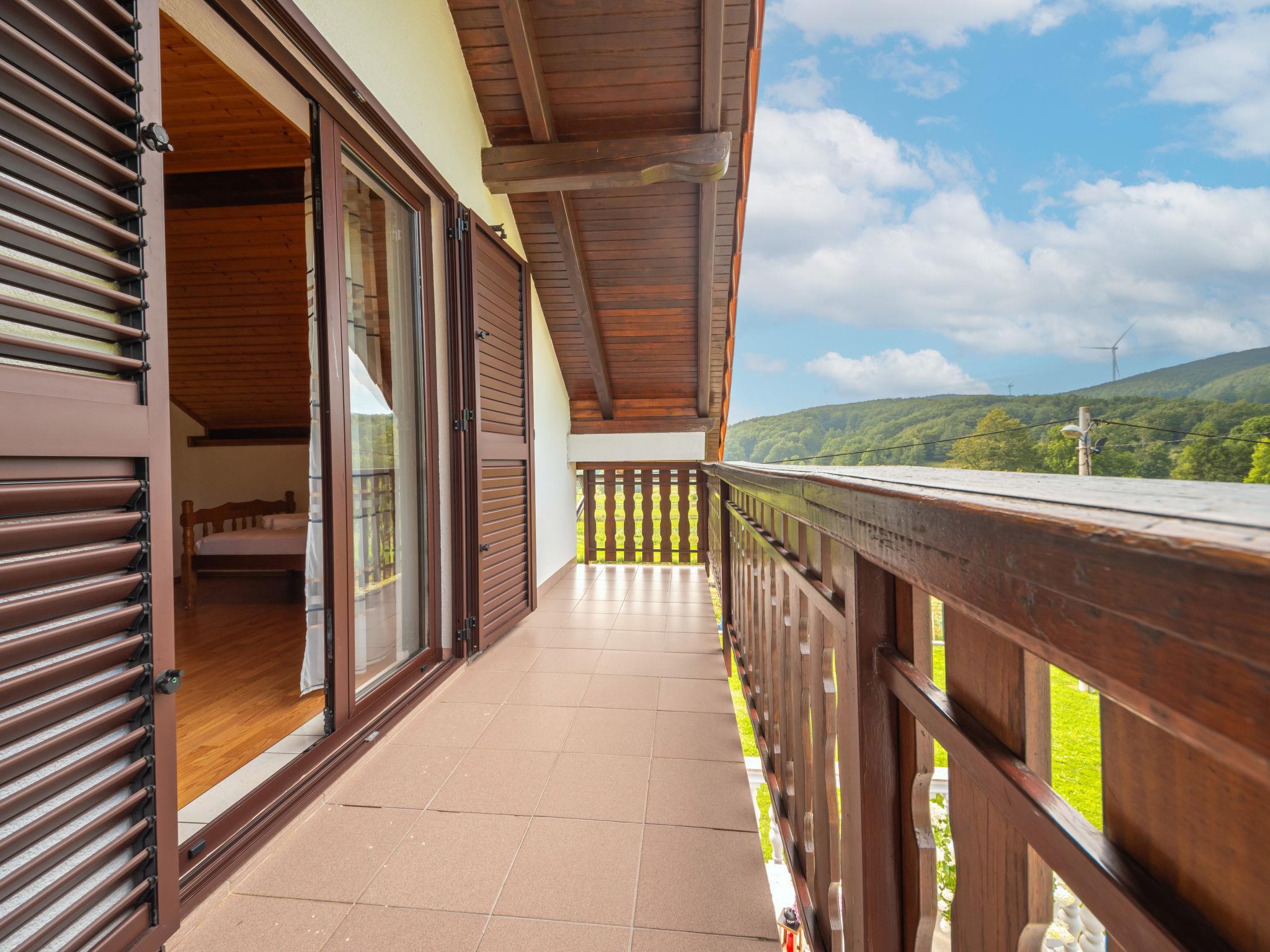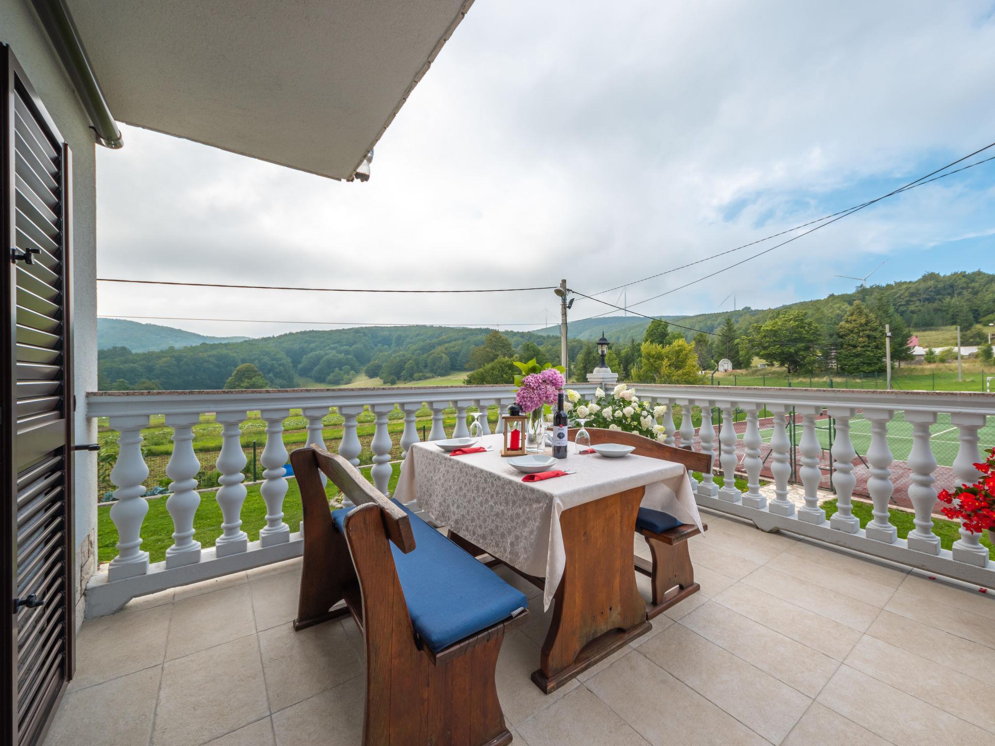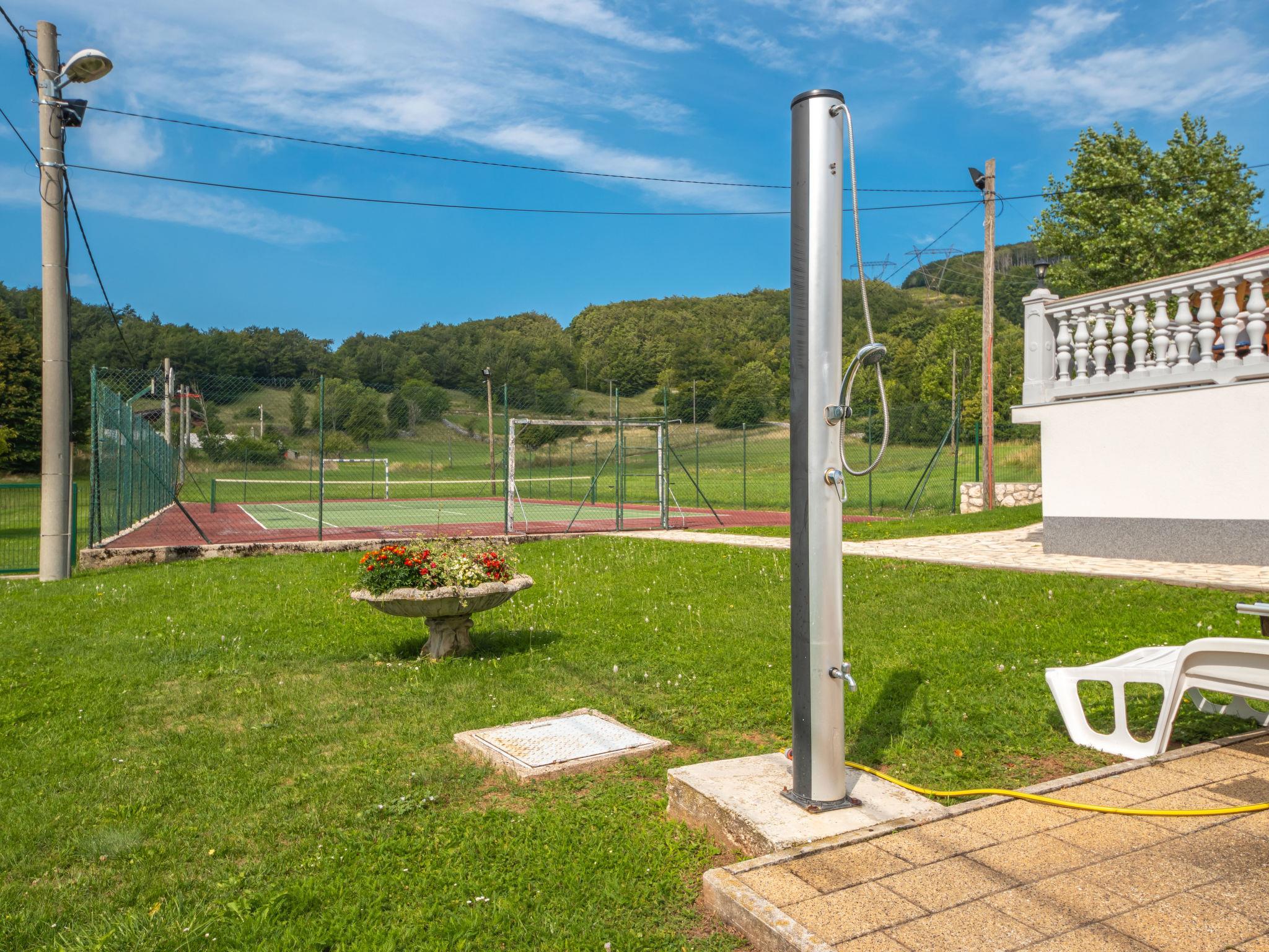 Single-family house "Nada", 2 storeys. Above Senj, in the hamlet Krivi Put 15 km from the centre of Senj, in a quiet, sunny position, 15 km from the sea, in the countryside. For shared use: property 5'000 m2 with lawn 2'000 m2, trees, swimming pool angular (6 x 4 m, 27 m2, depth 120 cm, seasonal availability: 01.Jun. - 30.Sep.) with shutter cover. Outdoor shower, tennis, floodlit, garden furniture, barbecue. In the house: internet access, washing machine. Parking at the house on the premises. Shop 15 km, restaurant 8 km, bus stop 13.7 km, shingle beach 15 km, concrete beach 15 km. Please note: Property ref. HR3420.700.1 is situated on the same property. Swimming pool with hydromassage. Available at the object HR3420.700.1: room with billiard, table football, darts and pinball for shared use.