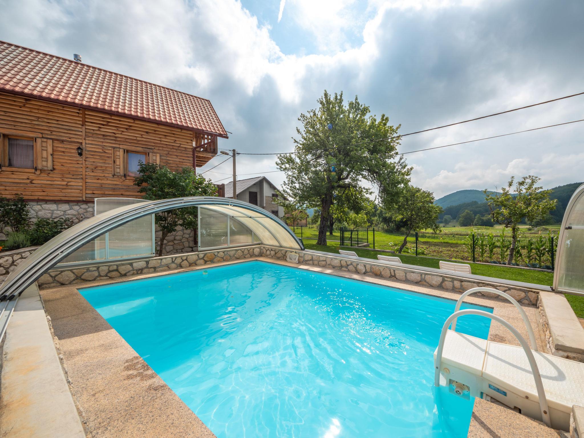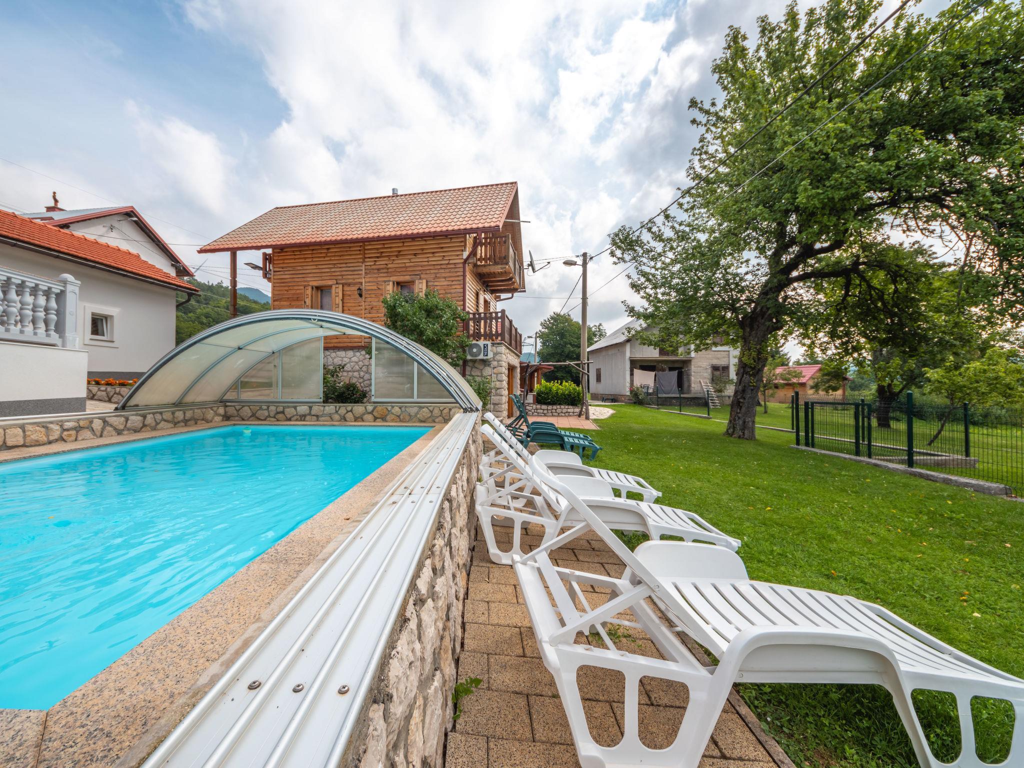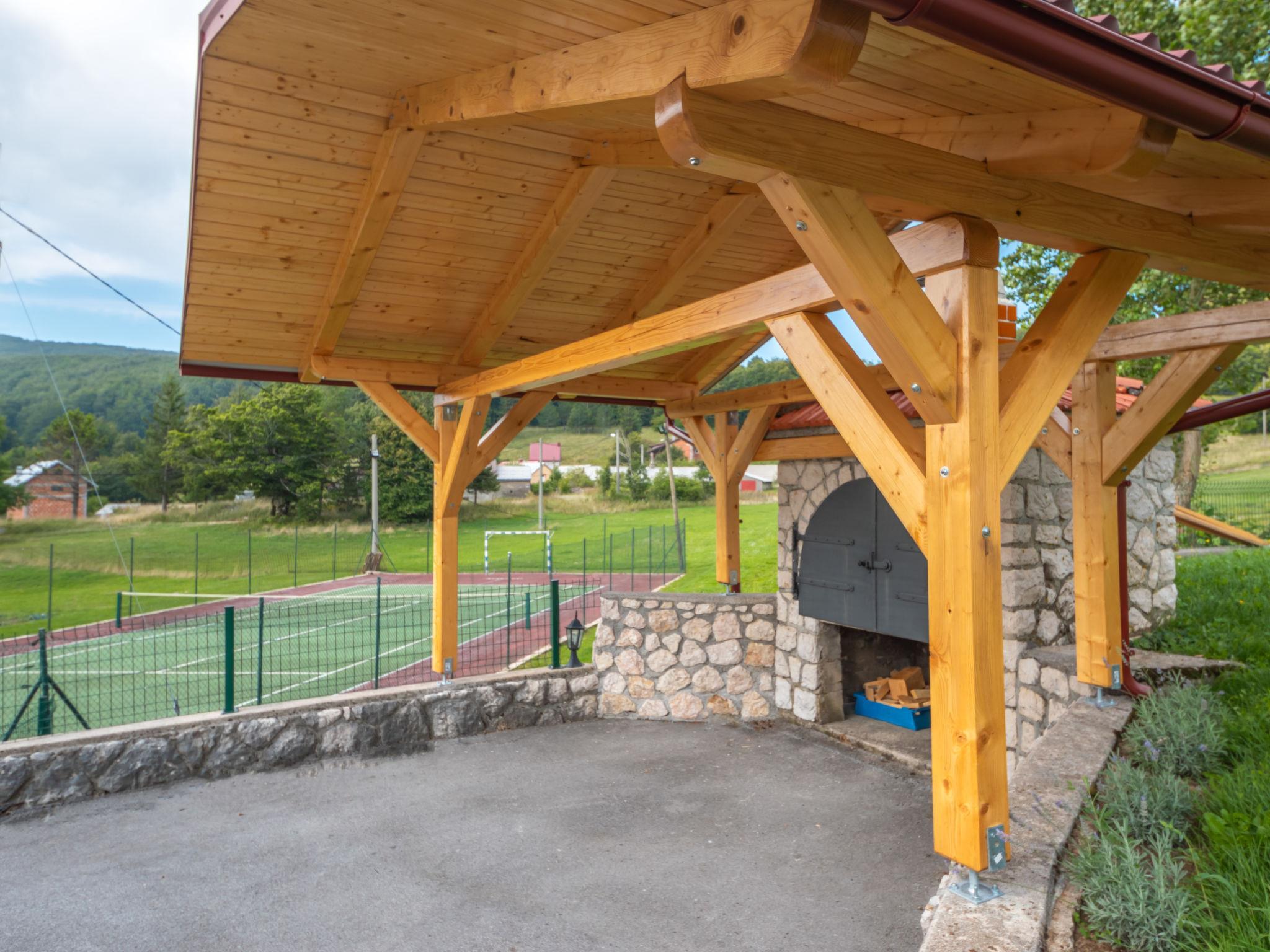 Single-family house "Nada", 2 storeys. Above Senj, in the hamlet Krivi Put 15 km from the centre of Senj, in a quiet, sunny position, 15 km from the sea, in the countryside. For shared use: property 5'000 m2 with lawn 2'000 m2, trees, swimming pool angular (6 x 4 m, 27 m2, depth 120 cm, seasonal availability: 01.Jun. - 30.Sep.) with shutter cover. Outdoor shower, tennis, floodlit, garden furniture, barbecue. In the house: internet access, washing machine. Parking at the house on the premises. Shop 15 km, restaurant 8 km, bus stop 13.7 km, shingle beach 15 km, concrete beach 15 km. Please note: Property ref. HR3420.700.1 is situated on the same property. Swimming pool with hydromassage. Available at the object HR3420.700.1: room with billiard, table football, darts and pinball for shared use.