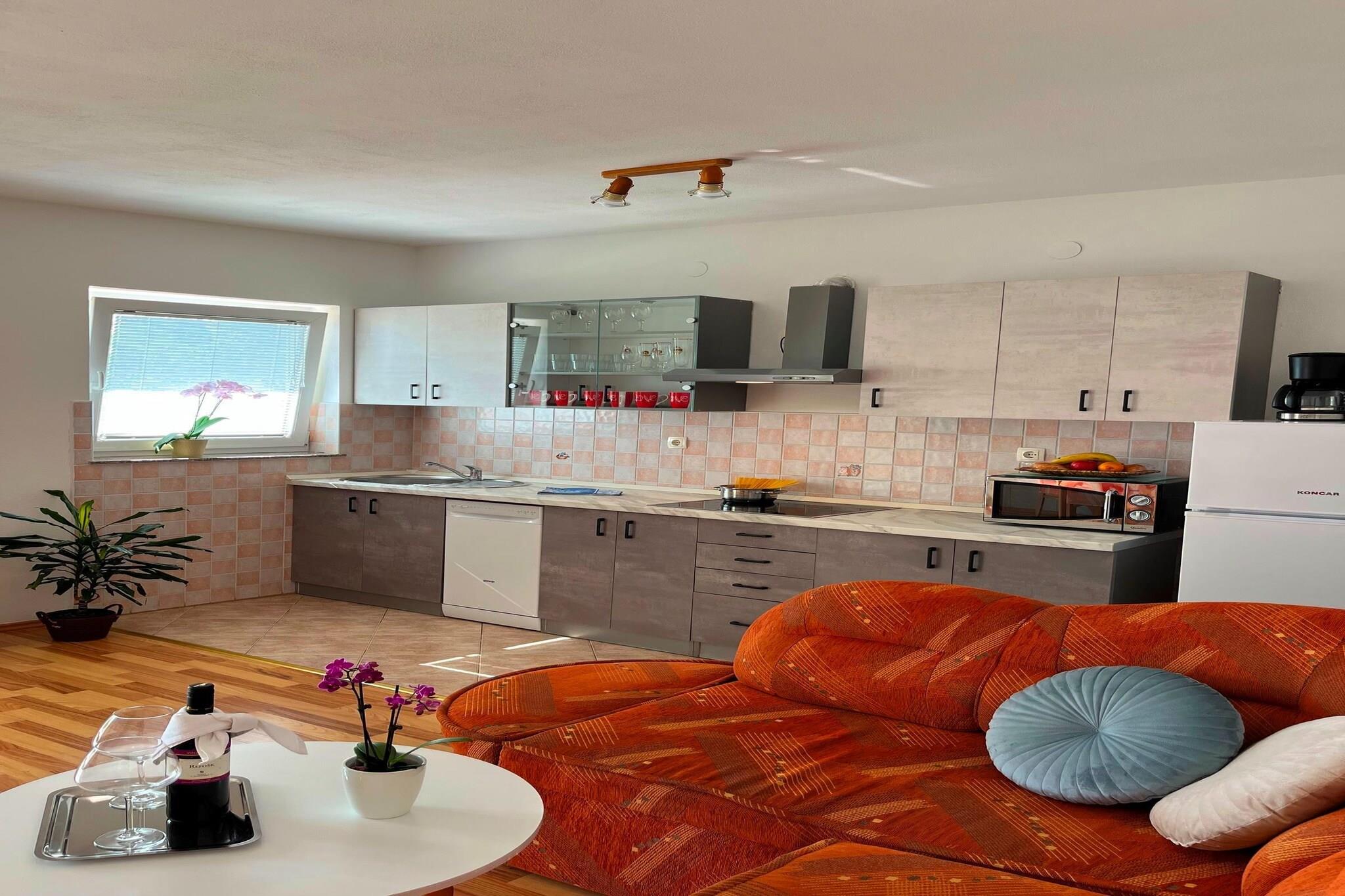 Denne romslige leiligheten ligger i Senj. Eiendommen har 1 stue med soverom og er perfekt for 2 personer. Leiligheten har et felles svømmebasseng hvor du kan slappe av etter en lang og slitsom dag. Havet og stranden ligger bare 0,8 km unna, hvor du kan sole deg og nyte roen. Du finner supermarkeder bare 400 m unna, i tilfelle du ønsker å kjøpe dagligvarer og andre nødvendigheter, og det er også restauranter 600 m unna hvor du kan nyte lokal mat. Det er en romslig takterrasse hvor du kan nyte morgenkaffen din, og hagemøbler hvor du kan nyte en sunn frokost og slappe av etter en aktiv dag utendørs.