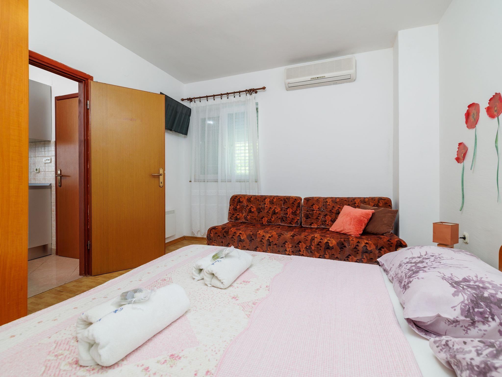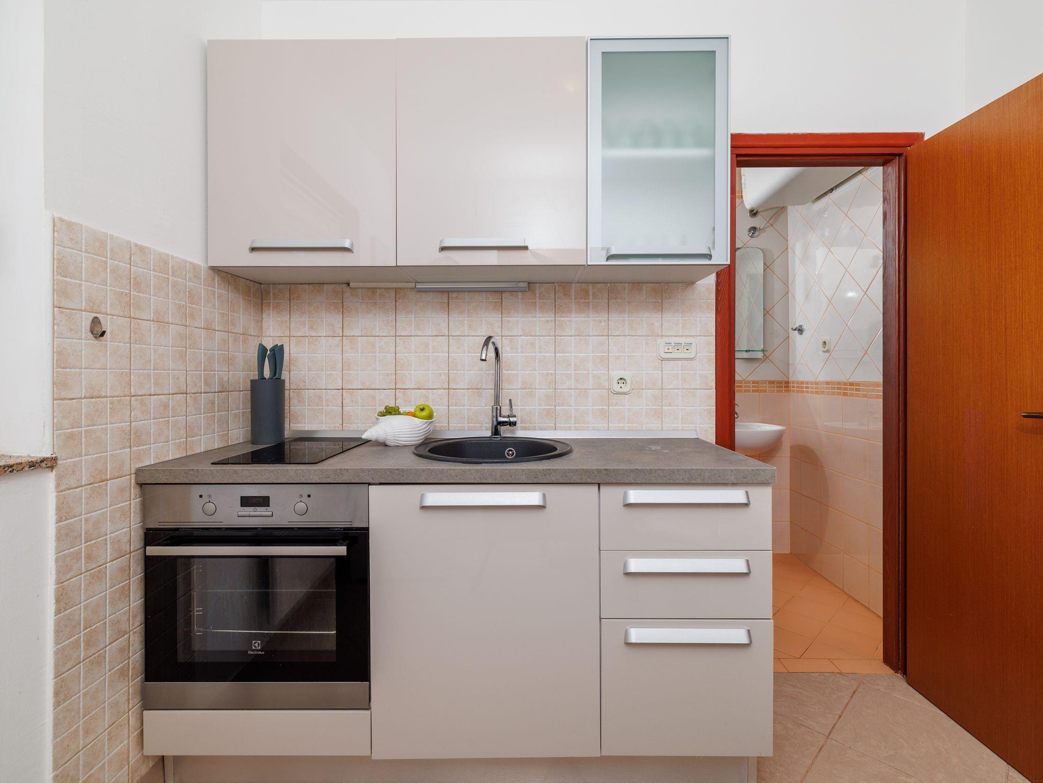Ferienwohnung bietet Platz für 3 Gäste. Die Betten sind in Schlafzimmern, die es 1 gibt, innerhalb einer Gesamtfläche von 23m2, angeordnet. Die Gäste haben eine eigene Terrasse zur Verfügung, auf der sie in warmen Sommernächten genießen können. Das Apartment bietet Meerblick. Es ist erlaubt, Speisen auf dem Gemeinschafts-Grill vorzubereiten. Unterkunftseinheit hat Räume, die von dem Rest der Einheit abgetrennt werden. IM PREIS INBEGRIFFEN: Kurtaxe, Endreinigung, Parkplatz, Internet, Bügeleisen. UNVERBINDLICHE ZUSÄTZLICHE KOSTEN: Klimatisierung (5,00 € pro Nacht), Wäschewaschen (5,00 € Waschen), Zusatzbett (7,00 € pro Nacht). Die Verfügbarkeit zusätzlicher Dienstleistungen in Ihrem reservierten Termin und die Preise derselben (falls nicht aufgeführt) müssen im Voraus überprüft werden. Zusätzliche Dienstleistungen die in der Zahlungsaufforderung nicht aufgeführt sind werden direkt beim Vermieter bezahlt, angenommen der Gast nutzt auch diese. Ermäßigung auf den Grundpreis: Gratistag 14=13 (bei einem Aufenthalt von 14 Tagen oder mehr erhalten Sie einen Gratistag für den Aufenthalt bis 31.12.26).