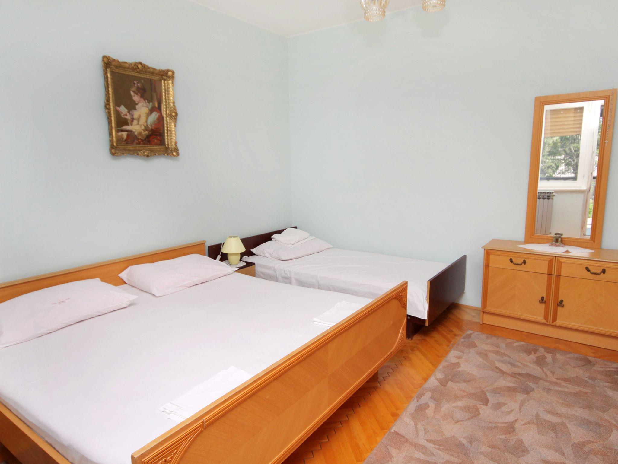 Ferienwohnung bietet Platz für 6 Gäste. Die Betten sind in Schlafzimmern, die es 3 gibt, innerhalb einer Gesamtfläche von 77m2, angeordnet. Die Gäste haben einen eigenen Balkon zur Verfügung, auf der sie in warmen Sommernächten genießen können. Das Apartment bietet Meerblick. Es ist erlaubt, Speisen auf dem Gemeinschafts-Grill vorzubereiten. IM PREIS INBEGRIFFEN: Kurtaxe, Endreinigung, Klimatisierung, Parkplatz, Internet, Bügeleisen, Bügelbrett, Föhn. VERBINDLICHE ZUSÄTZLICHE KOSTEN: Aufzahlung für Kurzaufenthalte (prozentualer Zuschlag pro Nächtigungsanzahl: 30% - 1, 20% - 2, 10% - 3). UNVERBINDLICHE ZUSÄTZLICHE KOSTEN: Zentralheizung (6,00 € pro Nacht), Zusatzbett (10,00 € pro Nacht). Die Verfügbarkeit zusätzlicher Dienstleistungen in Ihrem reservierten Termin und die Preise derselben (falls nicht aufgeführt) müssen im Voraus überprüft werden. Zusätzliche Dienstleistungen die in der Zahlungsaufforderung nicht aufgeführt sind werden direkt beim Vermieter bezahlt, angenommen der Gast nutzt auch diese.