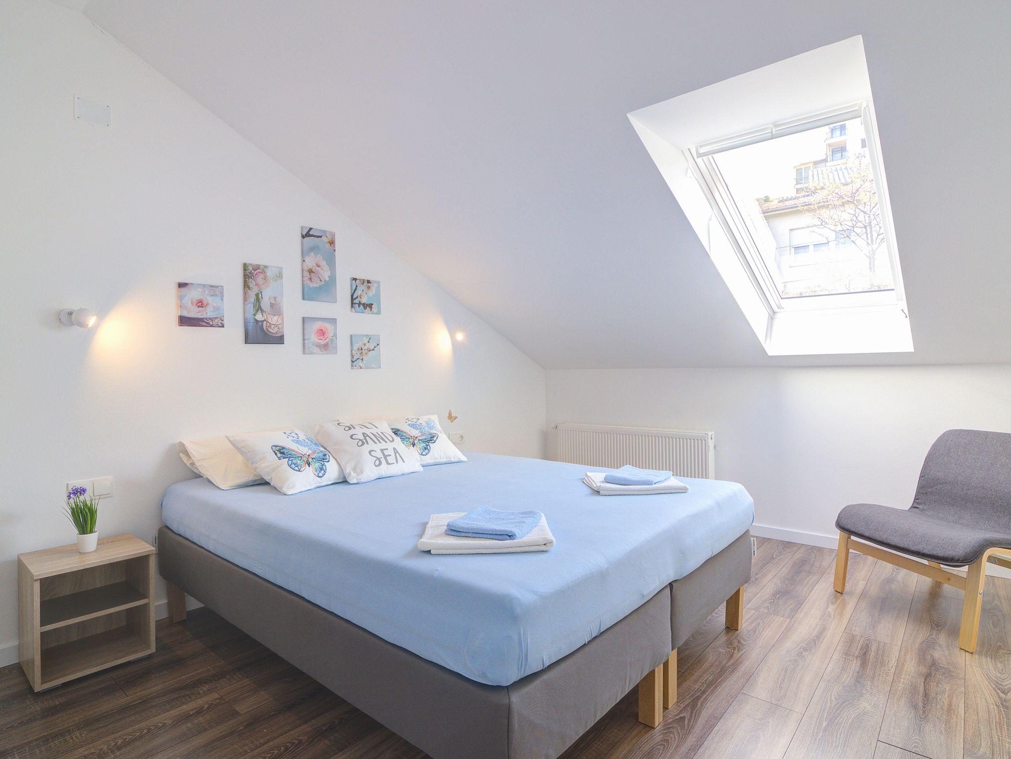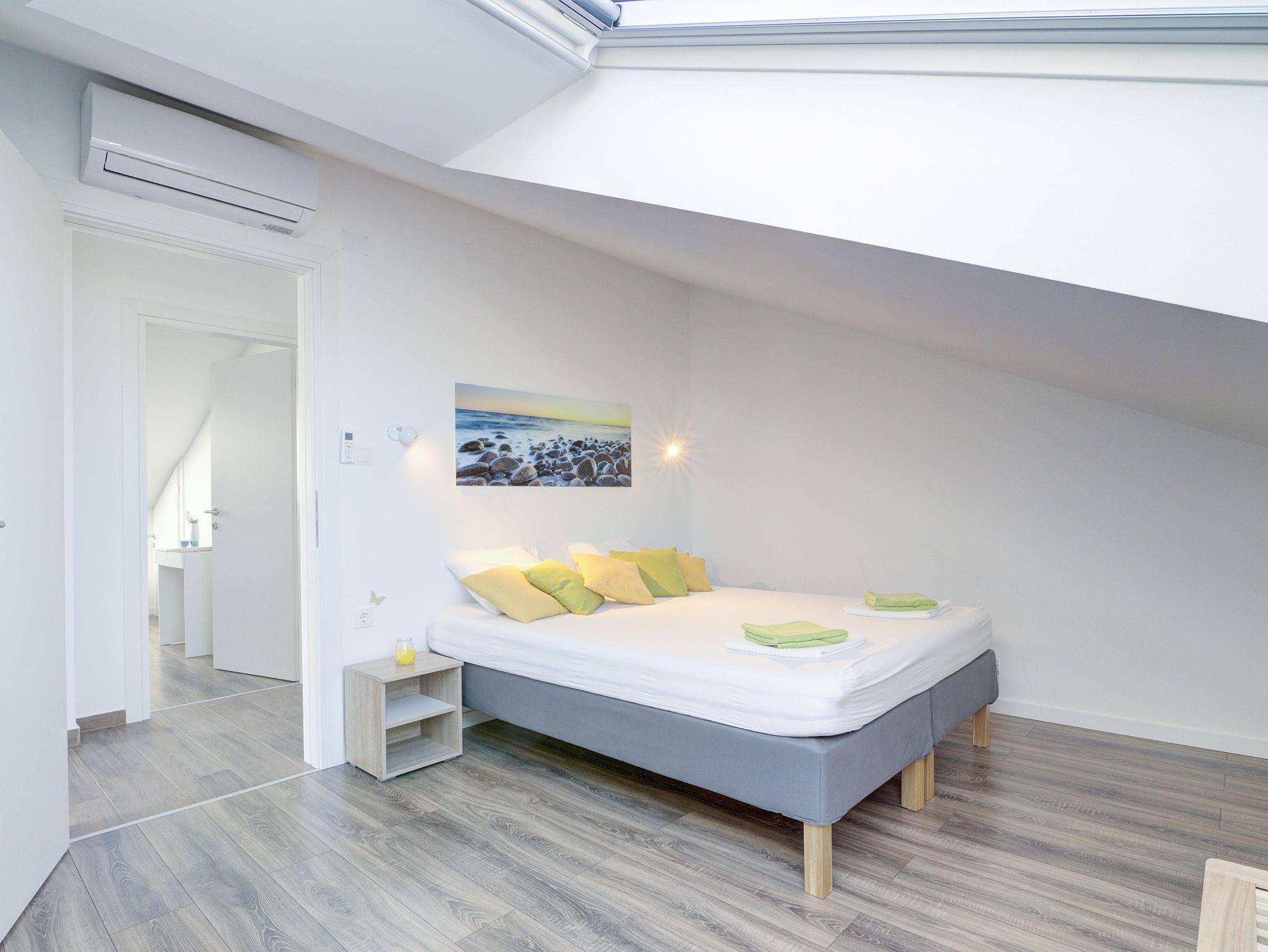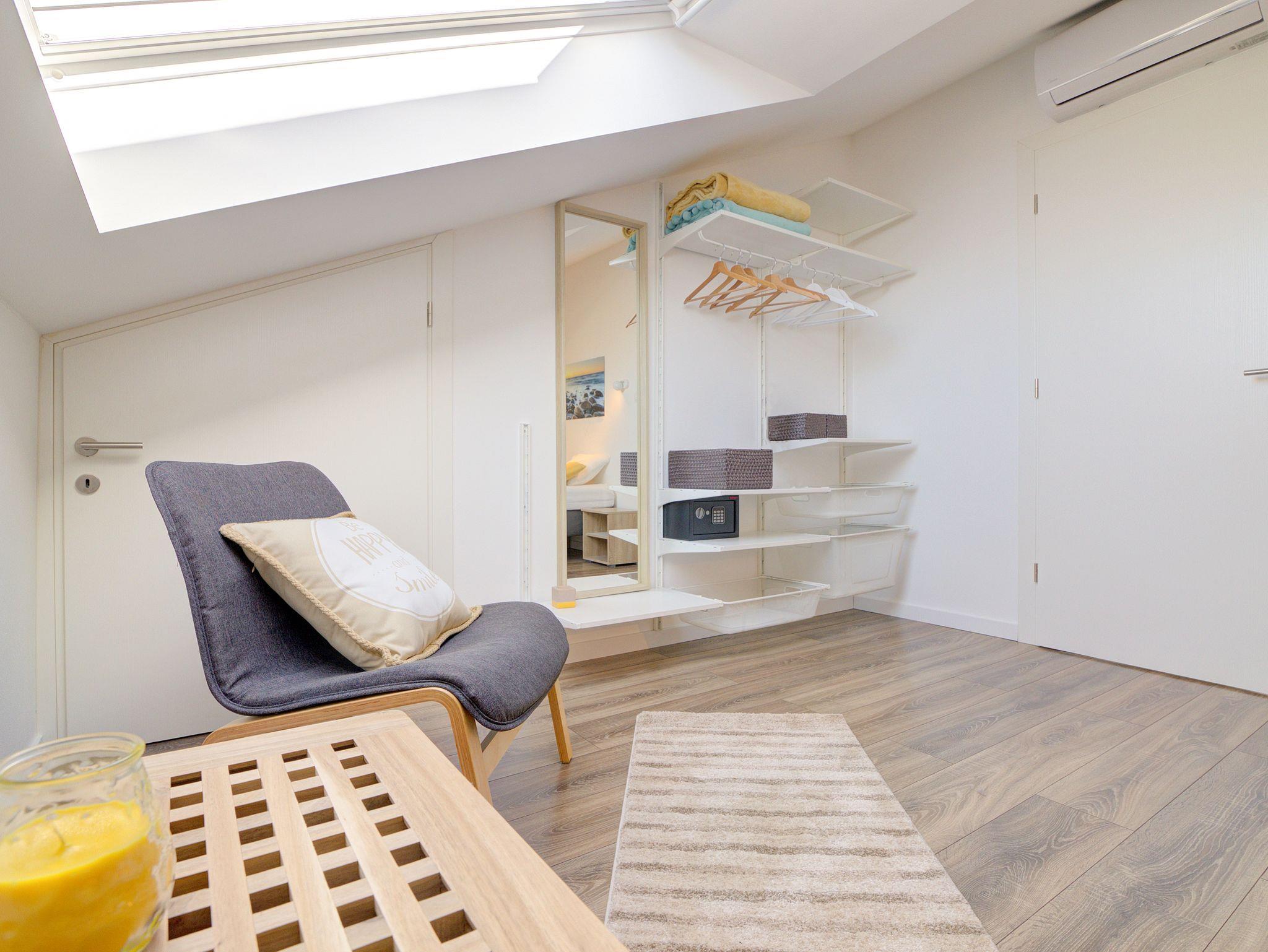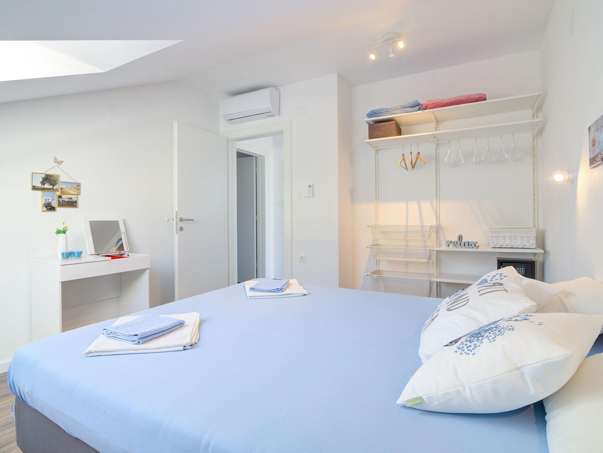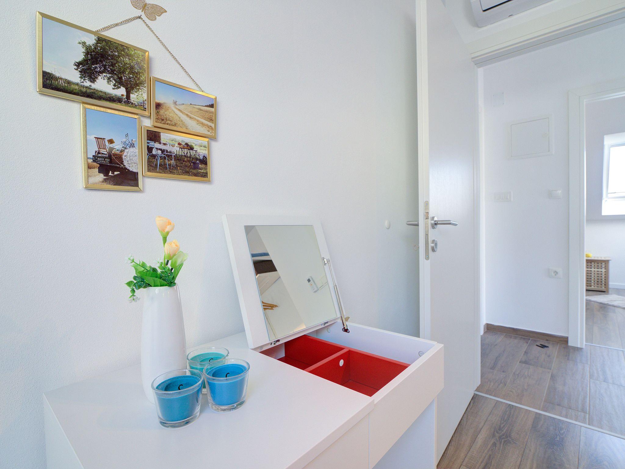 Ferienwohnung bietet Platz für 6 Gäste. Die Betten sind in Schlafzimmern, die es 2 gibt, und in Wohnzimmer, innerhalb einer Gesamtfläche von 70m2, angeordnet. Die Gäste haben einen eigenen Balkon zur Verfügung, auf der sie in warmen Sommernächten genießen können. Das Apartment bietet Meerblick. In der Unterkunftseinheit besteht die Möglichkeit des Mitbringens von Haustieren gegen Aufpreis. IM PREIS INBEGRIFFEN: Kurtaxe, Endreinigung, Klimatisierung, Zentralheizung, Internet, Kinderbett, Bügeleisen, Bügelbrett, Föhn. VERBINDLICHE ZUSÄTZLICHE KOSTEN: Aufzahlung für Kurzaufenthalte (prozentualer Zuschlag pro Nächtigungsanzahl: 30% - 1, 20% - 2, 10% - 3). UNVERBINDLICHE ZUSÄTZLICHE KOSTEN: Haustiere (5,00 € pro Nacht). Die Verfügbarkeit zusätzlicher Dienstleistungen in Ihrem reservierten Termin und die Preise derselben (falls nicht aufgeführt) müssen im Voraus überprüft werden. Zusätzliche Dienstleistungen die in der Zahlungsaufforderung nicht aufgeführt sind werden direkt beim Vermieter bezahlt, angenommen der Gast nutzt auch diese.
