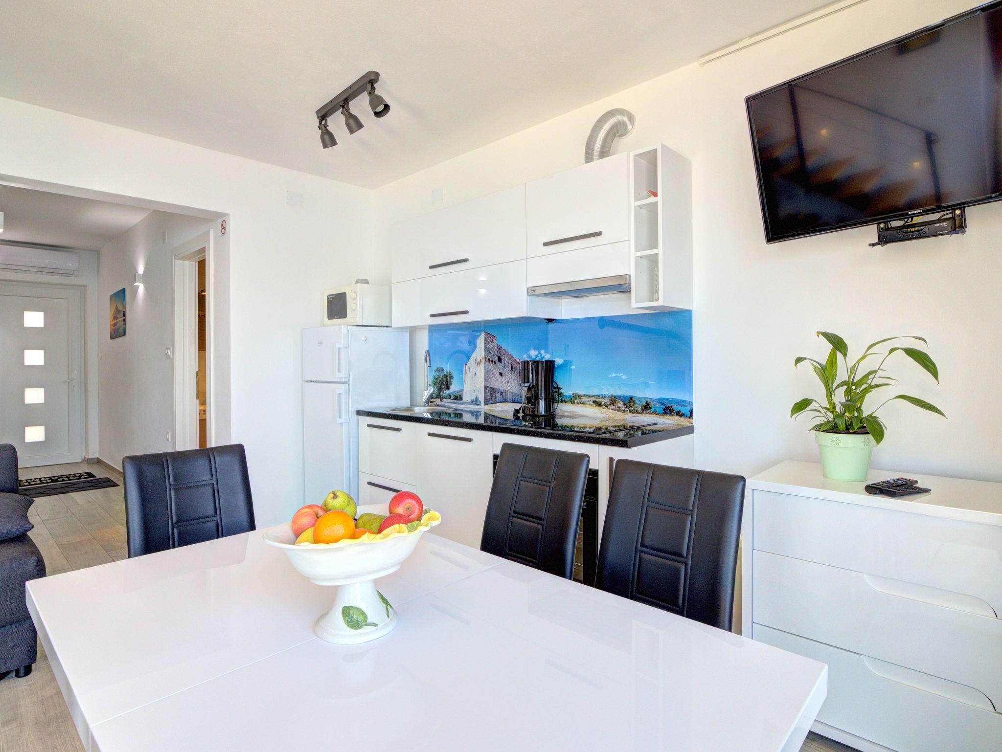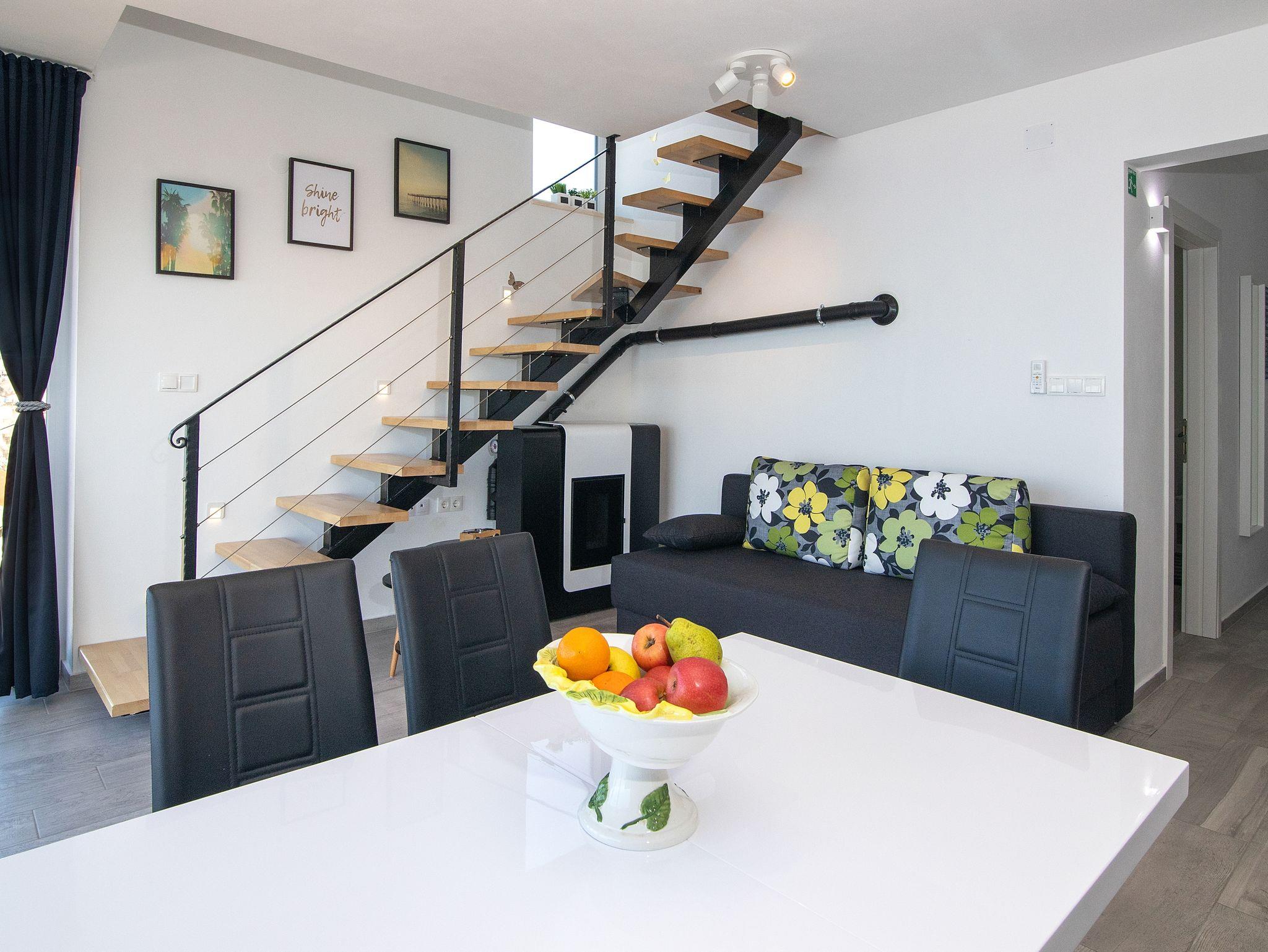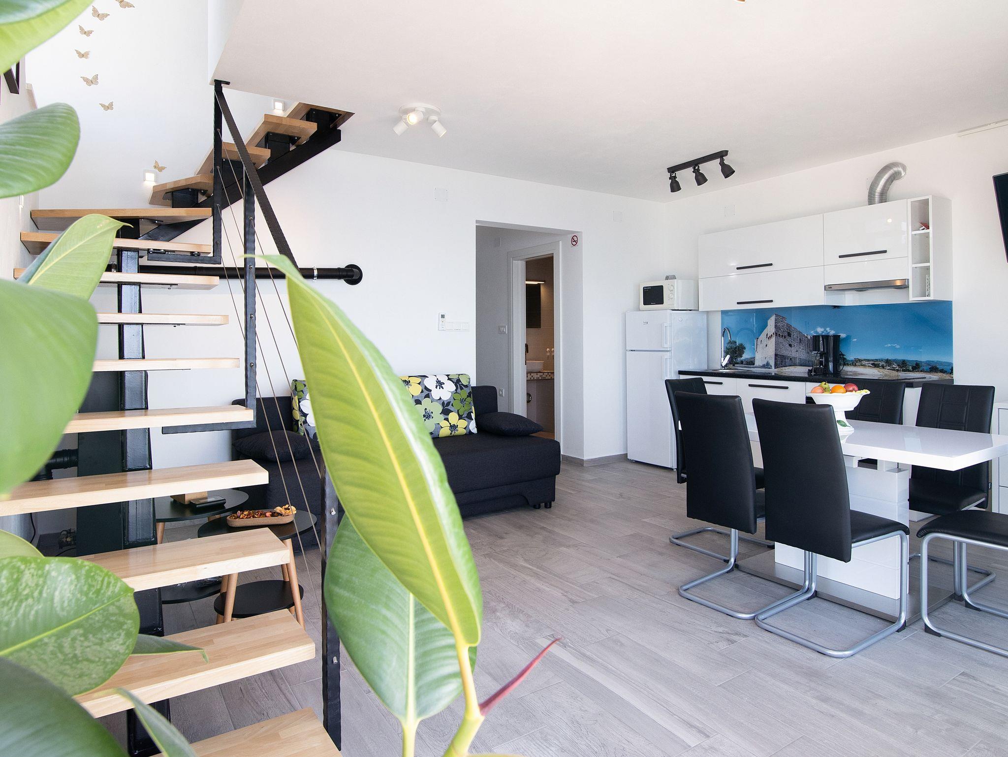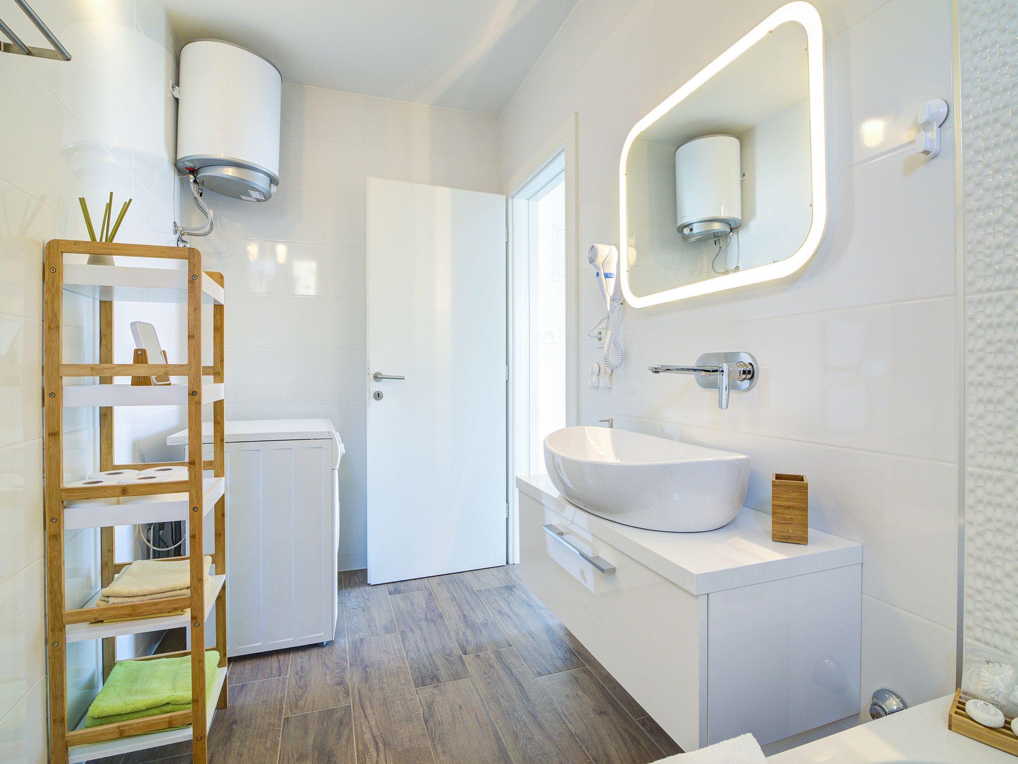 Ferienwohnung bietet Platz für 6 Gäste. Die Betten sind in Schlafzimmern, die es 2 gibt, und in Wohnzimmer, innerhalb einer Gesamtfläche von 70m2, angeordnet. Die Gäste haben einen eigenen Balkon zur Verfügung, auf der sie in warmen Sommernächten genießen können. Das Apartment bietet Meerblick. In der Unterkunftseinheit besteht die Möglichkeit des Mitbringens von Haustieren gegen Aufpreis. IM PREIS INBEGRIFFEN: Kurtaxe, Endreinigung, Klimatisierung, Zentralheizung, Internet, Kinderbett, Bügeleisen, Bügelbrett, Föhn. VERBINDLICHE ZUSÄTZLICHE KOSTEN: Aufzahlung für Kurzaufenthalte (prozentualer Zuschlag pro Nächtigungsanzahl: 30% - 1, 20% - 2, 10% - 3). UNVERBINDLICHE ZUSÄTZLICHE KOSTEN: Haustiere (5,00 € pro Nacht). Die Verfügbarkeit zusätzlicher Dienstleistungen in Ihrem reservierten Termin und die Preise derselben (falls nicht aufgeführt) müssen im Voraus überprüft werden. Zusätzliche Dienstleistungen die in der Zahlungsaufforderung nicht aufgeführt sind werden direkt beim Vermieter bezahlt, angenommen der Gast nutzt auch diese.