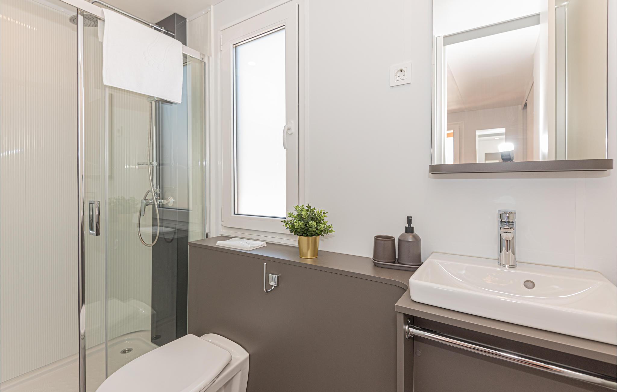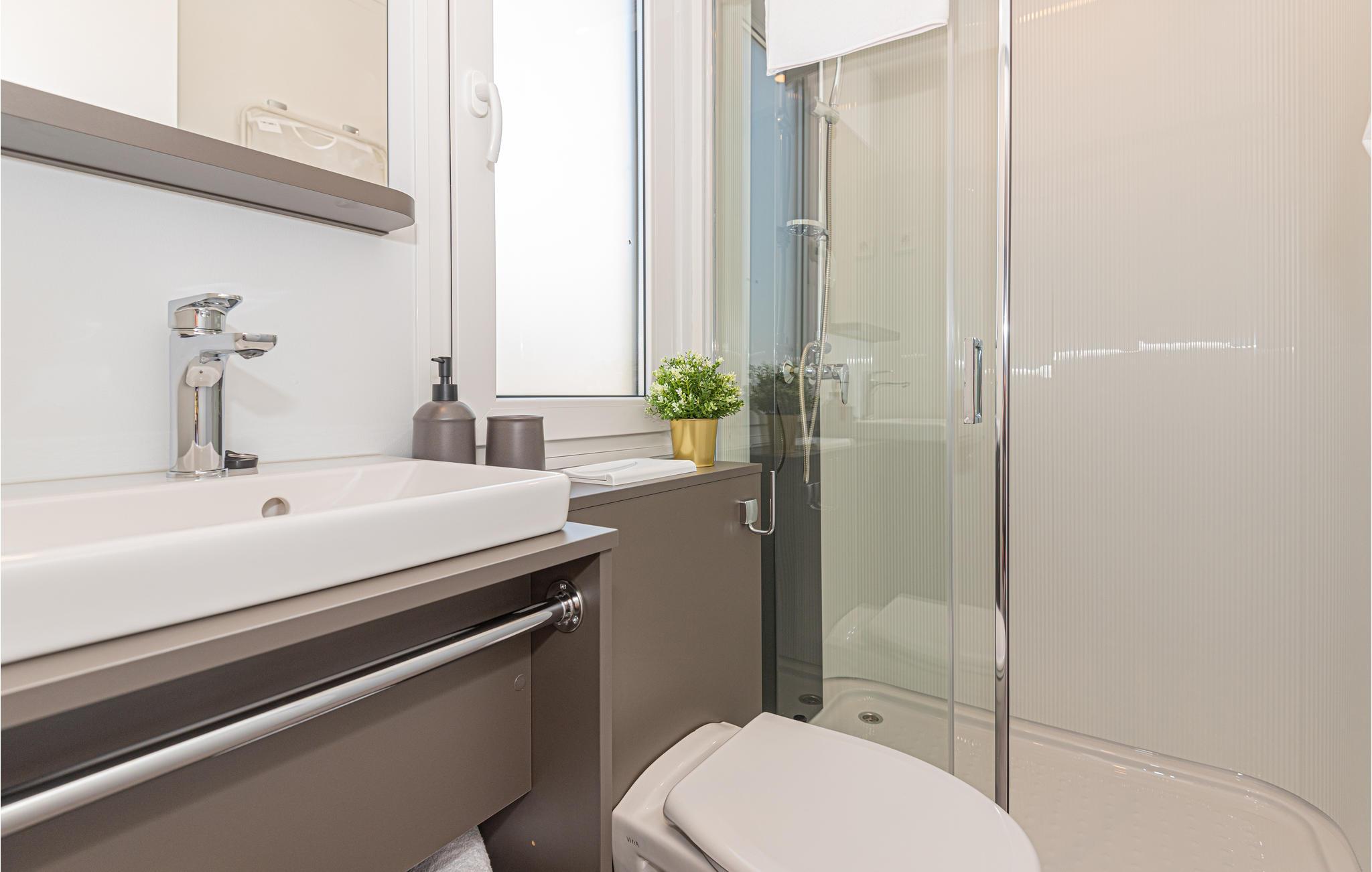 - WC med varmt og kaldt vann, Dusj