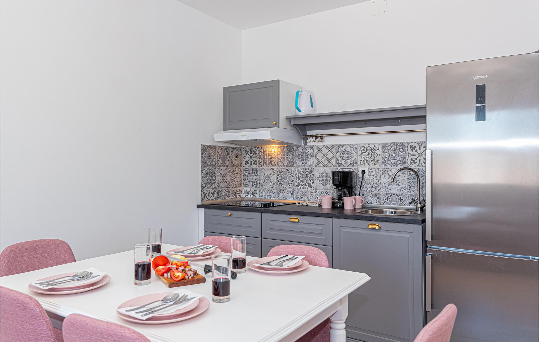 Denne vakre leiligheten tilbyr alt du og dine venner eller familie trenger for en avslappende eller eventyrlig ferie under den kroatiske solen. Den attraktive stuen og spisestuen overlater ingenting å være ønsket. Her kan du lage mat, spise, leke eller bare slappe av sammen.