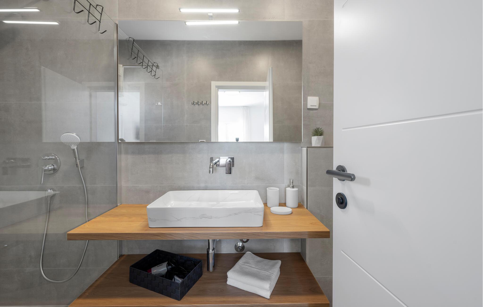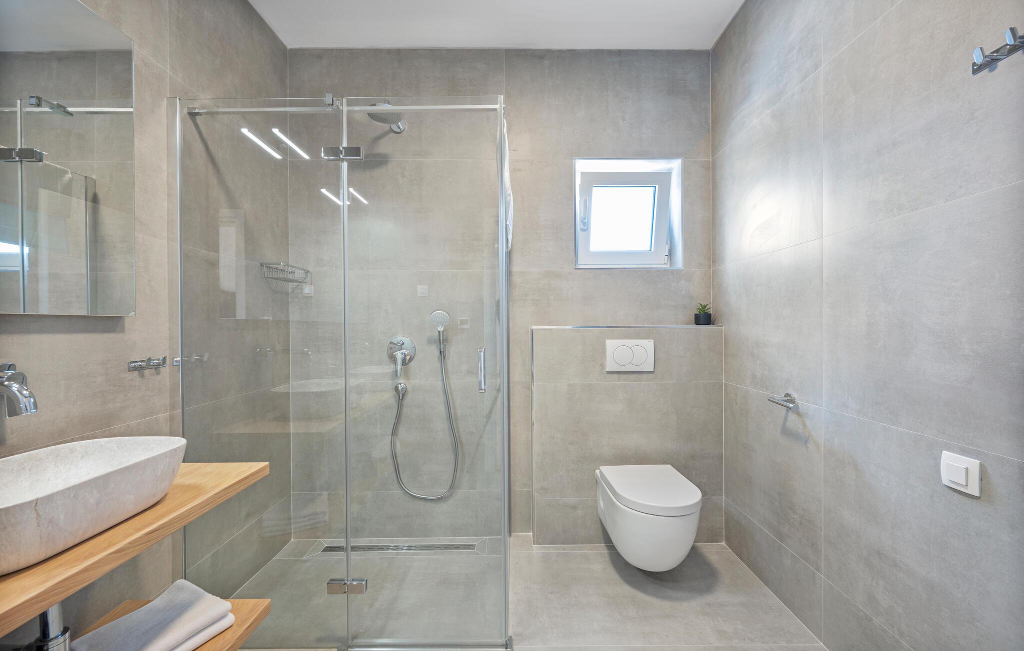 - WC med varmt og kaldt vann, Dusj
