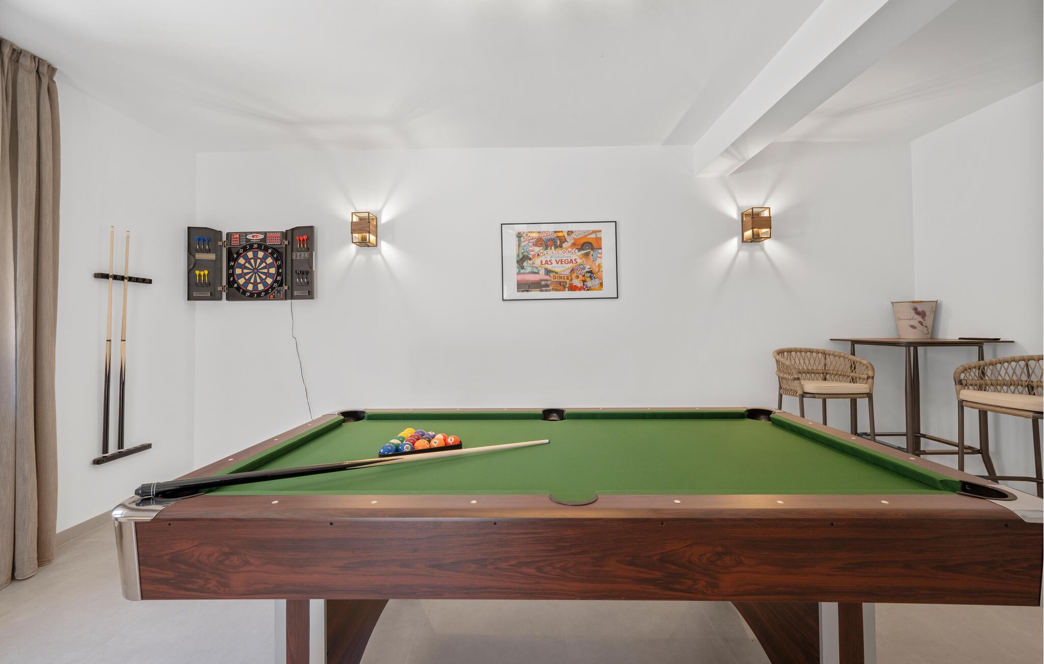 Se frem til en uforglemmelig ferie i dette romslige feriehuset. Det moderne huset utstråler sjarm og tilbyr en god atmosfære med en lys design. Nyt den moderne og komfortable bofølelsen på to nivåer, som inviterer deg til å lage mat, leke og slappe av sammen. Det er også mye moro å ha her. Tilbring morsomme kvelder med å spille dart, biljard eller bordfotball, eller nyt solen utendørs ved å svømme i svømmebassenget eller slappe av på solsengene. I mellomtiden kan barna boltre seg og leke i hagen. Avslutt kveldene med en grillfest på den overbygde terrassen og legg planer for de kommende dagene.