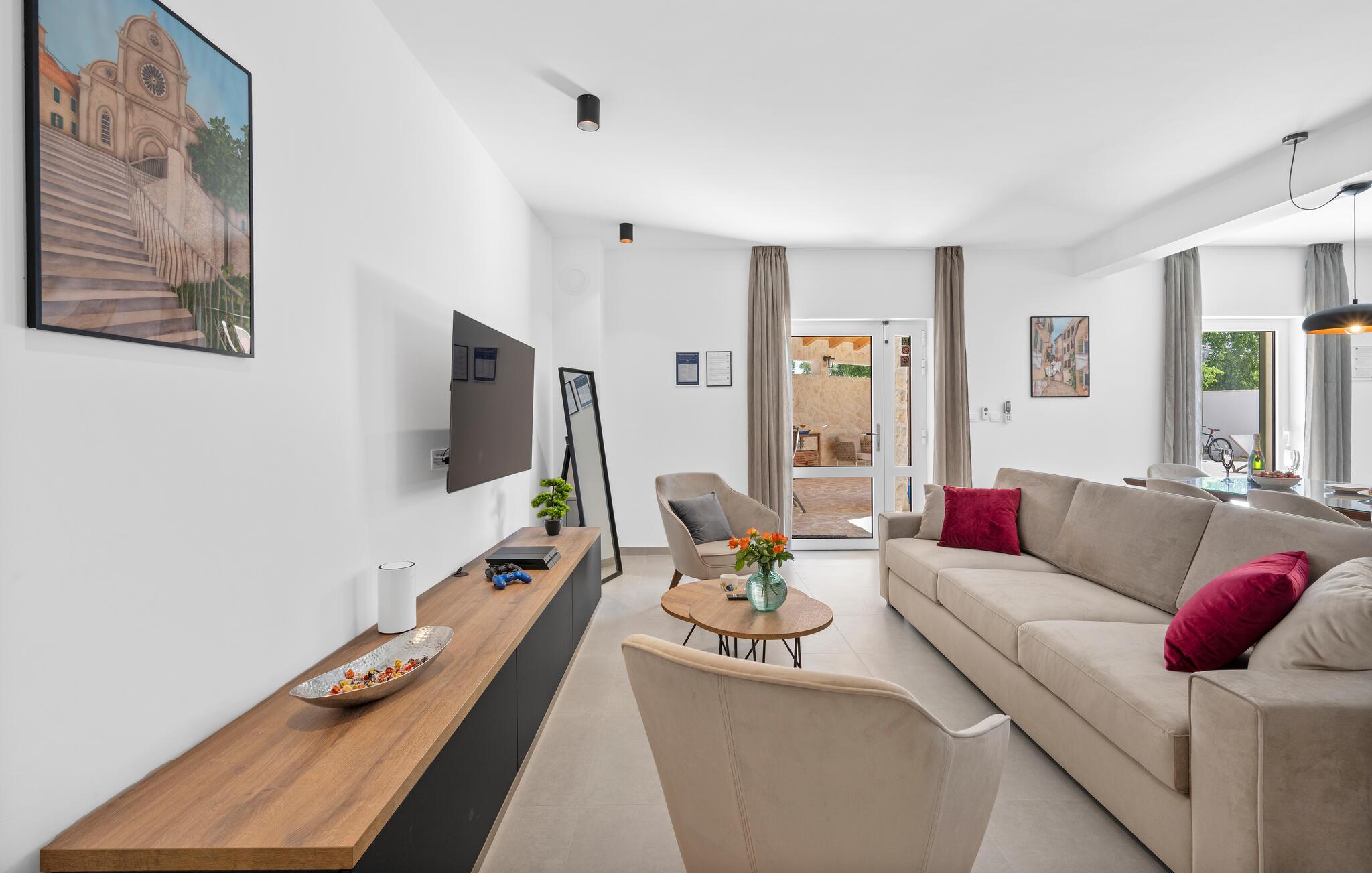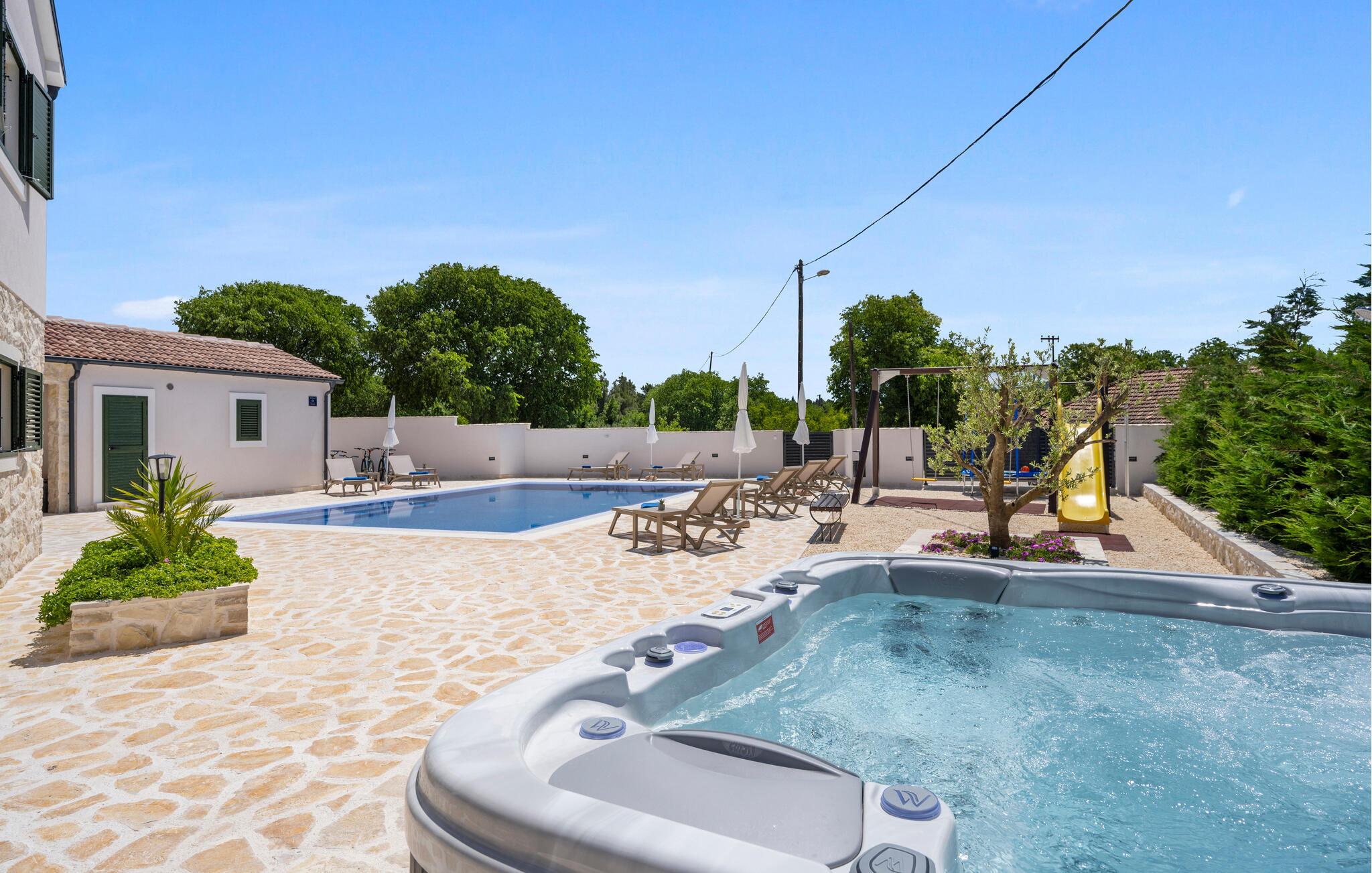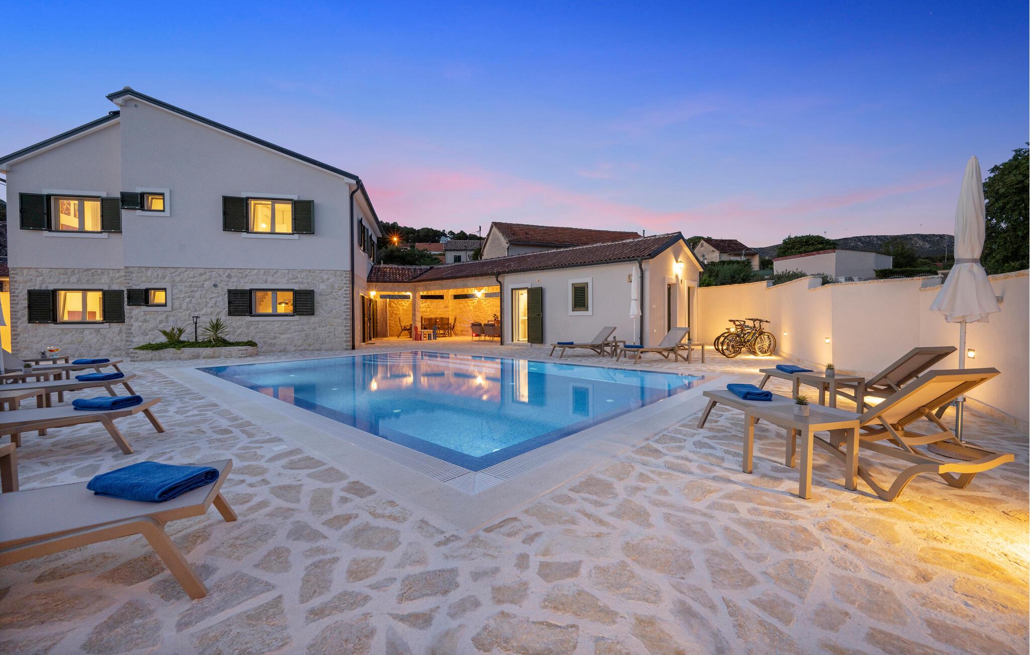Noen få kilometer fra Sibernik ønsker dette fantastiske feriehuset med svømmebasseng deg velkommen.