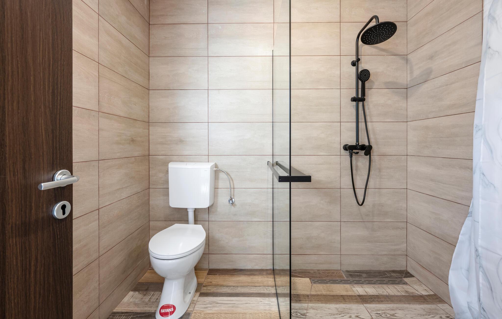 - WC med varmt og kaldt vann, Dusj