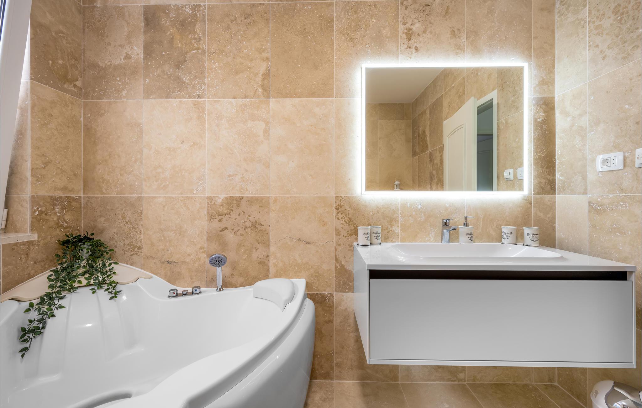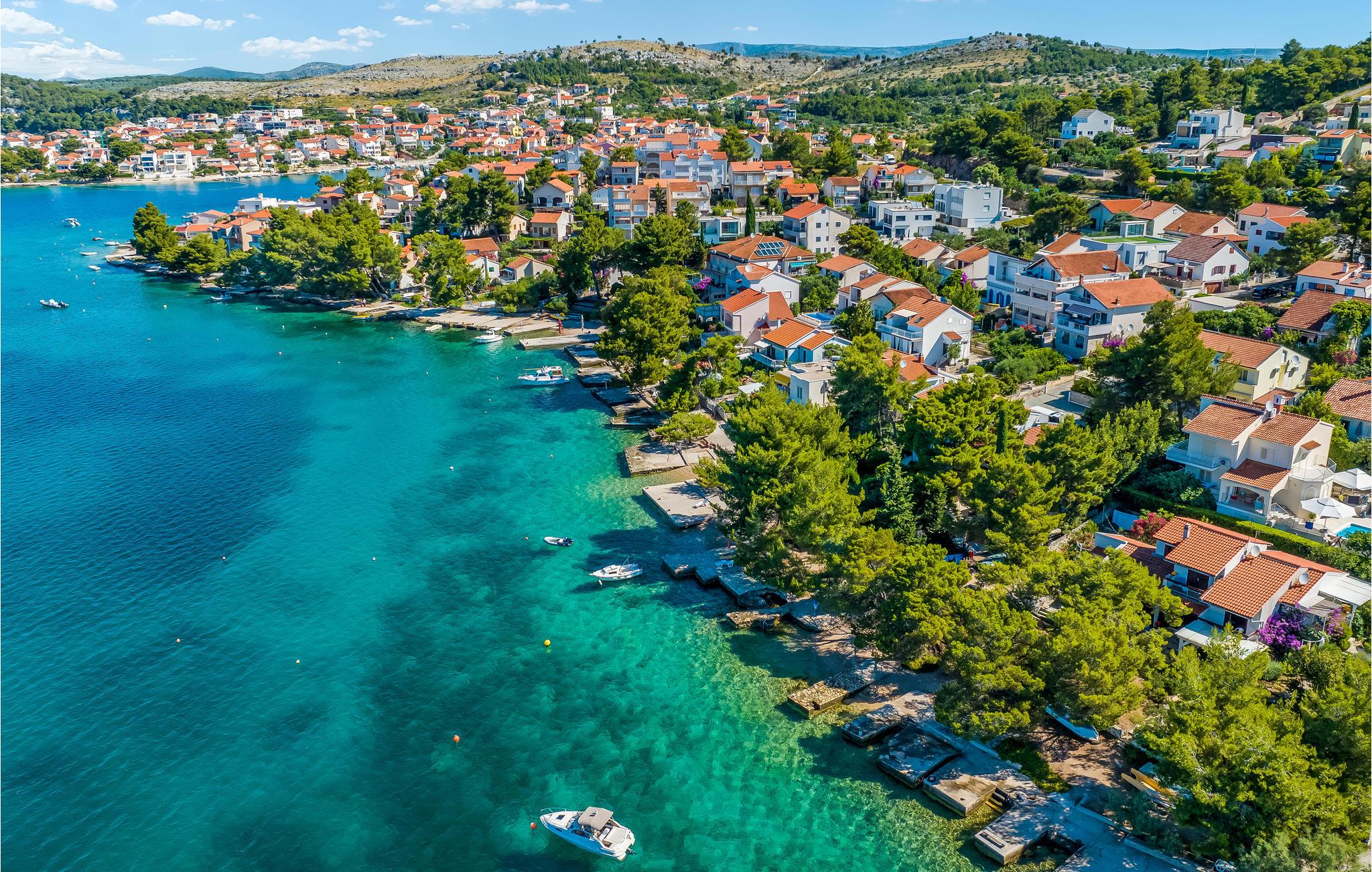 Kast badehåndkleet over skulderen og gå de få meterne til de små rullesteinsstrendene og dykk ned i det turkise havet. Det krystallklare vannet er perfekt for snorkling, ettersom du som regel kan se helt ned til havbunnen. I umiddelbar nærhet finnes det også butikker og restauranter hvor du kan smake på dalmatisk mat. Vi anbefaler et besøk til den nærliggende byen Ibenik, som ligger rett ved sjøen, omgitt av den vakreste naturen på den kroatiske Adriaterhavskysten, og som også er en historisk by med mange verdifulle kulturhistoriske monumenter. Litt lenger unna, men absolutt verdt et besøk, ligger nasjonalparkene Krka og Kornati, som hver på sin måte er unike og kan skilte med utallige naturskjønnheter!