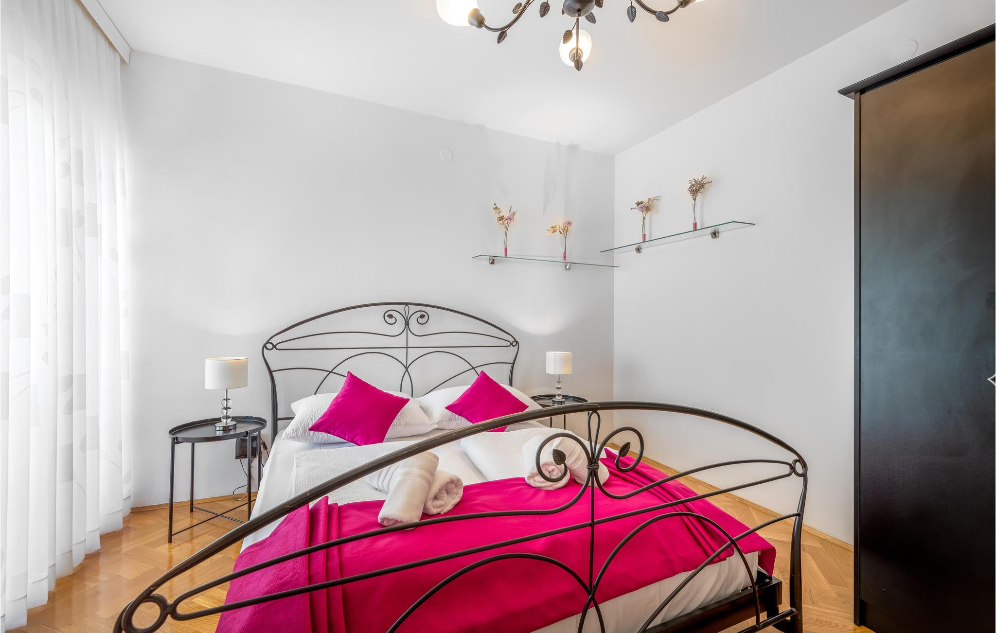 Velkommen til dette vakre og trivelige feriehuset i Zaboric, fra hvis terrasse og første etasje du kan se havet og kanskje til og med lukte den salte duften av vannet. I to etasjer finner du velutstyrte rom, hvert i en ny farge, noe som gir deg en god atmosfære. Føl deg som hjemme her, og tilbered måltidene dine på det moderne kjøkkenet eller på utegrillen, som du kan nyte på den overbygde terrassen.