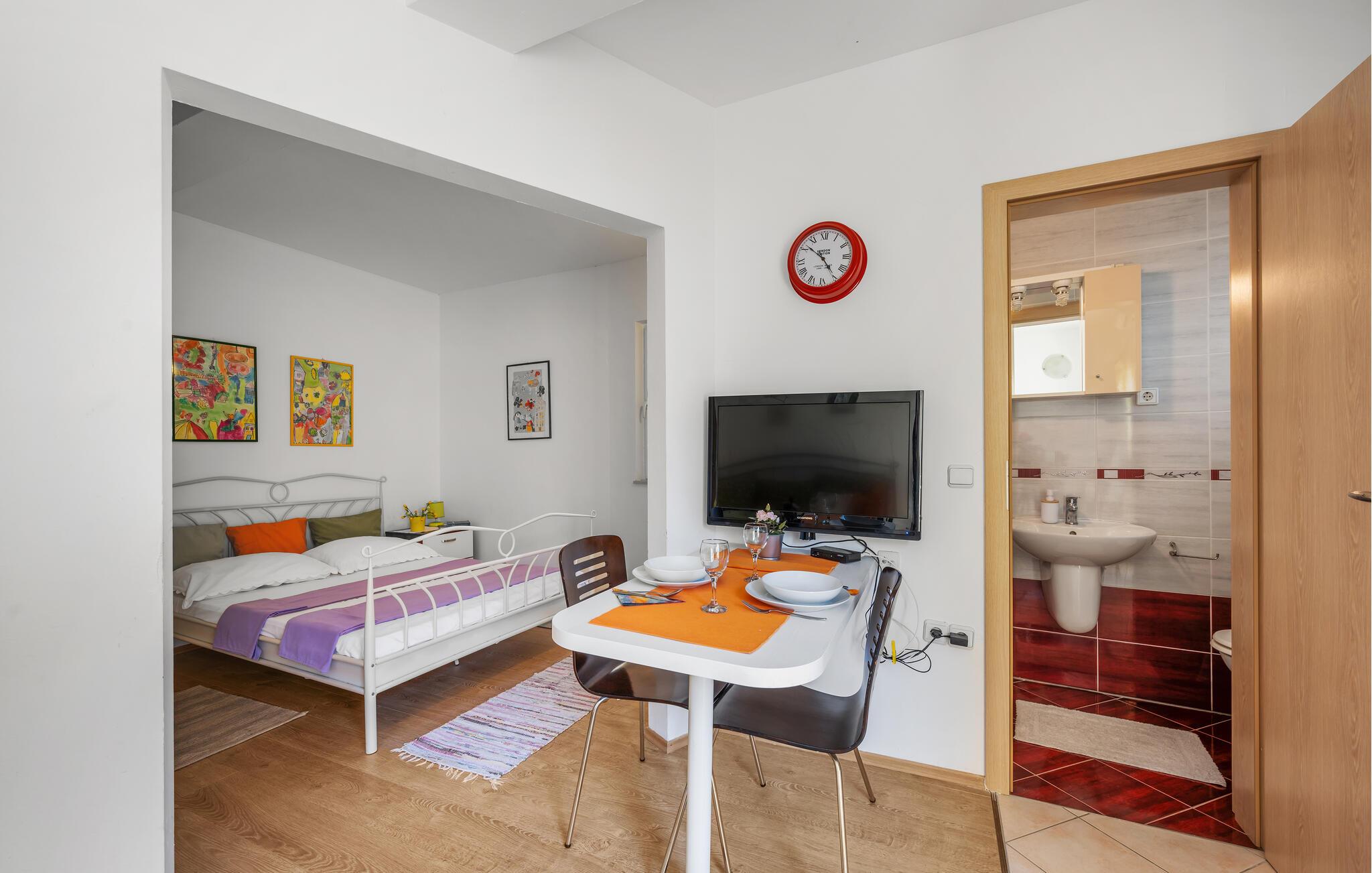 Enten du er et par eller en liten familie, tilbyr denne sjarmerende ferieleiligheten et kjærlig innredet tilfluktssted under en avslappende ferie ved Adriaterhavskysten. Tilbered favorittrettene dine på det åpne kjøkkenet og nyt dem ved det innbydende spisebordet. Slapp av i sofaen eller nyt tiden sammen med et brettspill.