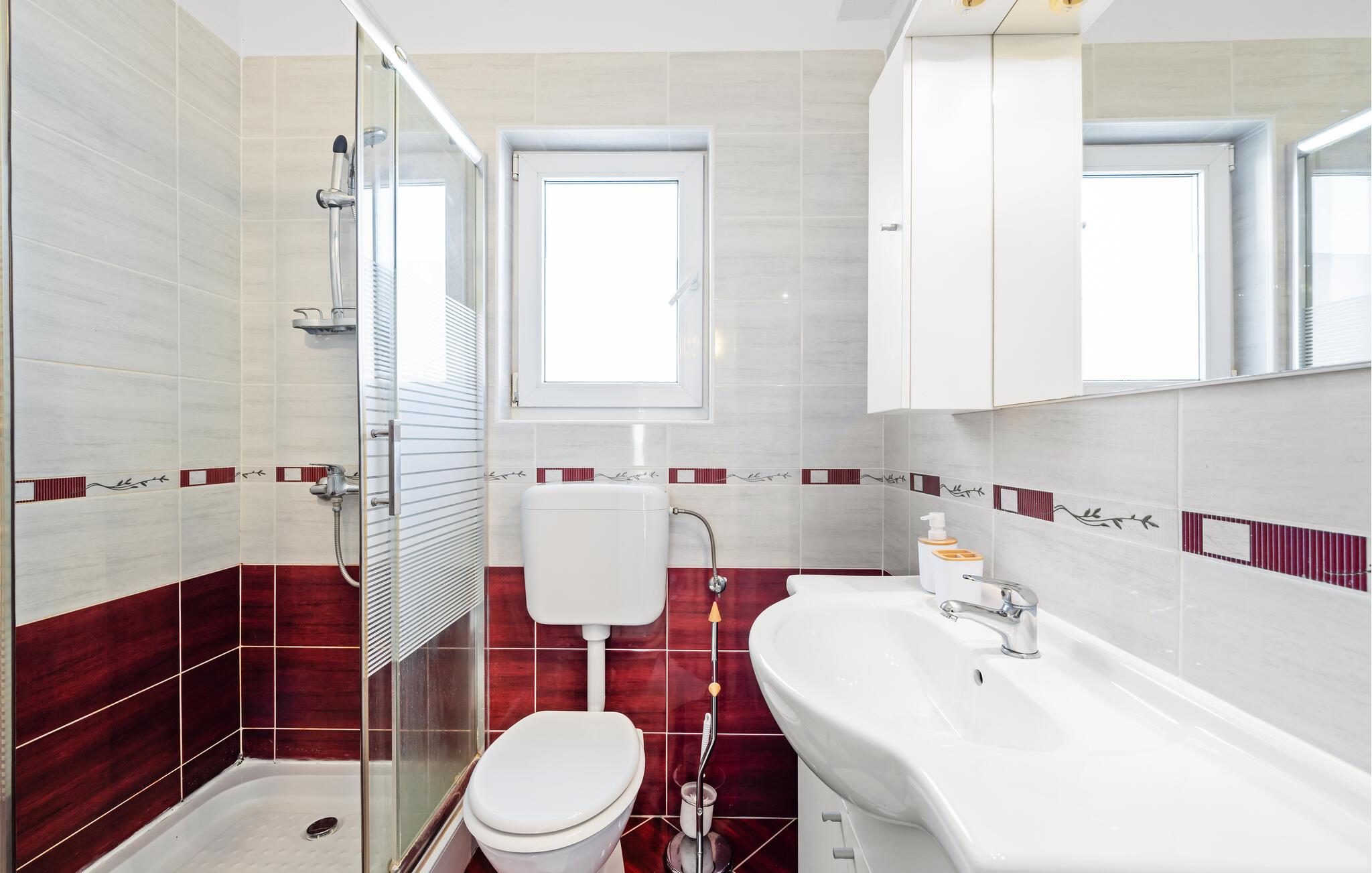 - WC med varmt og kaldt vann, Dusj